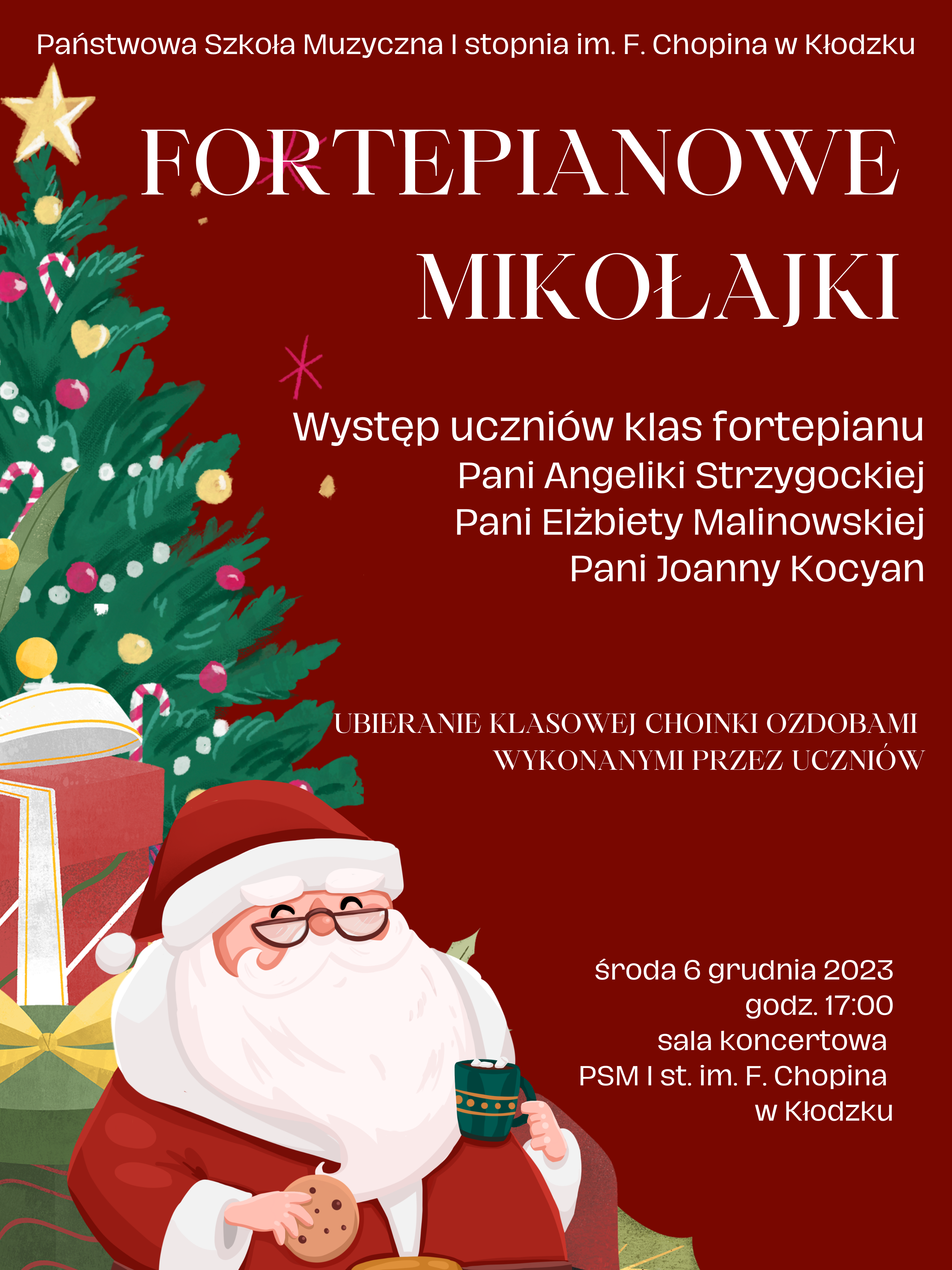 Koncert uczniów klas fortepianu pt. "Fortepianowe mikołajki" - 06 grudnia 2023