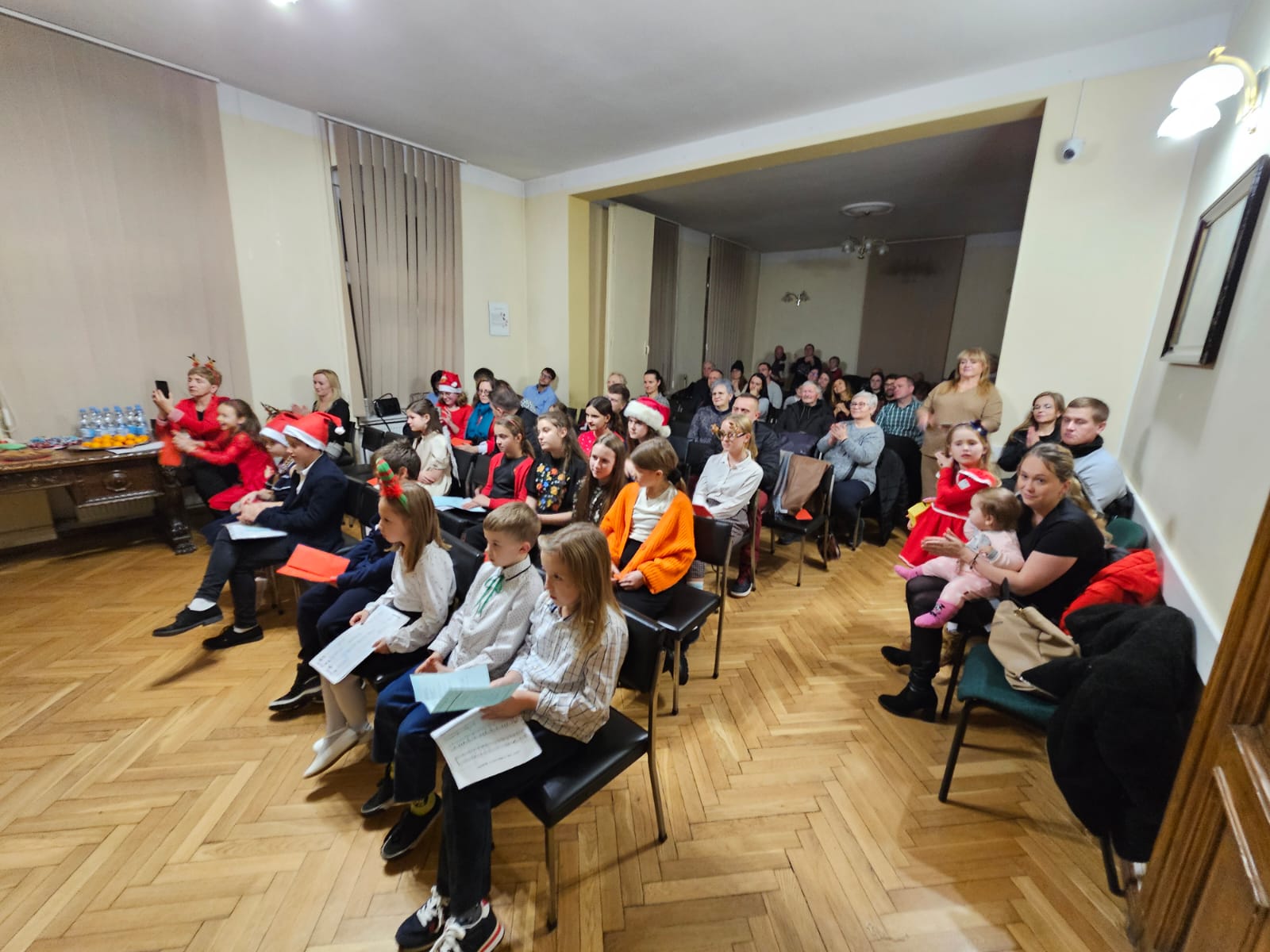 Koncert w wesołej atmosferze poprowadziła Pani Joanna Kocyan, która przekazała dzieciom mnóstwo zagadek od św. Mikołaja. Gratulujemy wszystkim wykonawcom udanych występów rodzicom dziękujemy za wsparcie swoich pociech a paniom Angelice Strzygockiej, Elżbiecie Malinowskiej i Joannie Kocyan dziękujemy za przygotowanie uczniów i organizację koncertu.
