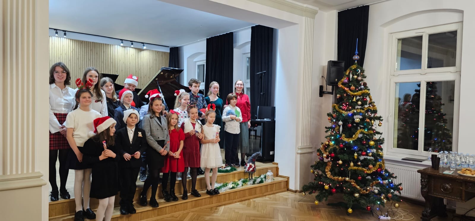 6-ego grudnia uczniowie klas fortepianu p.Angeliki Strzygockiej i p. Elżbiety Malinowskiej, podczas Fortepianowych mikołajek prezentowali na scenie wspaniałe prezenty muzyczne.