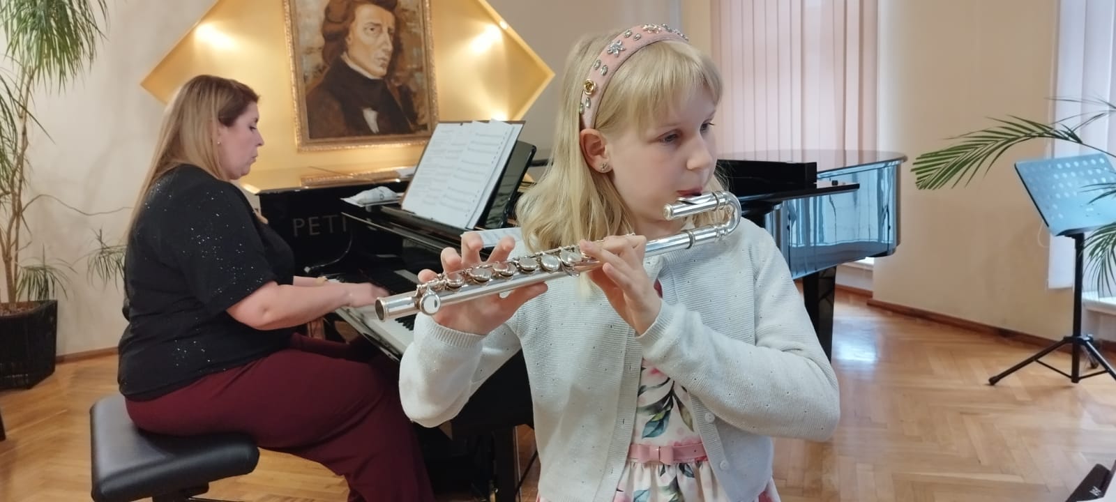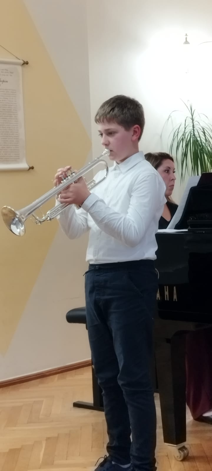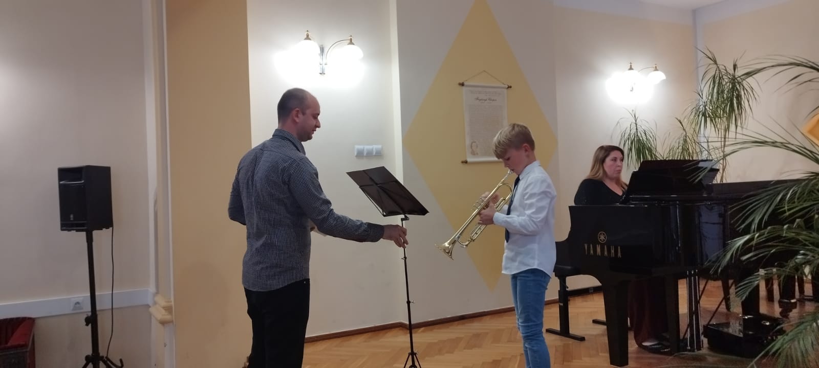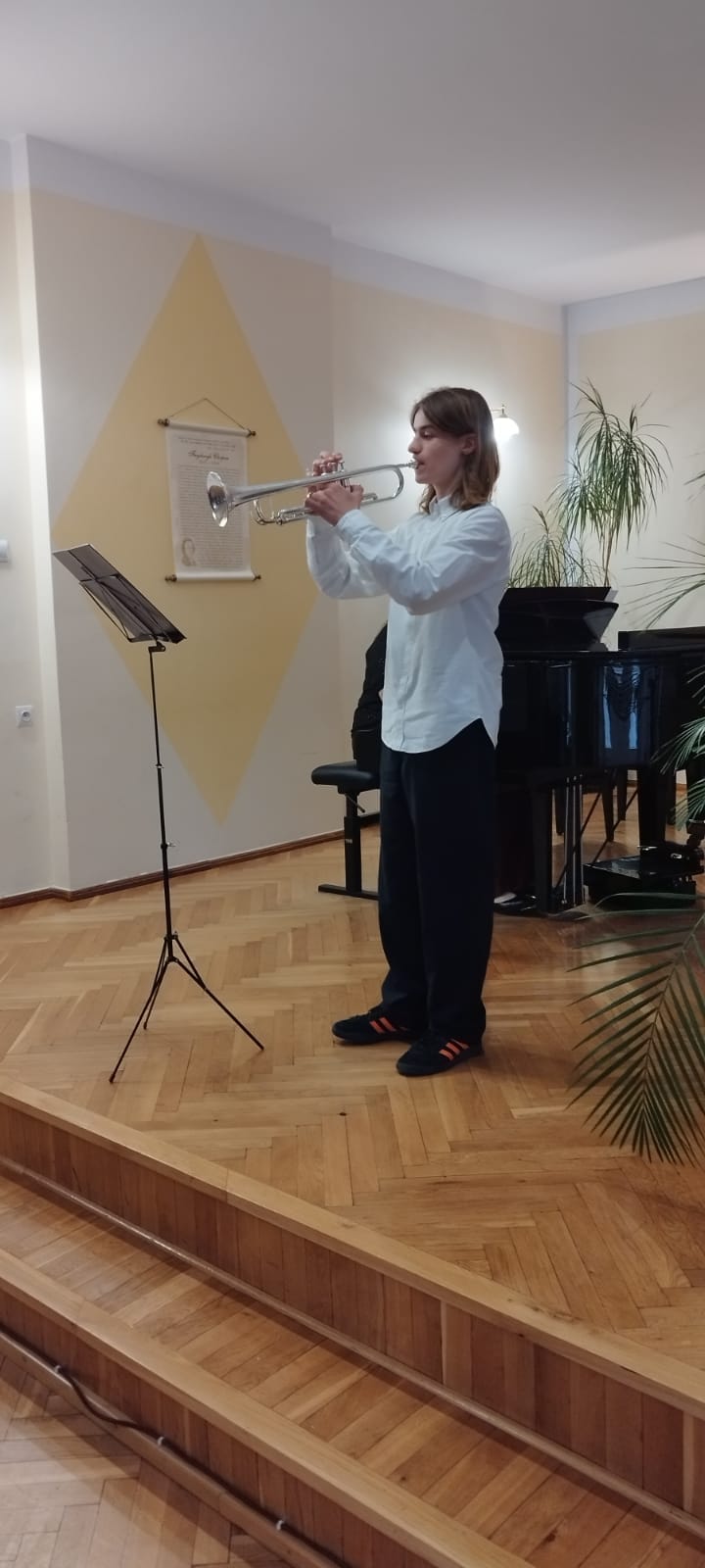 19 maja 2023 r. na koncercie ,,Wiosenne impresje" mogliśmy wysłuchać prezentacji muzycznych uczniów klasy fletu p. Bożeny Adamskiej i klasy trąbki p. Wojciecha Lizureja.