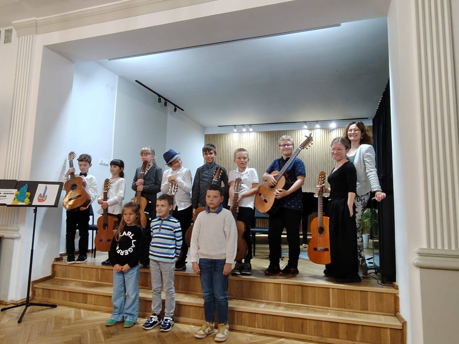 W dniu 23.09.2025 r. uczniowie klasy gitary Agnieszki Kozakowskiej po raz pierwszy - w niedawno rozpoczętym roku szkolnym - wystąpili na naszej szkolnej estradzie.
