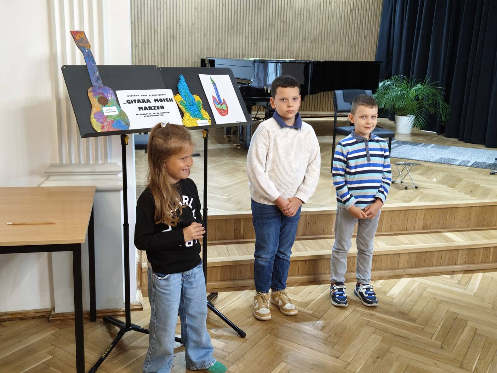 W koncercie pt. "Gitara wróciła z wakacji" młodzi gitarzyści wykonali utwory przygotowane i wyćwiczone podczas wypoczynku letniego. Tymczasem Pierwszaki, które dopiero co rozpoczynają swoją przygodę z gitarą, zaprezentowały swoje zdolności plastyczne poprzez ciekawe prace pt."Gitara moich marzeń". Gratulacje dla wszystkich za udany koncert i wystawę!