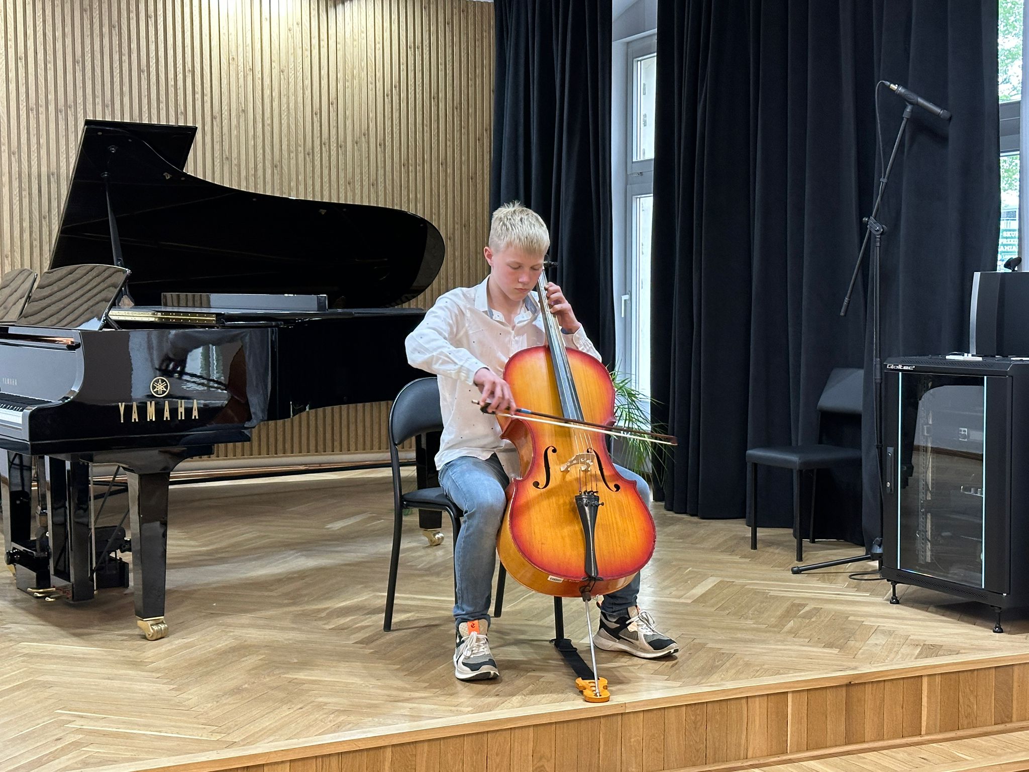 19.05.2025 r. w naszej szkole odbył się niezwykły koncert uczniów klasy wiolonczeli, podczas którego młodzi artyści zaprezentowali swoje umiejętności oraz efekty codziennej pracy.