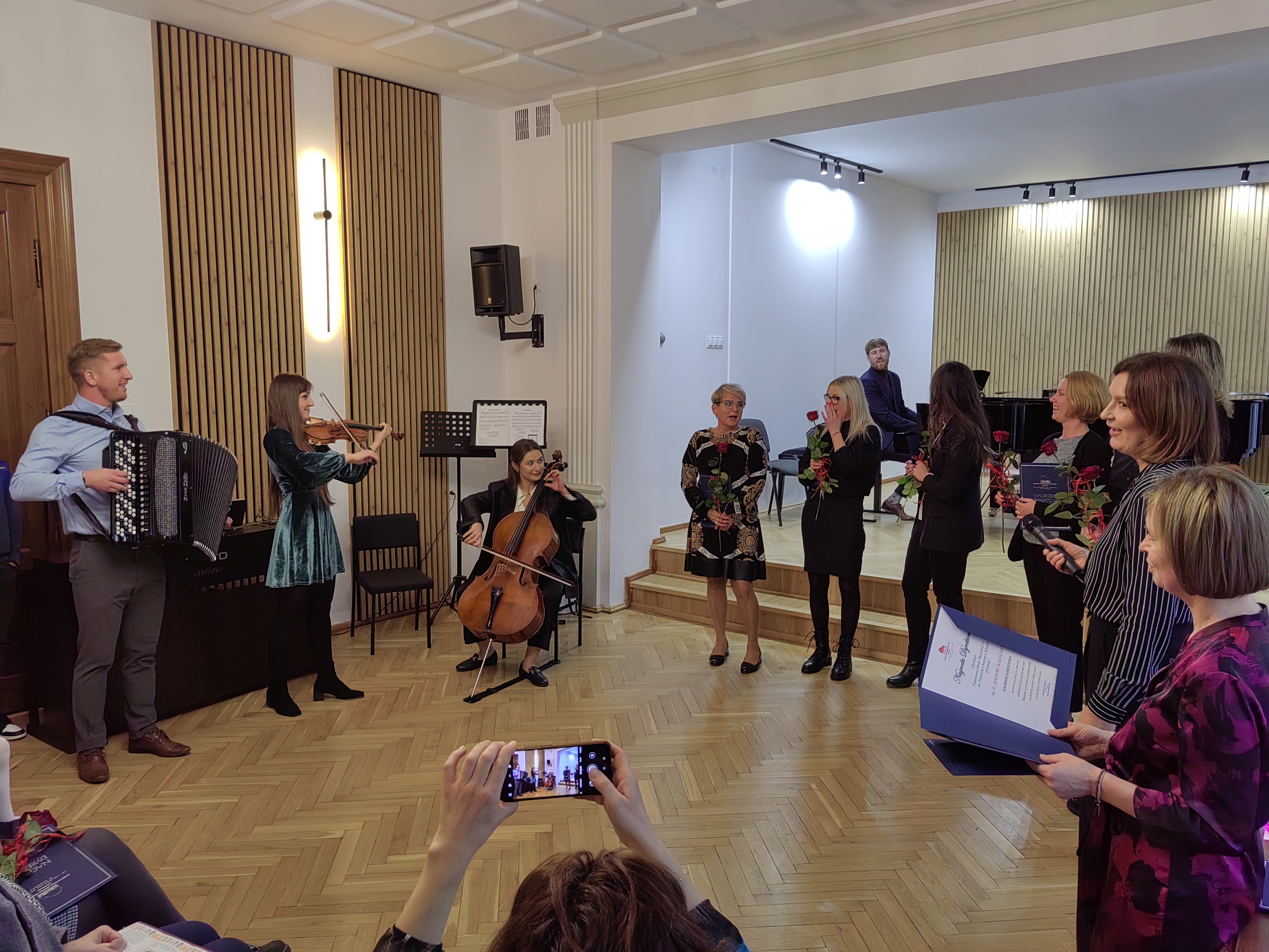 W trakcie uroczystości nauczycielom oraz pracownikom szkoły zostały wręczone nagrody dyrektora szkoły, a pani Angelika Strzygocka wyróżniona została nagrodą dyrektora CEA za szczególny wkład w rozwój edukacji artystycznej w Polsce. Gratulujemy wszystkim pedagogom, uczniom i rodzicom i życzymy dalszych sukcesów artystycznych i radości ze wspólnego muzykowania.