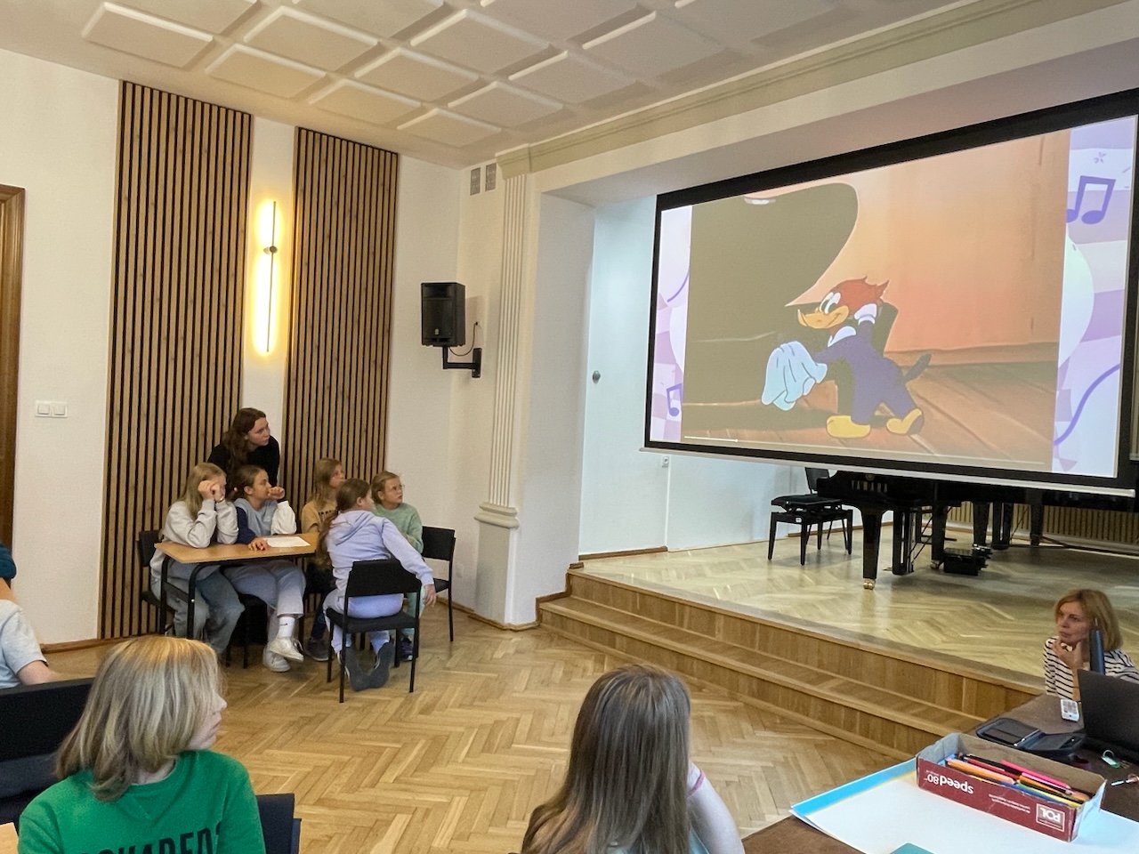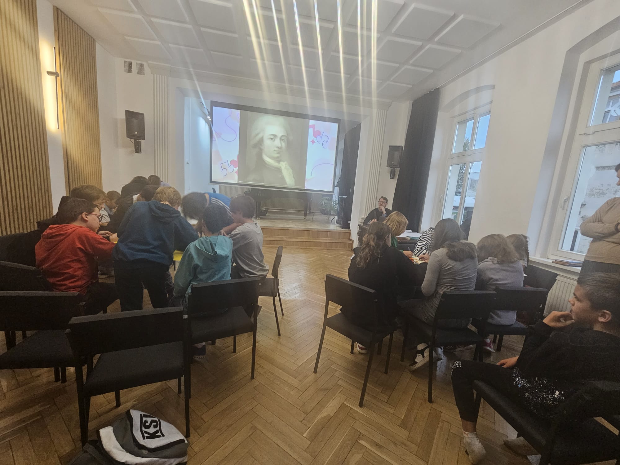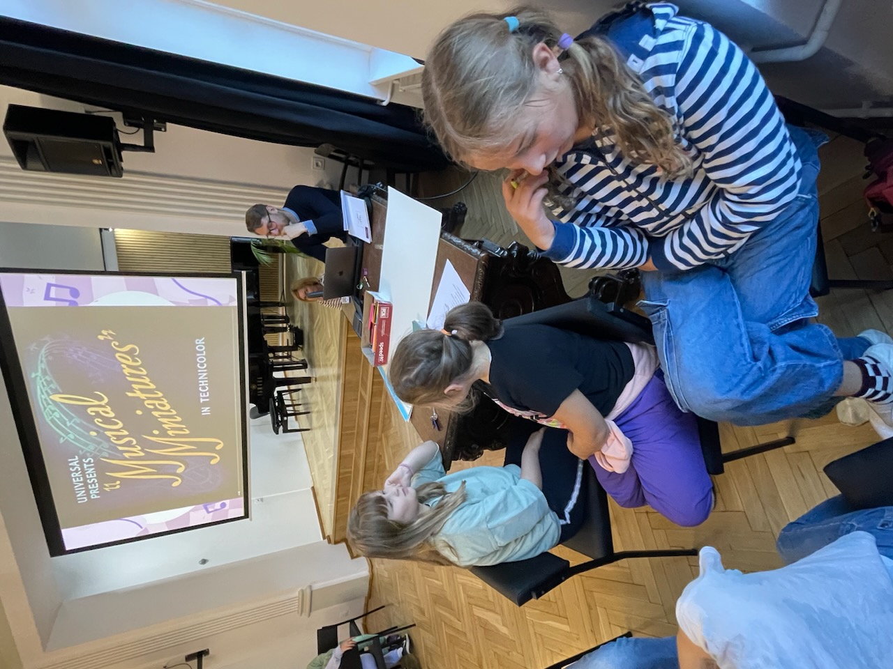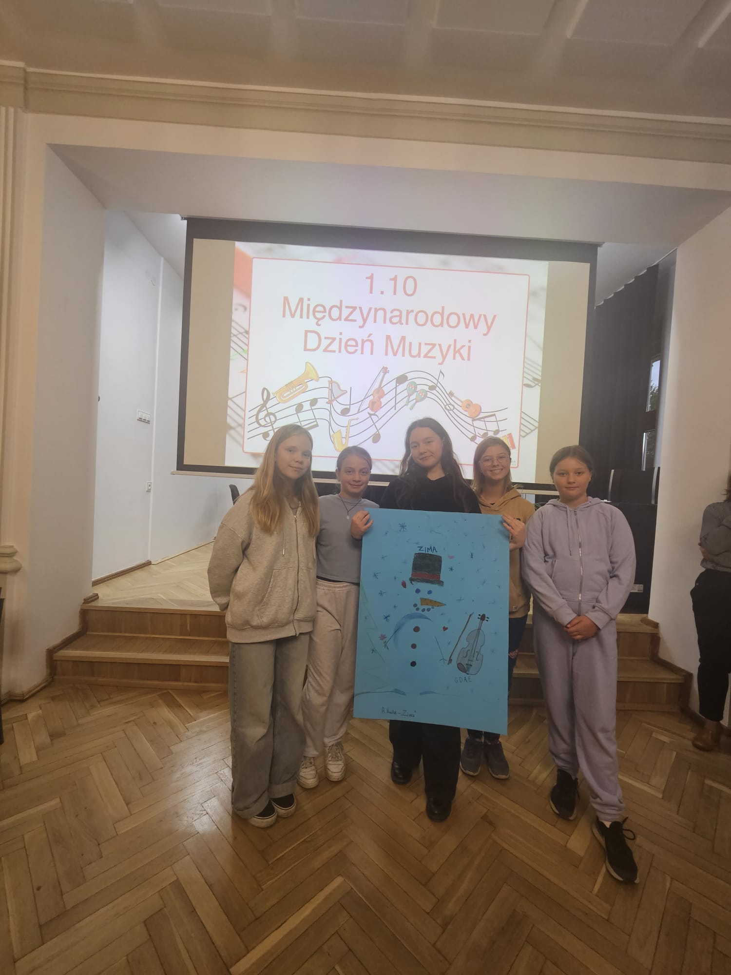 Nasi wspaniali nauczyciele teorii muzyki P. Agnieszka Milczarek, P. Renata Fiałkowska-Duma oraz P. Dominik Jarocki wygłosili prezentację na temat pozytywnego wpływu muzyki oraz zaprosili nas do pełnego emocji quizu.