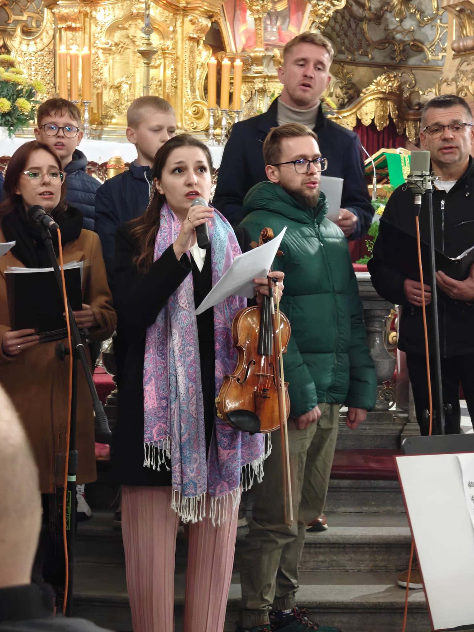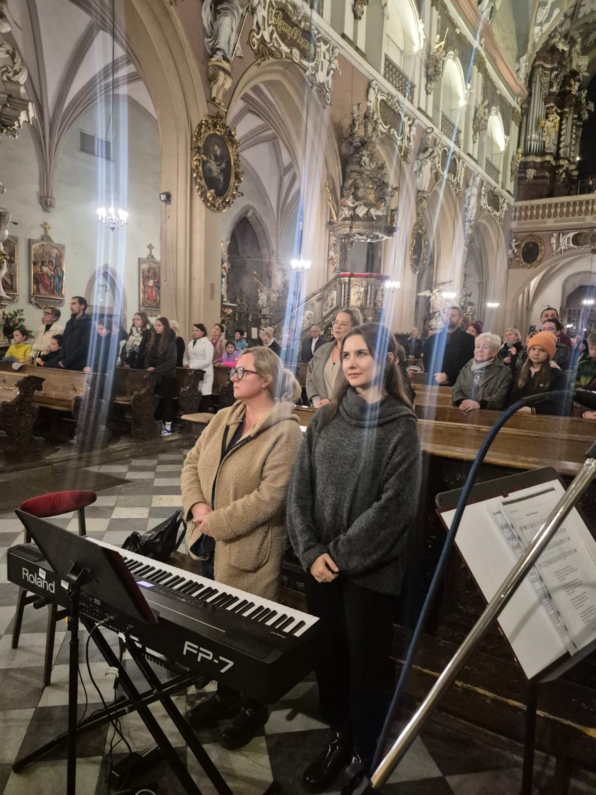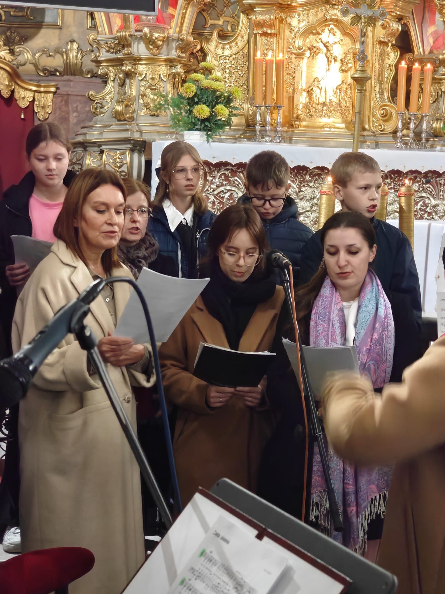 Scholę wokalno - instrumentalną stworzyli nauczyciele : Dominik Mas, Tomasz Brusiński, Patrycja Machała, Natalia Mierzwa, Karolina Lizurej, Bożena Adamska, Katarzyna Gałczyńska, Agnieszka Milczarek, Andrzej Habdas oraz pani Dyrektor Anna Bartkiewicz. Towarzyszyli im absolwenci i uczniowie naszej szkoły a całość poprowadziła Katarzyna Mąka. Wybrzmiały piękne pieśni oraz muzyka instrumentalna. Przy pulpicie wspaniałych świątynnych organów zasiadł Szymon Wołoch - również Absolwent naszej placówki a obecnie organista parafii WNP.