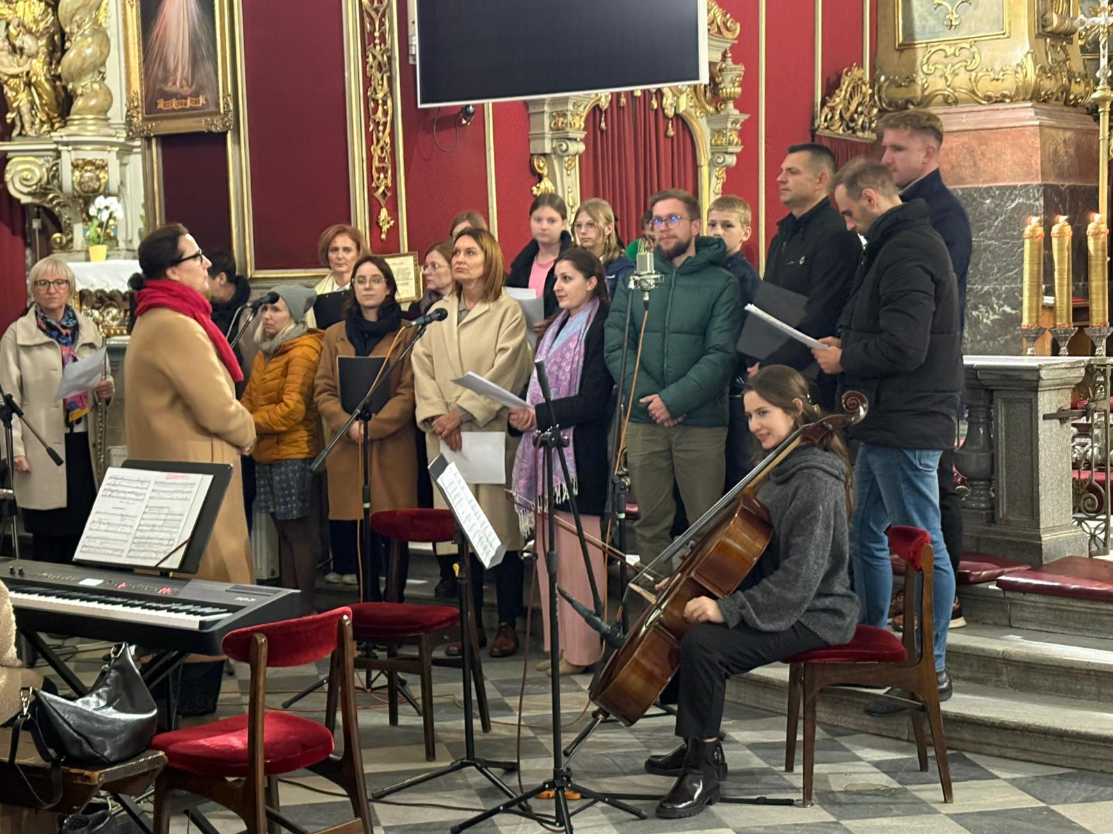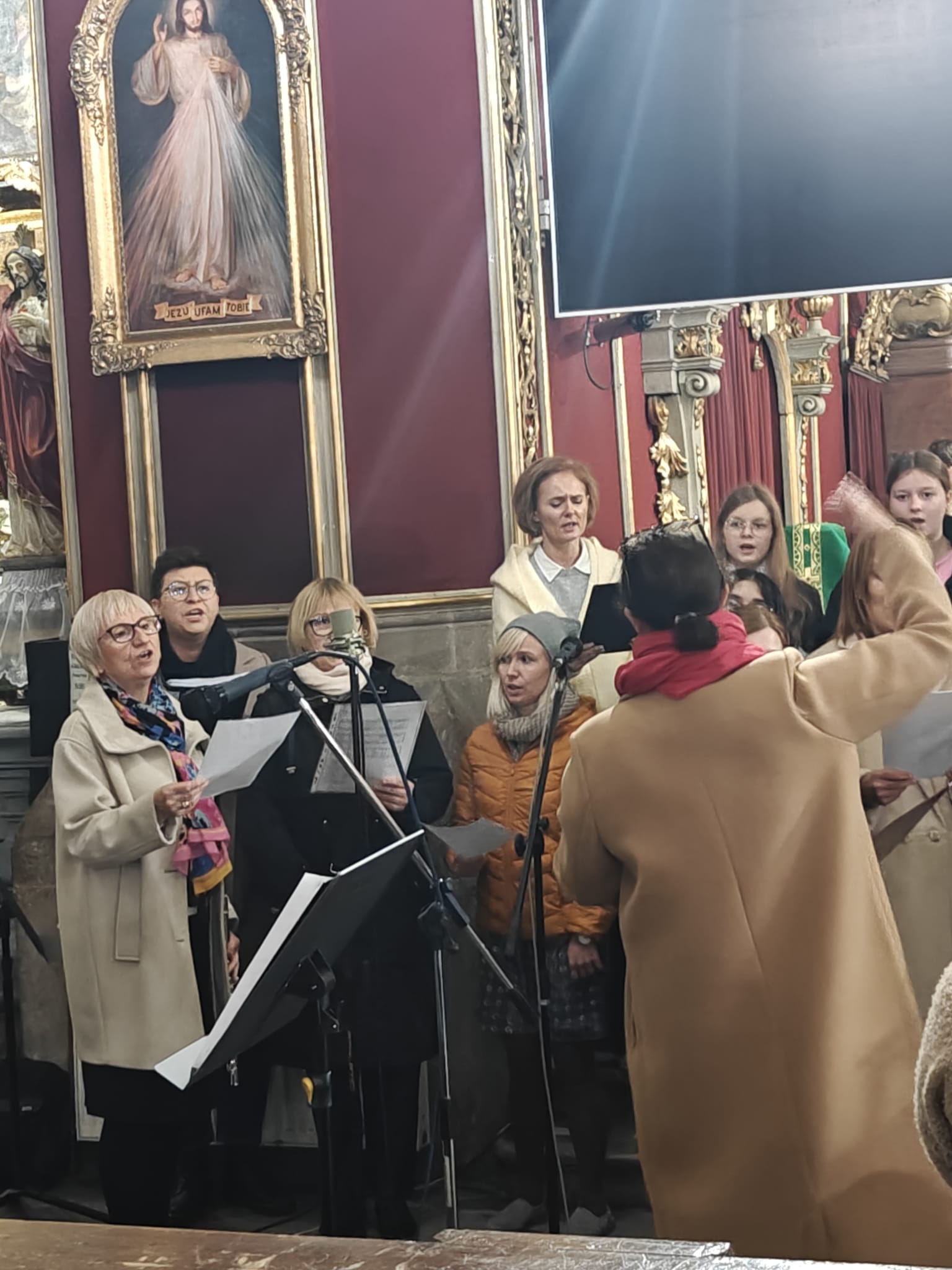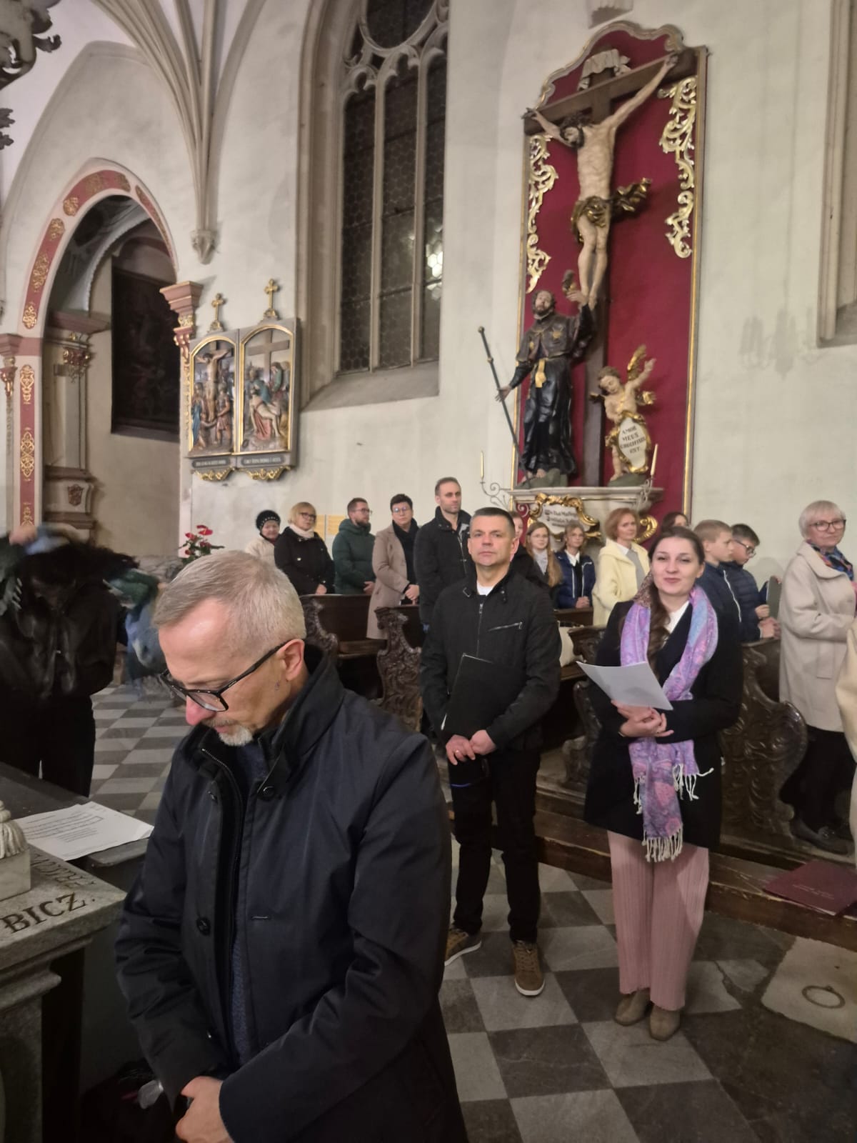Scholę wokalno - instrumentalną stworzyli nauczyciele : Dominik Mas, Tomasz Brusiński, Patrycja Machała, Natalia Mierzwa, Karolina Lizurej, Bożena Adamska, Katarzyna Gałczyńska, Agnieszka Milczarek, Andrzej Habdas oraz pani Dyrektor Anna Bartkiewicz. Towarzyszyli im absolwenci i uczniowie naszej szkoły a całość poprowadziła Katarzyna Mąka. Wybrzmiały piękne pieśni oraz muzyka instrumentalna. Przy pulpicie wspaniałych świątynnych organów zasiadł Szymon Wołoch - również Absolwent naszej placówki a obecnie organista parafii WNP.