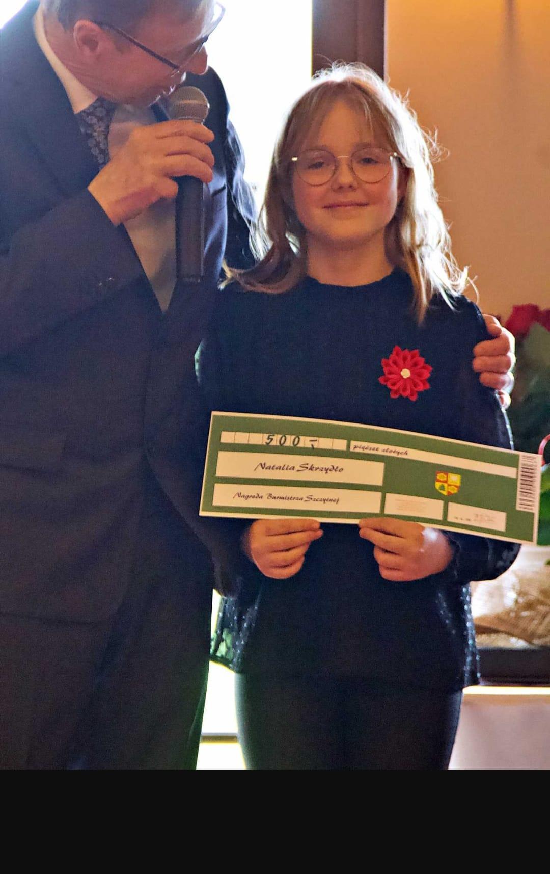 Oprócz Natalii wyrożnieni zostali młodzi sportowcy i uczniowie - zdobywcy nagród w różnych dziedzinach. Warto dodać, że wśród nagrodzonych znalazł się także absolwent naszej szkoły sprzed lat, obecnie student, i mieszkaniec Szczytnej - Jeremi ŁUKANUS (klasa fortepianu Katarzyny Mąki-Żelazko). Gratulujemy!