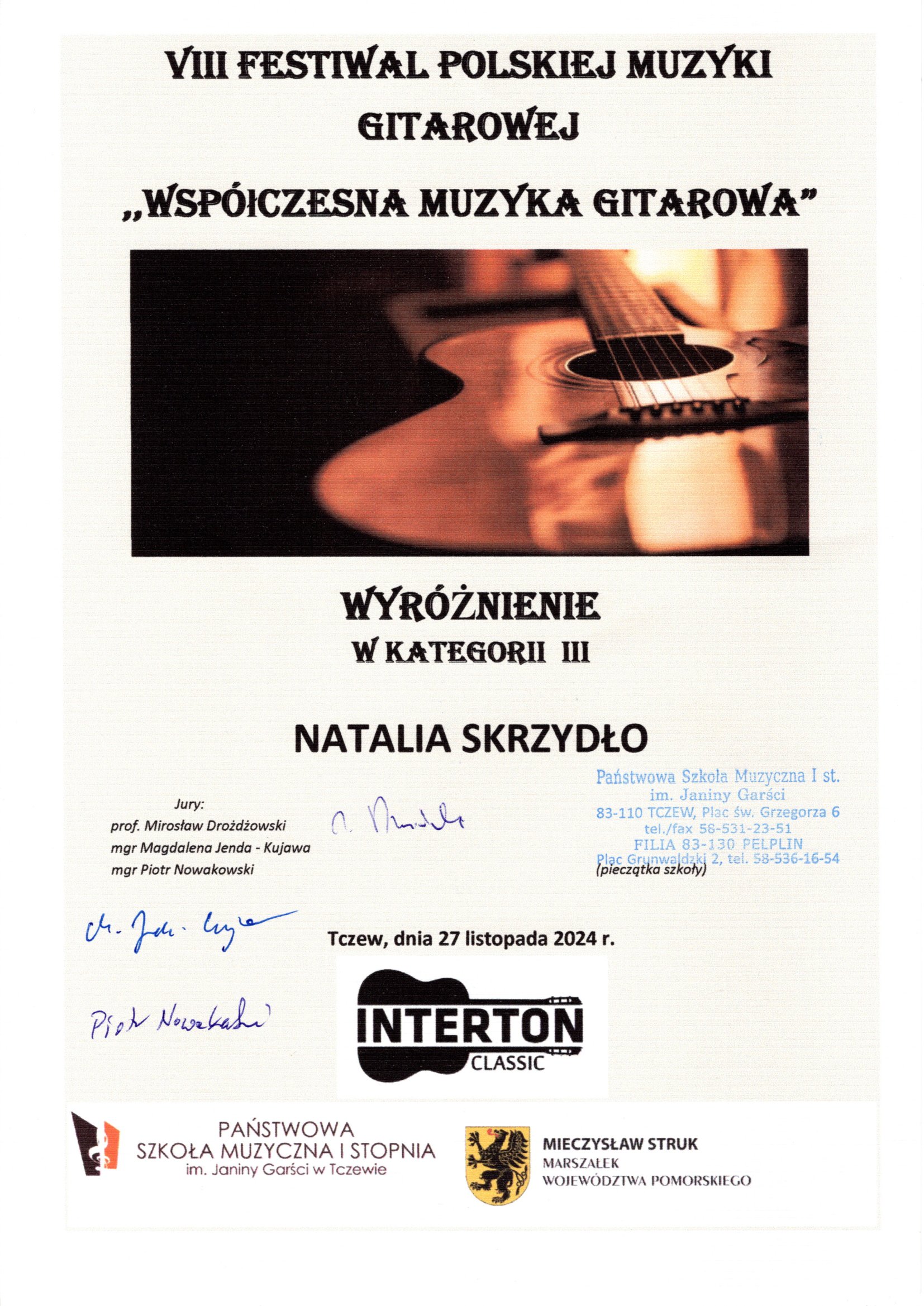 VIII Festiwal Polskiej Muzyki Gitarowej w Tczewie 27.11.2024 r.