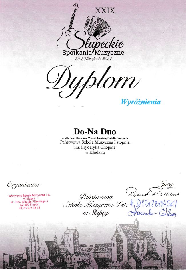 - Duet "Spring” Weronika Osicka, Kacper Gredys – dyplom laureata I stopnia, kat. duet instrumentalny/midi – naucz. Anna Bartkiewicz