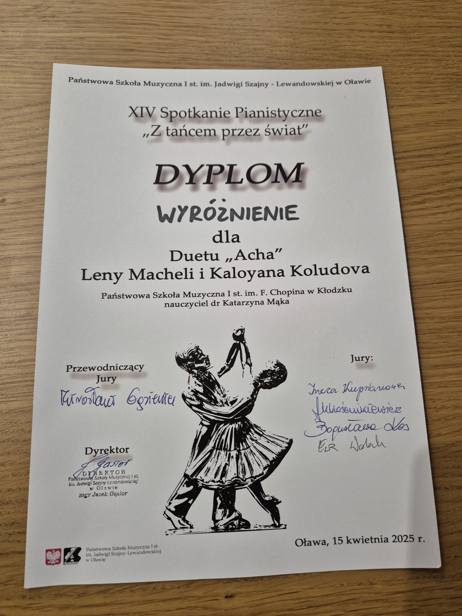 - Duet "Acha" Lena Machela, Kaloyan Kaludov - wyróżnienie - naucz. Katarzyna Mąka-Żelazko