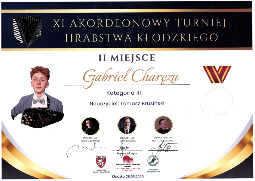 - Gabriel Charęza - srebrny medal w kat. II - naucz. Tomasz Brusiński