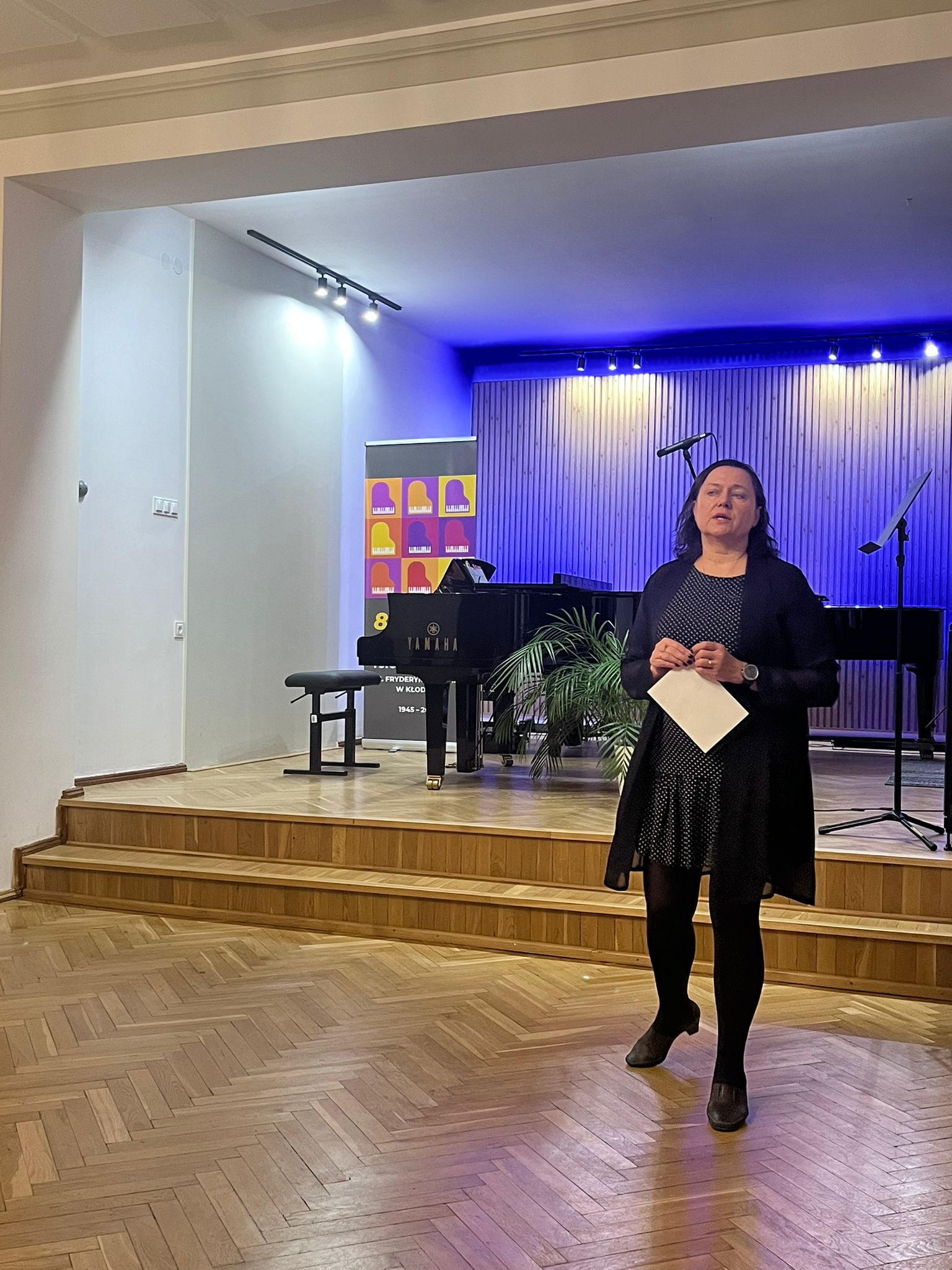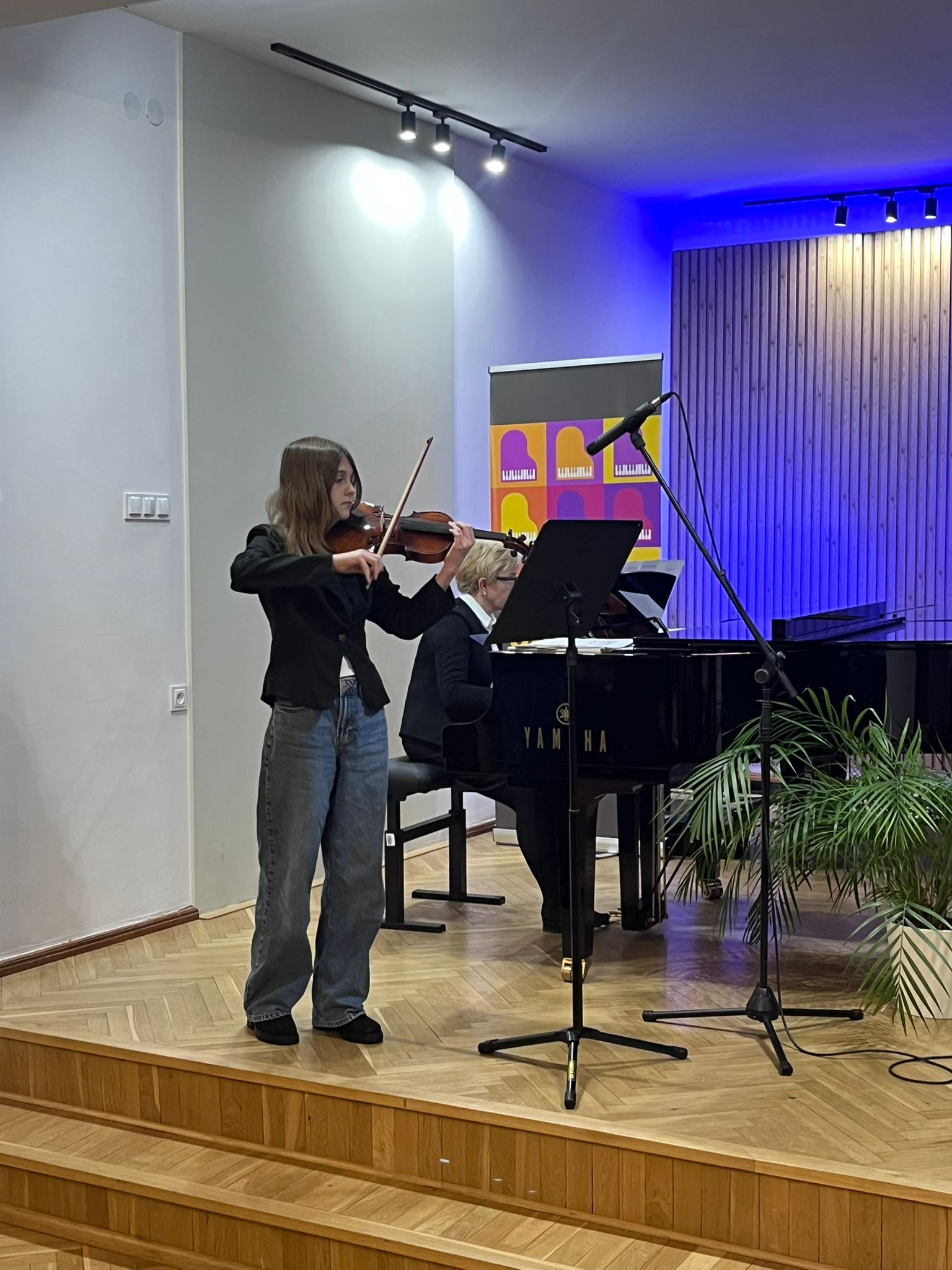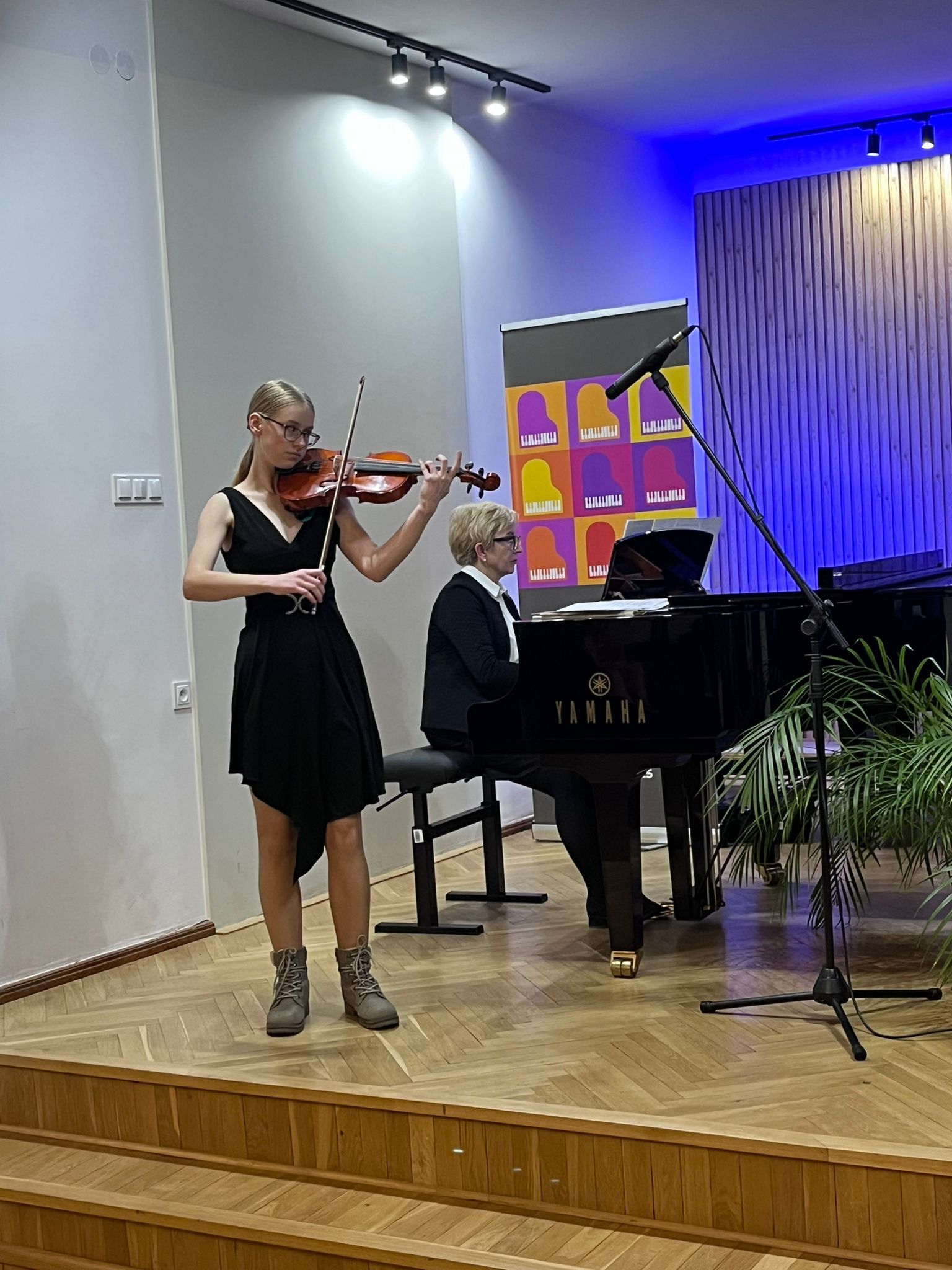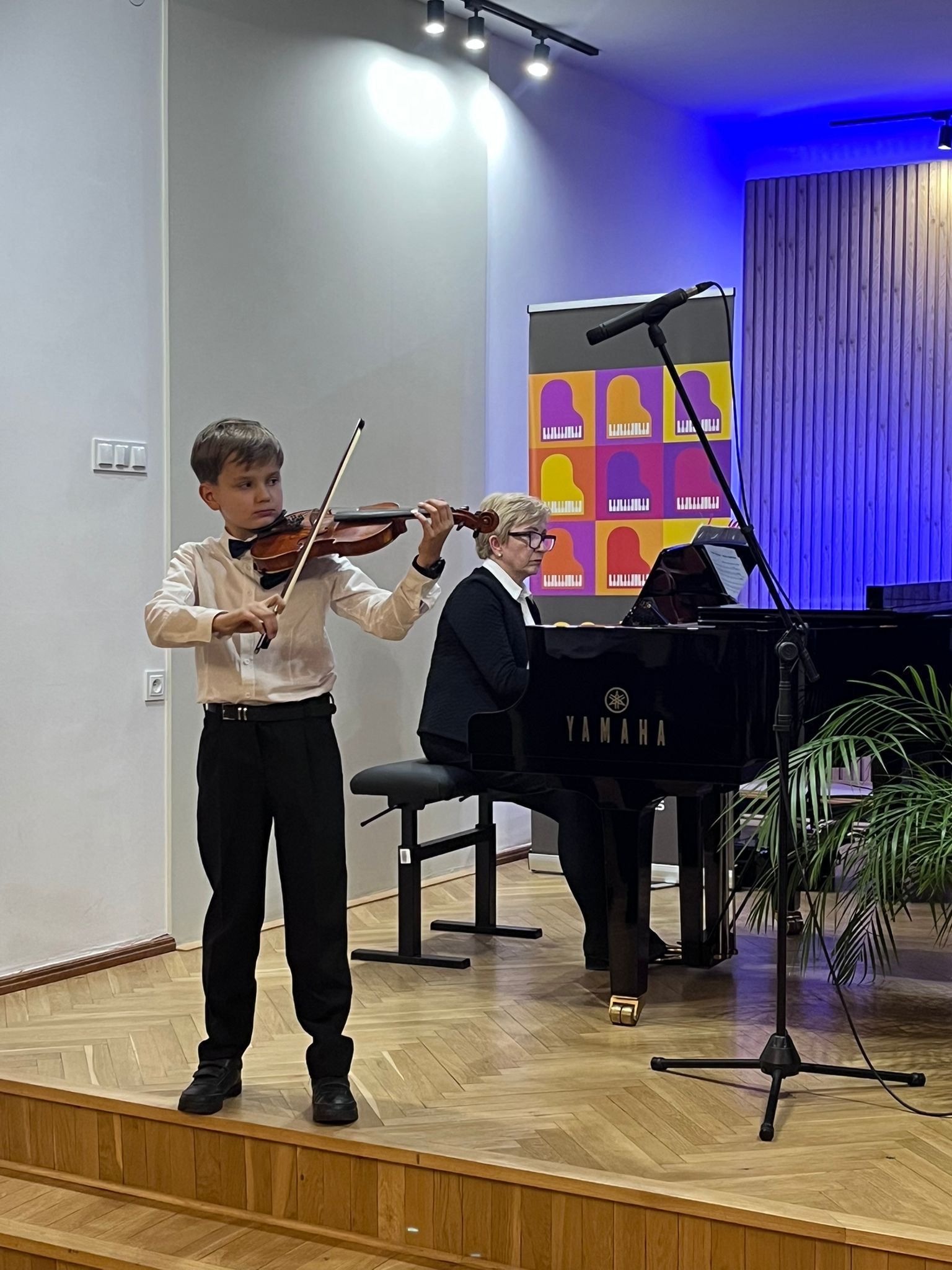 W poniedziałek 1 grudnia 2025 r. podczas koncertu swoje umiejętności prezentowali uczniowie z klasy skrzypiec pani Krystyny Ślęzak.