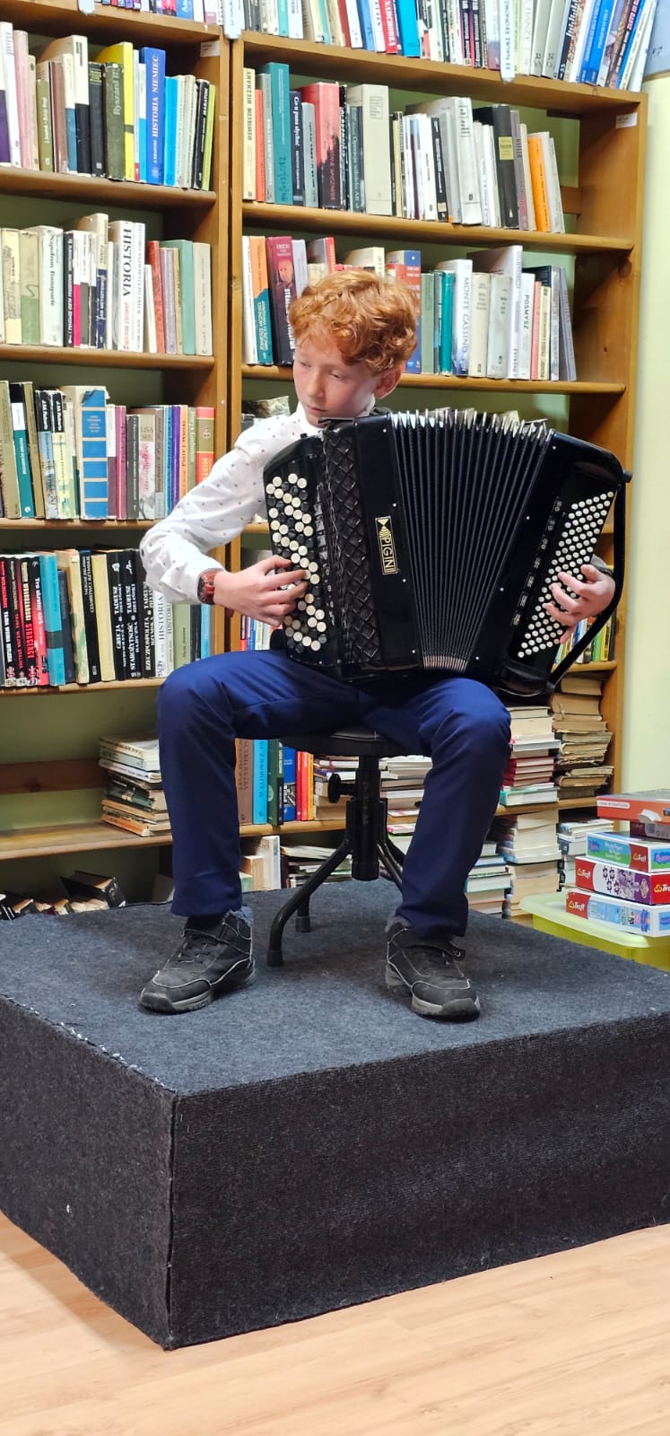Spotkanie uświetnił występ akordeonisty Gabriela Charęzy, który uczy się pod kierunkiem mgr Tomasza Brusińskiego. W spotkaniu uczestniczyły m.in. dyrektor szkoły Anna Bartkiewicz oraz Angelika Strzygocka, nauczycielka fortepianu i koordynatorka publikacji. Obecni byli również nauczyciele Lilianna Stopka, Witold Kozakowski i Tomasz Brusiński, którzy opowiadali o pracy nad książką.
