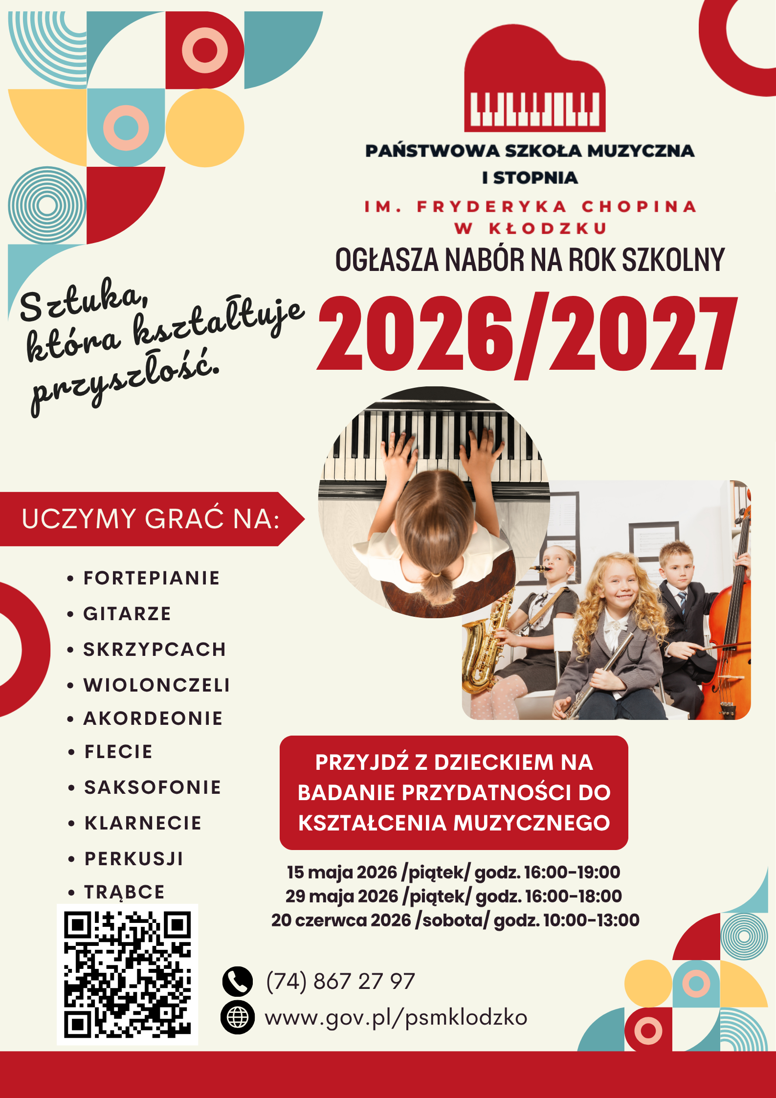 - Lekcja przygotowawcza dla kandydatów – 08 maja 2026 r. godz. 17:00 aula PSM I st. w Kłodzku