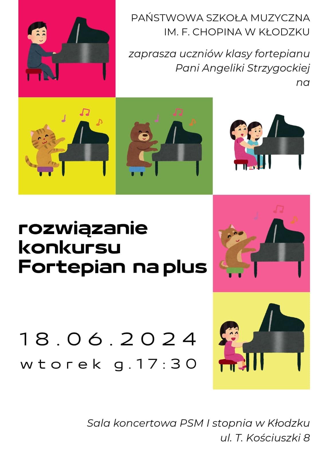 18.06.24 odbyło się spotkanie uczniów z klasy fortepianu pani Angeliki Strzygockiej oraz rozwiązanie "Konkursu fortepian na plus".