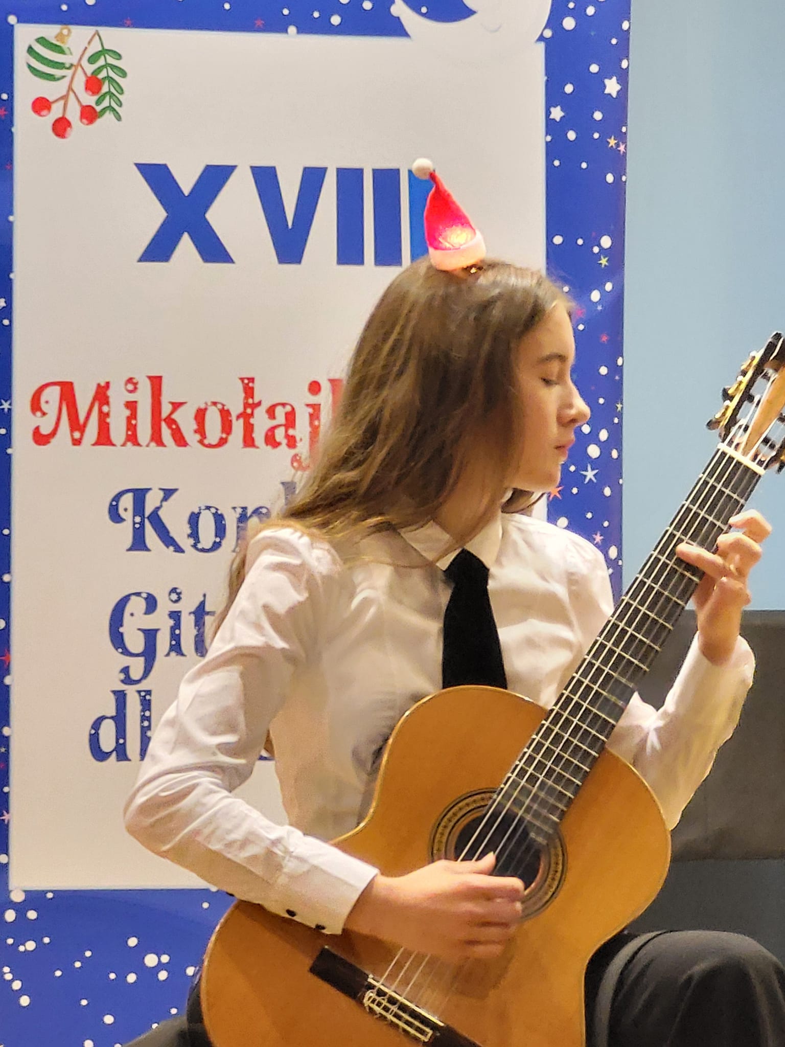 Sukces gitarzystki z klasy gitary W. Kozakowskiego na XVIII Mikołajkowym Konkursie Gitarowym - 07 grudnia 2024