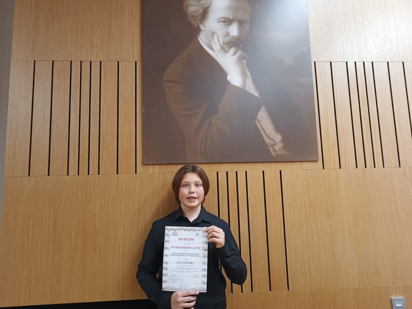 Jan Jasiński - uczeń z klasy wiolonczeli p. mgr Patrycji Machały zdobył wyróżnienie na XXIII Ogólnopolskim Konkursie Wiolonczelowo - Kontrabasowym w Malborku.