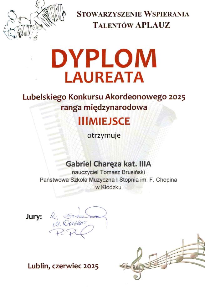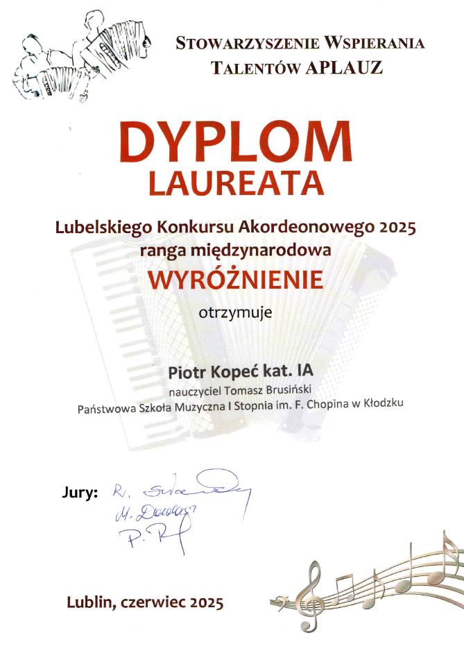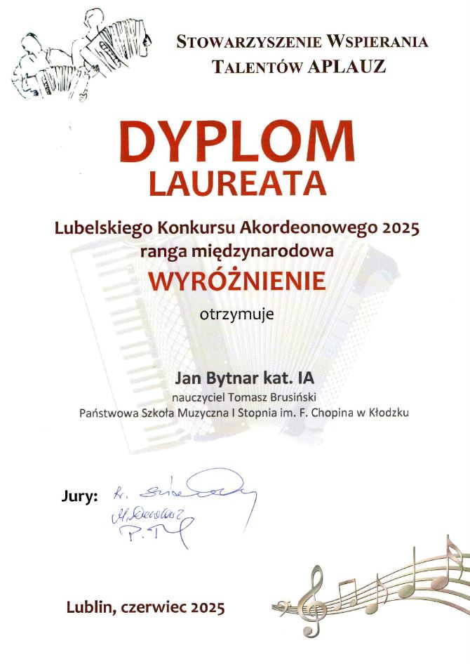 Sukcesy uczniów klasy akordeonu Tomasza Brusińskiego na Międzynarodowym Lubelskim Konkursie Akordeonowym 2025