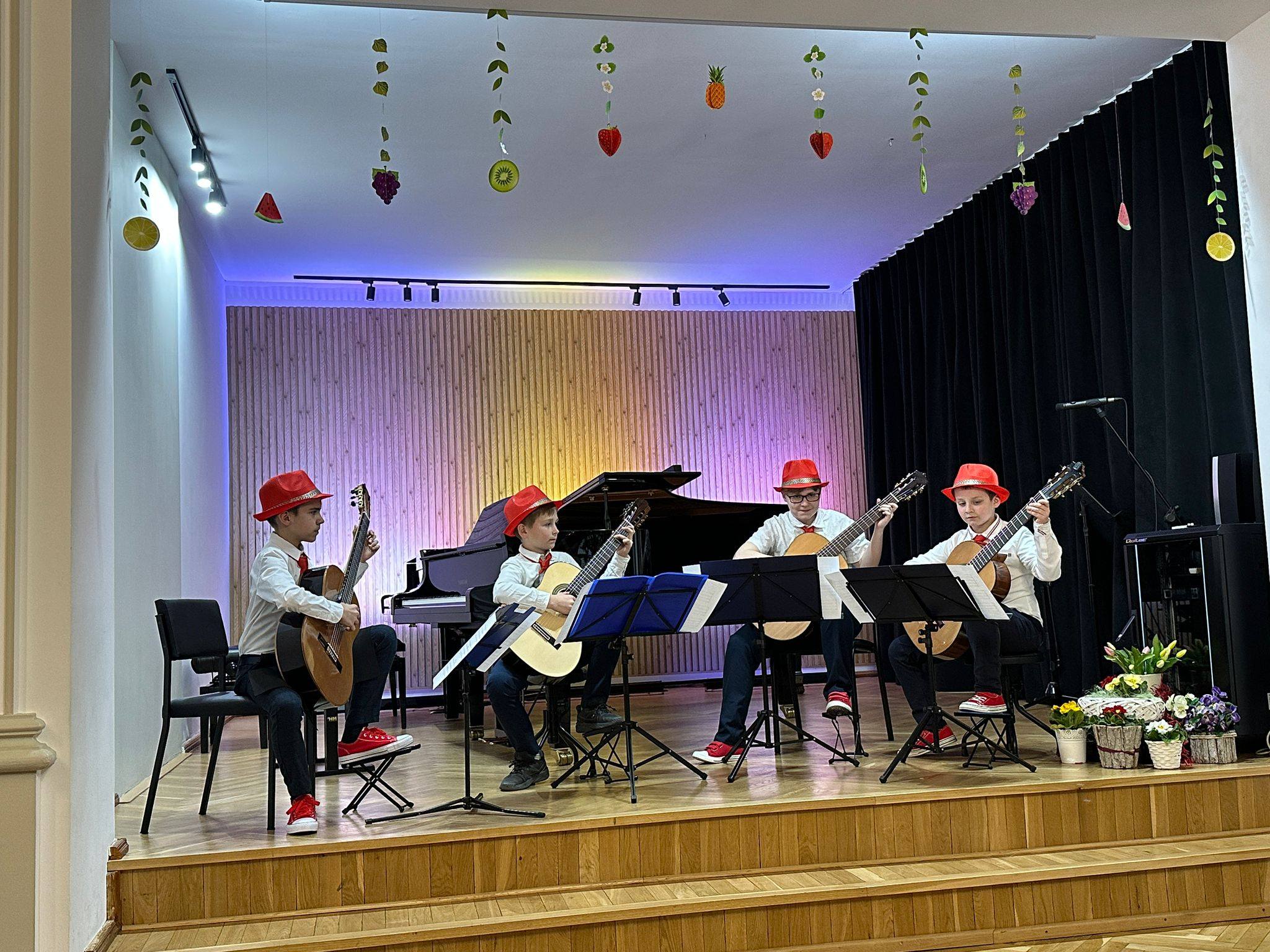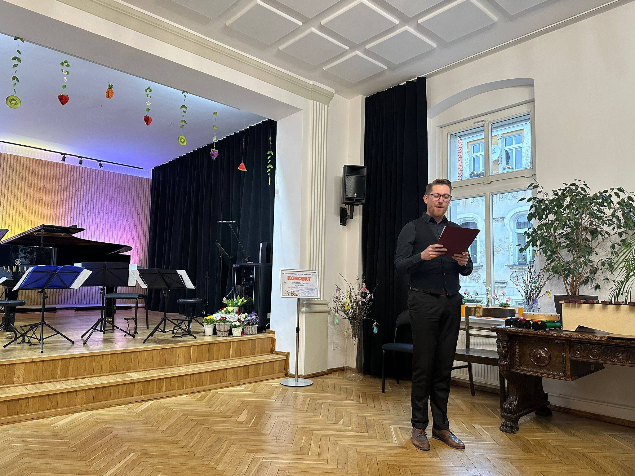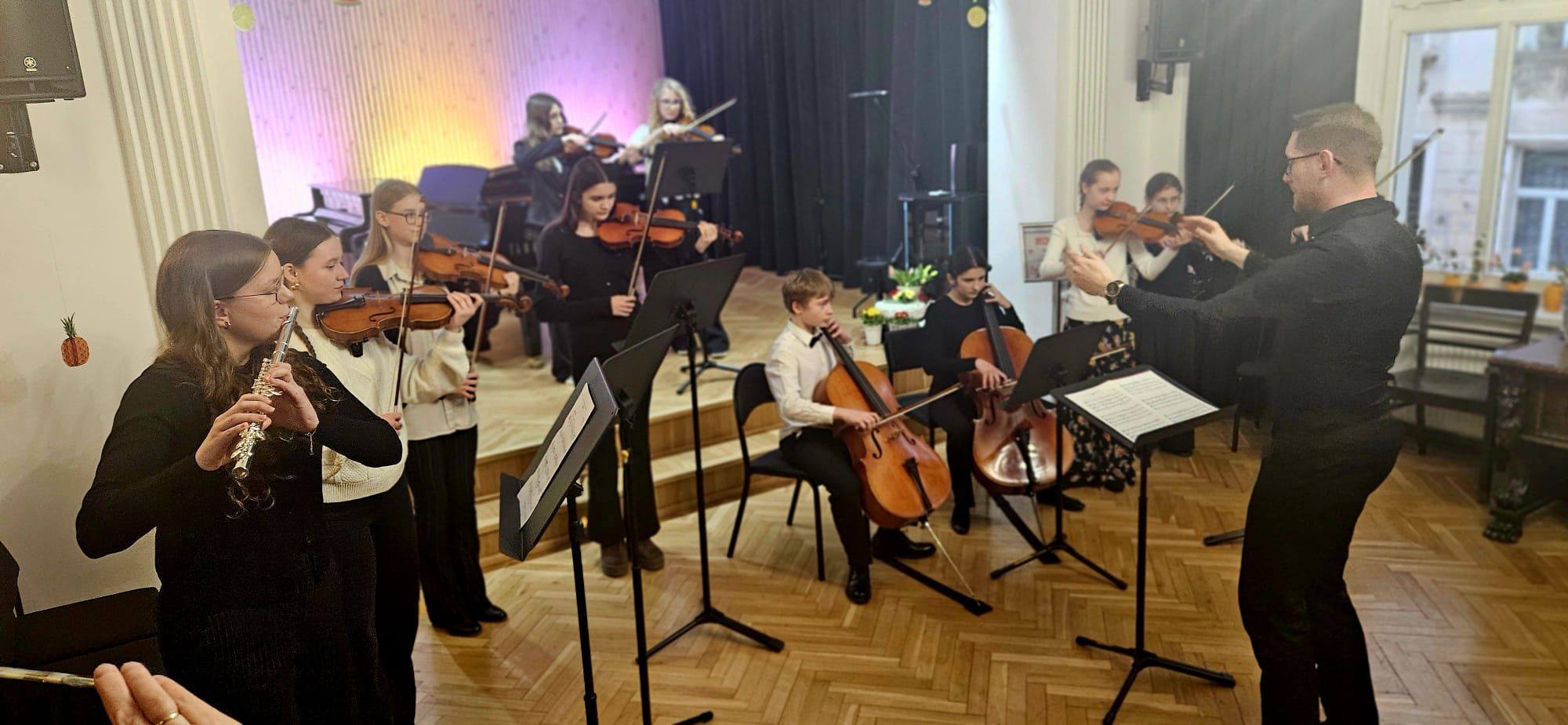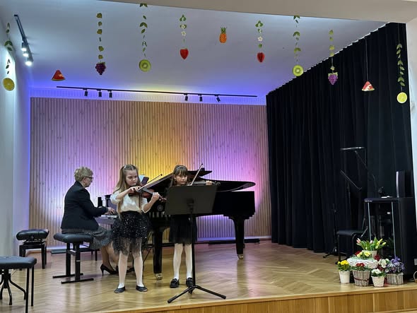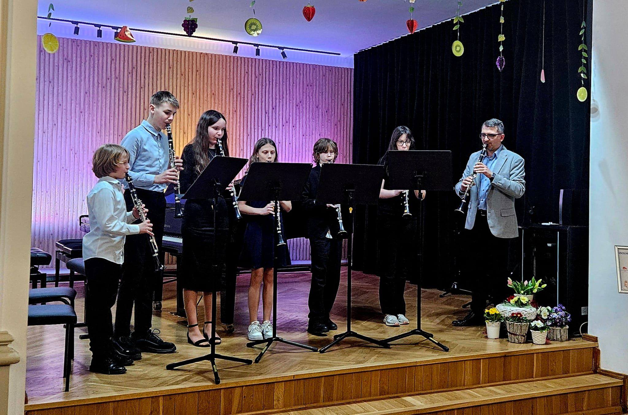 Zaprezentowały się duety skrzypcowe, wiolonczelowe, klarnetowe, fletowe, saksofonowe oraz fortepianowe. Usłyszeć mogliśmy również kwartet gitarowy „Kłodzkie gryfy”, zespół klarnetowy oraz zespół rytmiczny stworzony z uczniów klasy II i III cyklu 6-letniego. Miłym akcentem było wystąpienie nauczycielek klasy fortepianu pani Katarzyny Gałczyńskiej i pani Iryny Yakymets, które wykonały „Taniec Anitry” - E. Griega. Na koniec wystąpiła Szkolna Orkiestra Kameralna. Cały koncert poprowadził pan Dominik Jarocki. Serdecznie gratulujemy wykonawcom i zapraszamy na kolejne wydarzenia w naszej szkole. 👏🏼☺️🌹