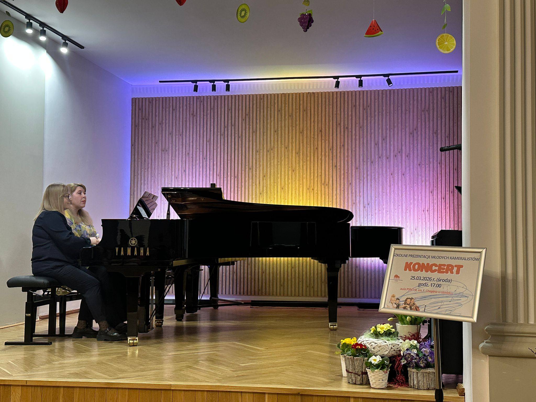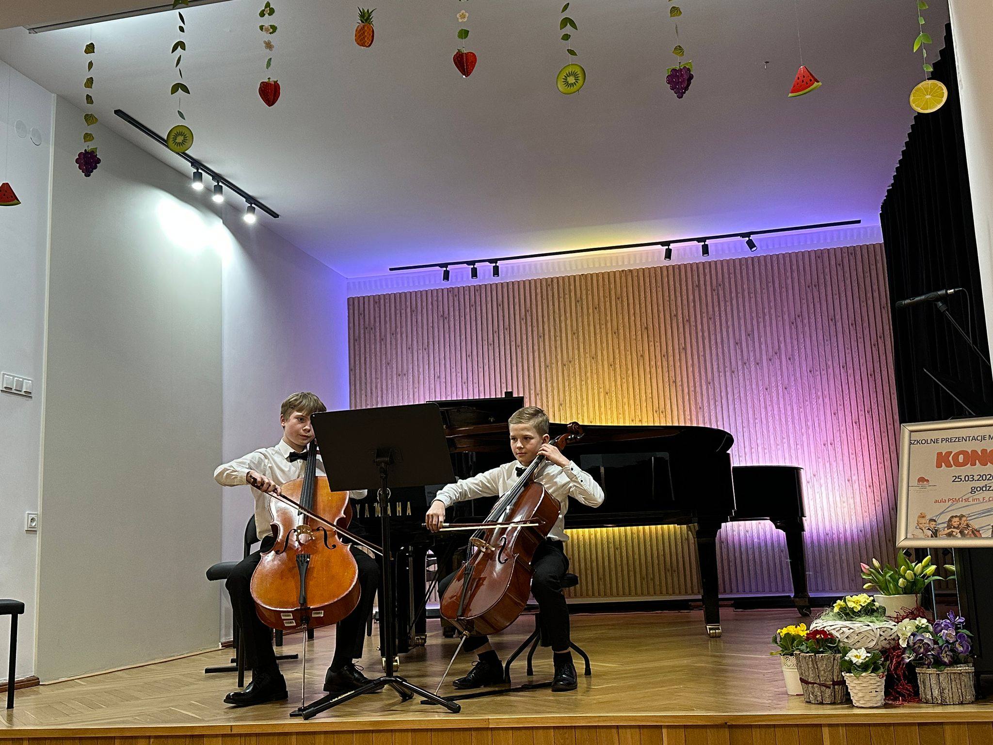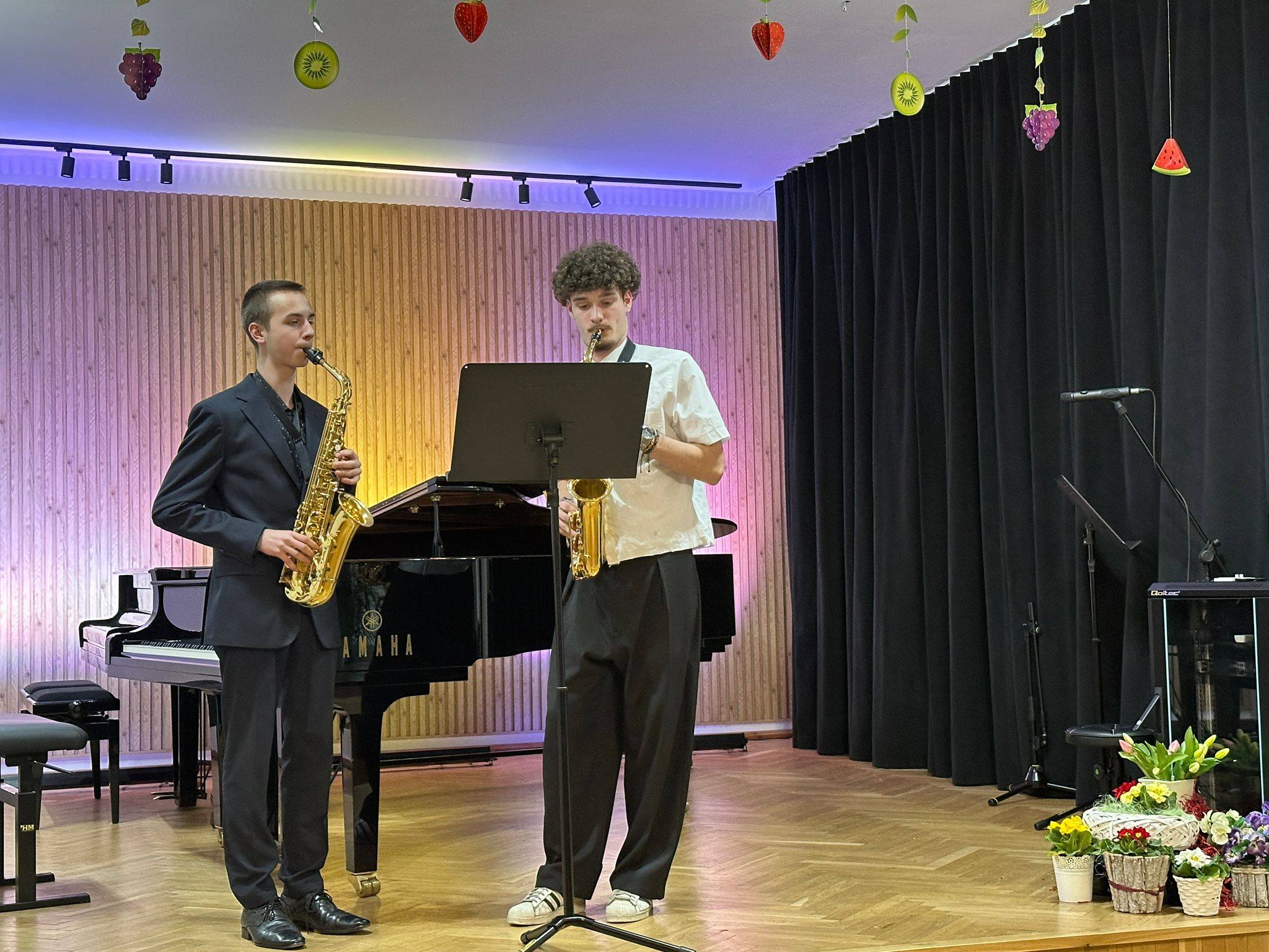 Zaprezentowały się duety skrzypcowe, wiolonczelowe, klarnetowe, fletowe, saksofonowe oraz fortepianowe. Usłyszeć mogliśmy również kwartet gitarowy „Kłodzkie gryfy”, zespół klarnetowy oraz zespół rytmiczny stworzony z uczniów klasy II i III cyklu 6-letniego. Miłym akcentem było wystąpienie nauczycielek klasy fortepianu pani Katarzyny Gałczyńskiej i pani Iryny Yakymets, które wykonały „Taniec Anitry” - E. Griega. Na koniec wystąpiła Szkolna Orkiestra Kameralna. Cały koncert poprowadził pan Dominik Jarocki. Serdecznie gratulujemy wykonawcom i zapraszamy na kolejne wydarzenia w naszej szkole. 👏🏼☺️🌹