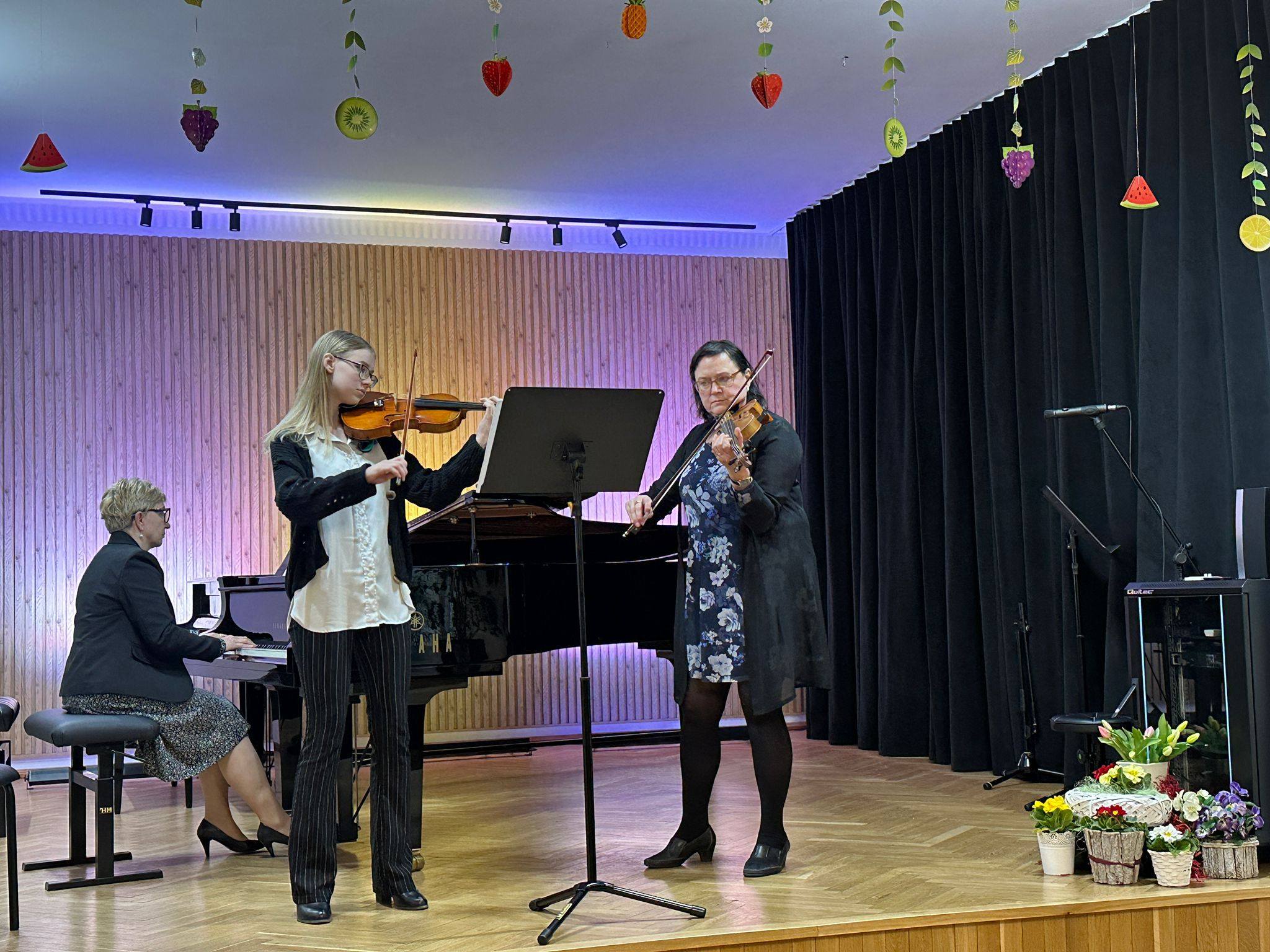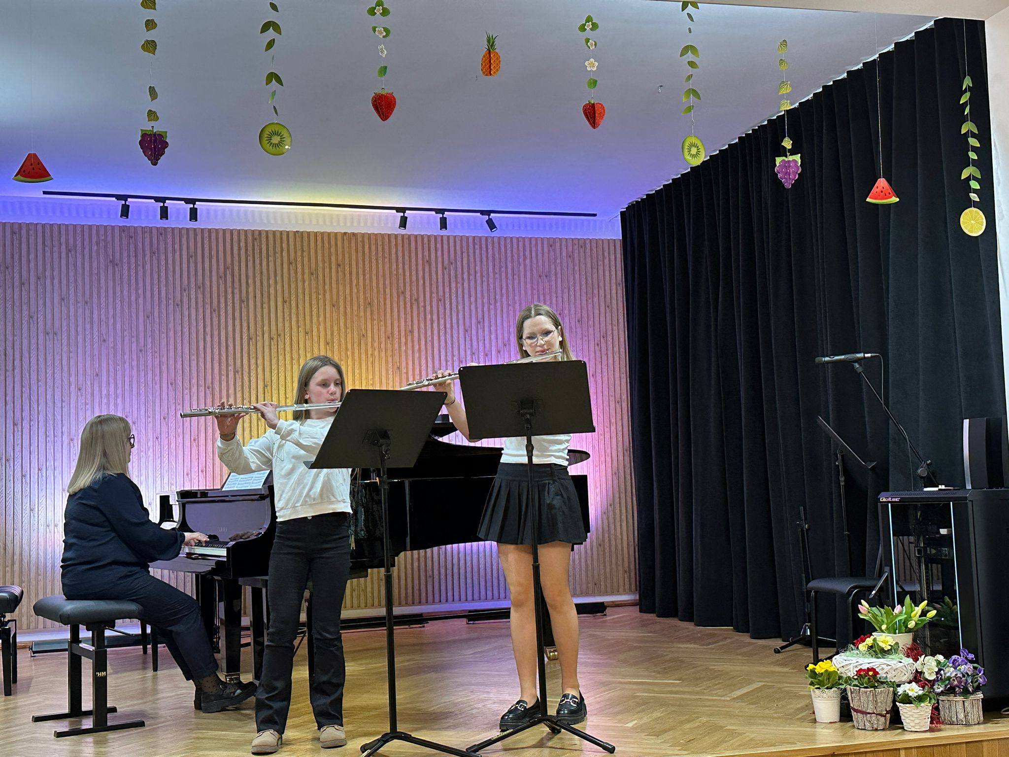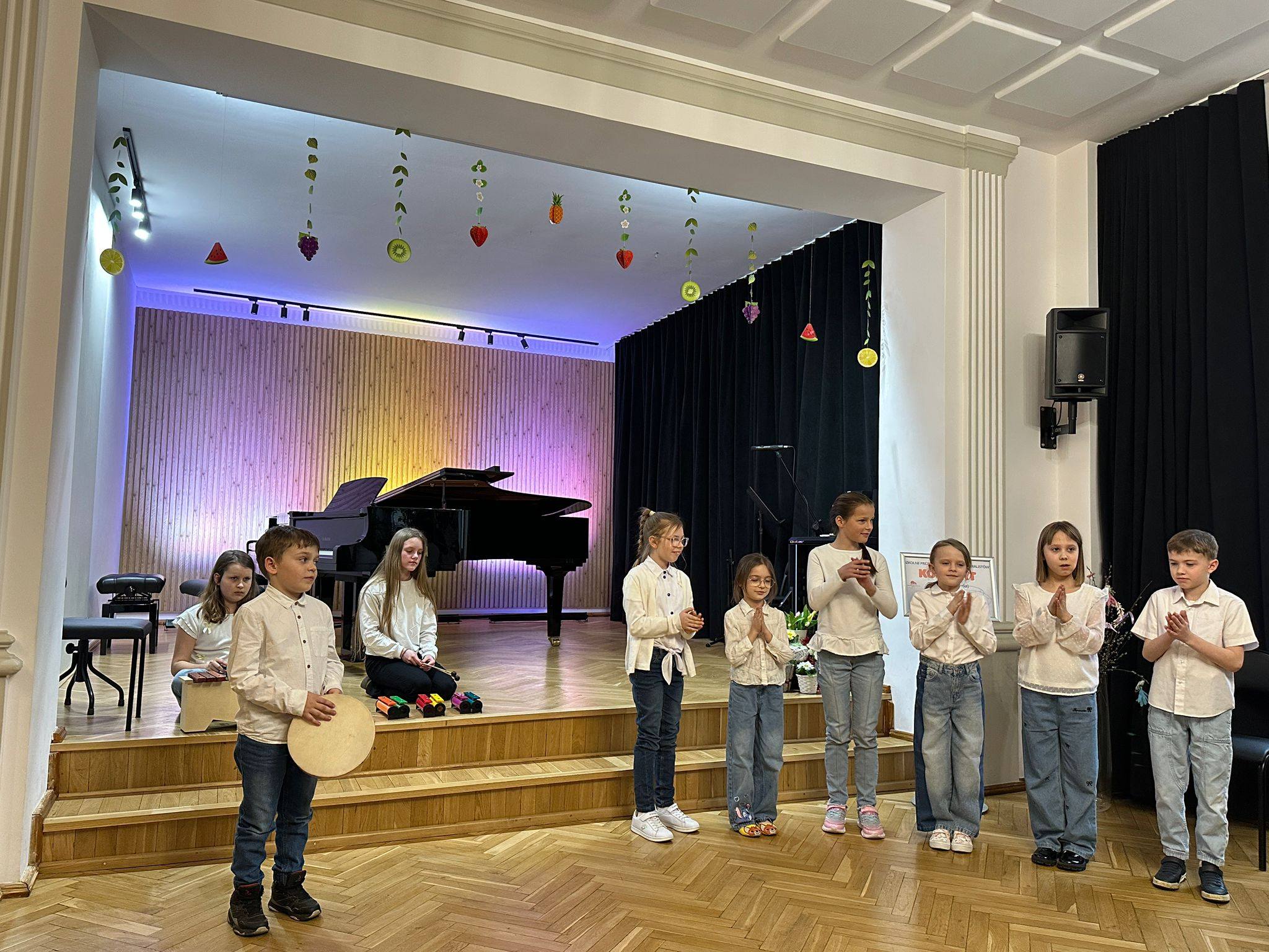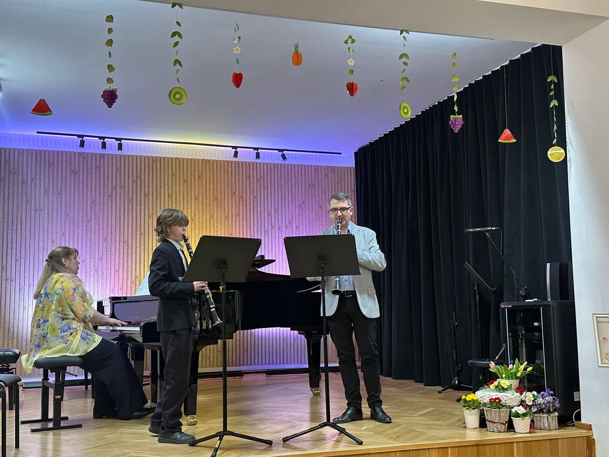 Zaprezentowały się duety skrzypcowe, wiolonczelowe, klarnetowe, fletowe, saksofonowe oraz fortepianowe. Usłyszeć mogliśmy również kwartet gitarowy „Kłodzkie gryfy”, zespół klarnetowy oraz zespół rytmiczny stworzony z uczniów klasy II i III cyklu 6-letniego. Miłym akcentem było wystąpienie nauczycielek klasy fortepianu pani Katarzyny Gałczyńskiej i pani Iryny Yakymets, które wykonały „Taniec Anitry” - E. Griega. Na koniec wystąpiła Szkolna Orkiestra Kameralna. Cały koncert poprowadził pan Dominik Jarocki. Serdecznie gratulujemy wykonawcom i zapraszamy na kolejne wydarzenia w naszej szkole. 👏🏼☺️🌹