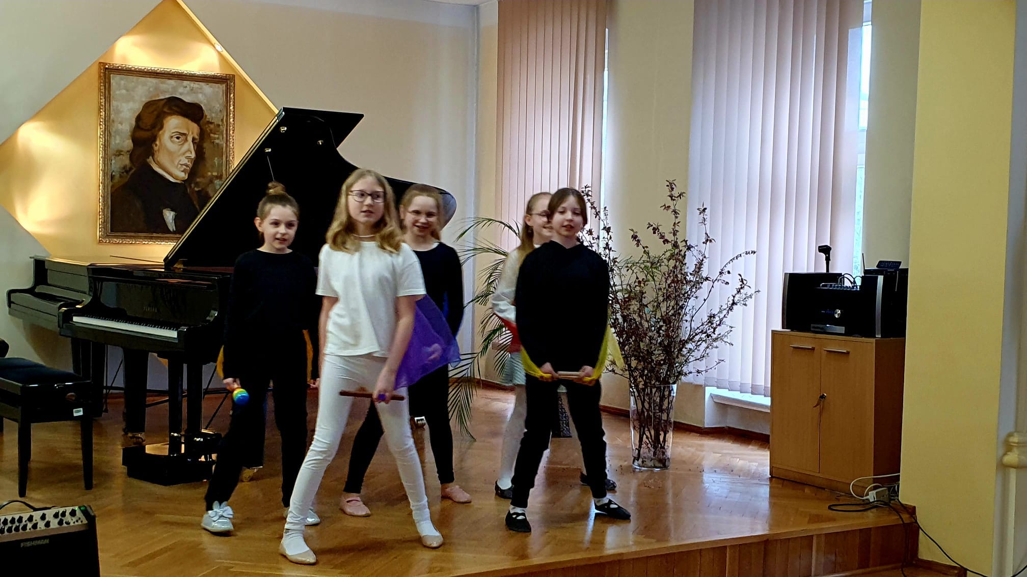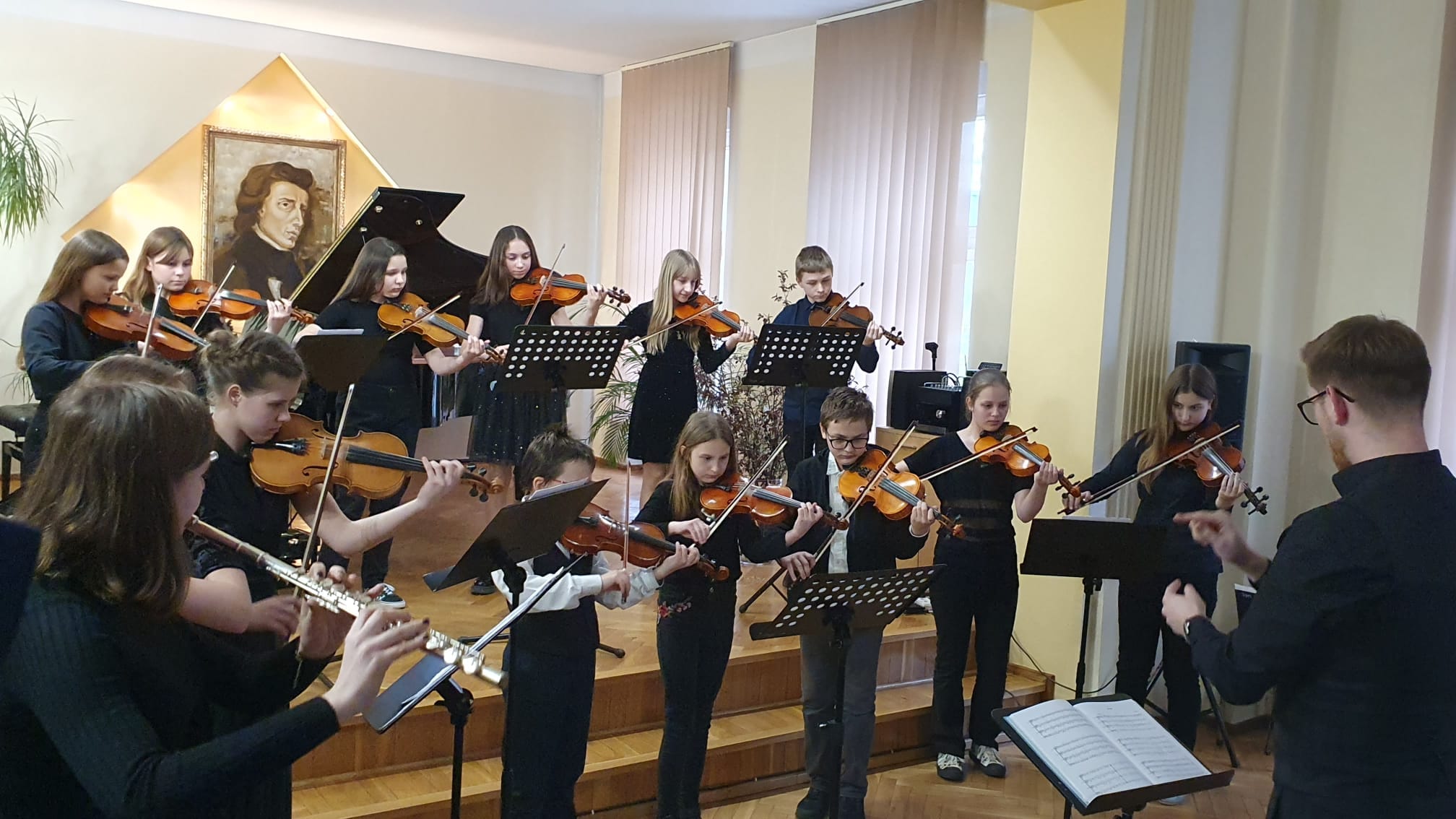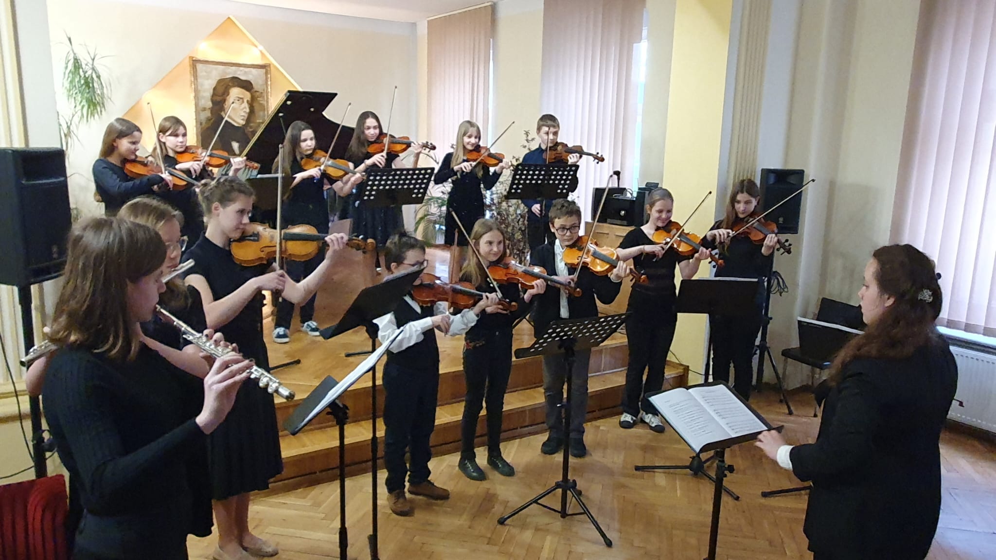Wśród wykonawców znalazły się m.in. duety skrzypcowe, zespół skrzypcowo-unisonowy, duet i trio fletowe, duety fortepianowe (w tym duet ,,Młode Wilki”), zespół fortepianowy na 6 rąk ,,Bella musica”, trio klarnetowe, duet akordeonowy oraz zespół kameralny "Aniołki Czarliego", w składzie którego znalazł się flet i 3 gitary. Warto również wspomnieć o występie zespołu rytmicznego "Magiczne nutki", który zaprezentował piosenkę oraz efektowny układ choreograficzny pod kierownictwem p. Marzeny Kierzkowskiej. Na uwagę zasługuje także występ Szkolnej Orkiestry Kameralnej, w którym zadebiutowała uczennica Pola Barul jako dyrygentka. Koncert poprowadził p. Witold Kozakowski, który wprowadził publiczność w świat pięknej i subtelnej kameralistyki. Szczególne podziękowania należą się nauczycielom szkoły muzycznej p. Marzenie Kierzkowskiej, p. Krystynie Ślęzak, p. Bożenie Adamskiej, p. Angelice Strzygockiej, p. Przemysławowi Polakowi, p. Natalii Mierzwie, p. Tomaszowi Brusińskiemu, p. Karolinie Lizurej, p. Witoldowi Kozakowskiemu oraz p. Dominikowi Jarockiemu, którzy wykazali ogromne zaangażowanie i poświęcenie w przygotowaniu swoich uczniów do występu. Dziękujemy wszystkim za przybycie na ten wyjątkowy koncert i już nie możemy się doczekać kolejnej okazji, aby podziwiać ich występy.