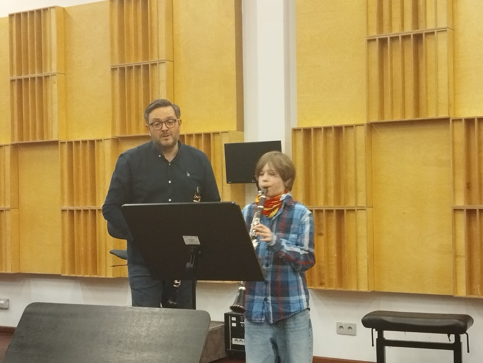 Wit Jędrych uczeń z klasy klarnetu p. Przemysława Polaka zaprezentował swoje umiejętności podczas lekcji pokazowych w ramach Sympozjum Metodycznego "Problemy nauczania w grze na instrumentach dętych, perkusyjnych i akordeonie w szkołach muzycznych I i II stopnia", które odbyło się w dniu 16 marca w Akademii Muzycznej im. Karola Lipińskiego we Wrocławiu.