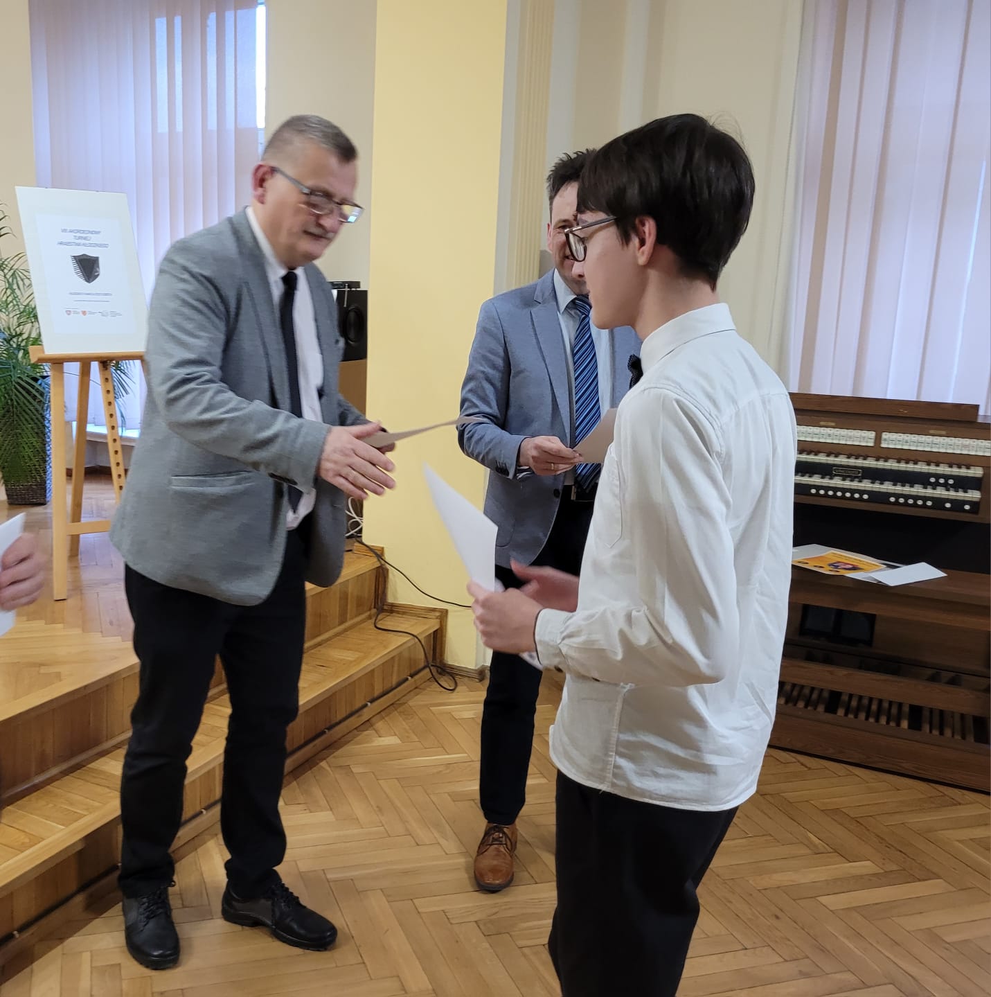 Uczniowie naszej szkoły zdobyli następujące miejsca: Tomasz Brzezicki zajął III miejsce w kategorii I, Gabriel Charęza i Wiktor Styrkacz zajęli III miejsce w kategorii II, Tymoteusz Bartlewski zdobył I miejsce w kategorii IV, a Oskar Gałęski zajął II miejsce w tej samej kategorii. Oprócz tego wyróżnienia otrzymali Alan Janowski oraz Piotr Bodzek. W kategorii dorosłych pierwsze miejsce zdobył Józef Kmita grający na akordeonie elektronicznym. Akordeonowy turniej to nie tylko okazja do pokazania swojego talentu, ale także do zdobycia nowych doświadczeń i poznania innych pasjonatów tego instrumentu. Konkurs umożliwił uczniom i amatorom zaprezentowanie swoich umiejętności w grze na akordeonie przed publicznością oraz zdobycie cennych wskazówek od jurorów. Członkowie Jury podkreślają, że z roku na rok poziom występów uczestników rośnie, co jest dowodem na to, że akordeon cieszy się wciąż dużą popularnością i znajduje wielu entuzjastów wśród młodzieży oraz dorosłych. Turniej jest także okazją do propagowania muzyki akordeonowej oraz do podniesienia kultury muzycznej w naszej okolicy. Gratulujemy naszym laureatom oraz wszystkim uczestnikom konkursu i życzymy im dalszych sukcesów w grze na akordeonie.