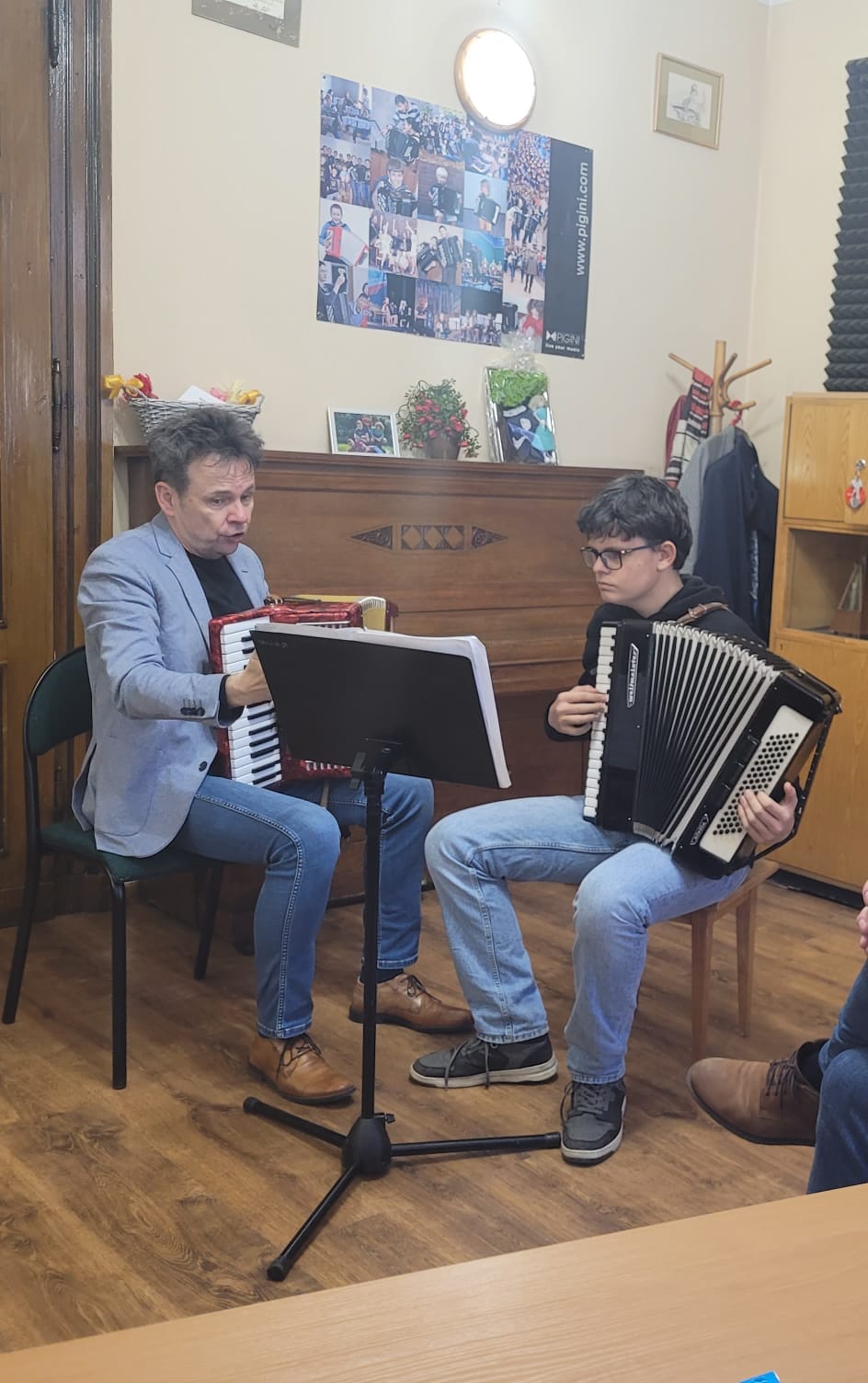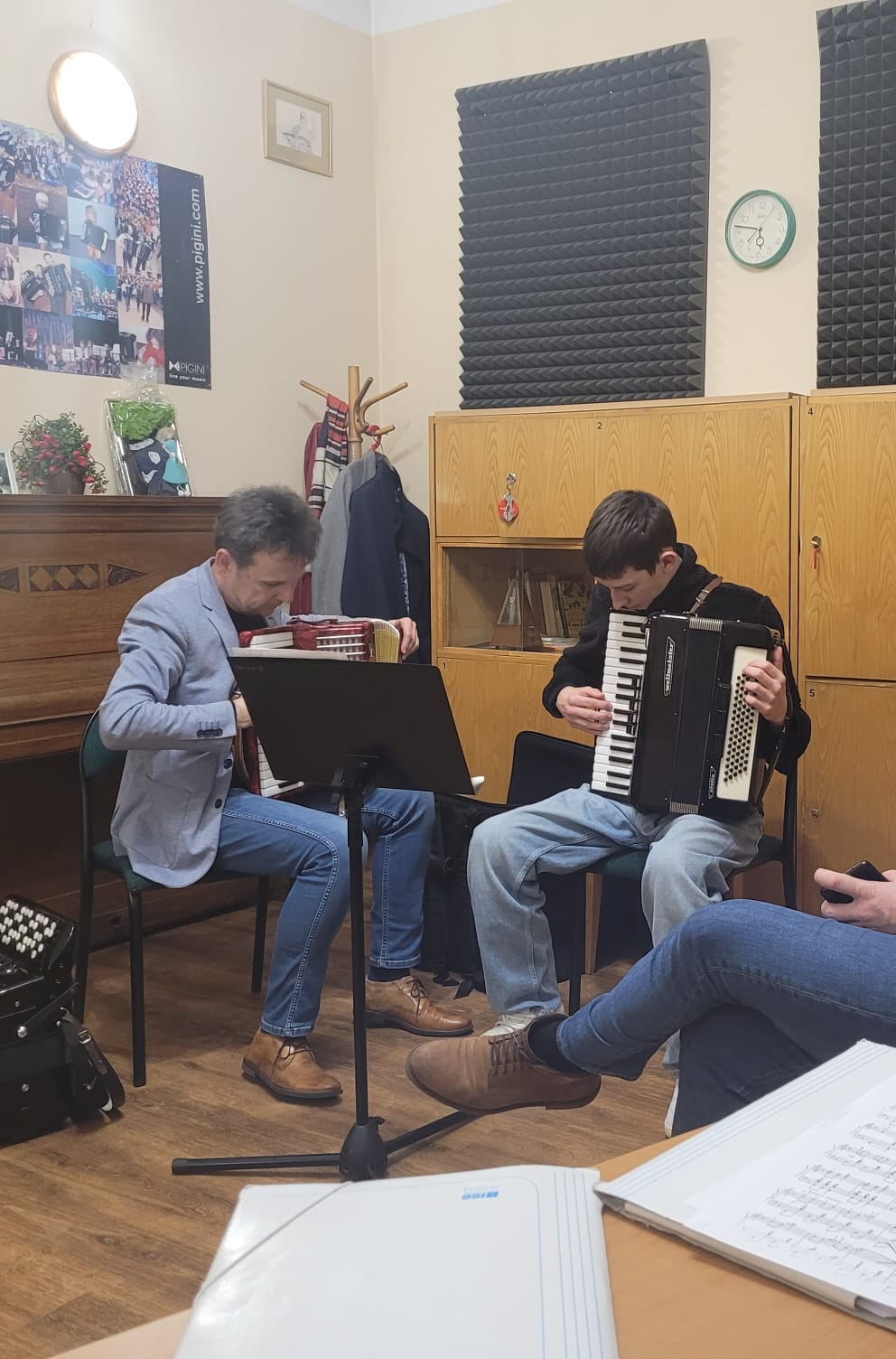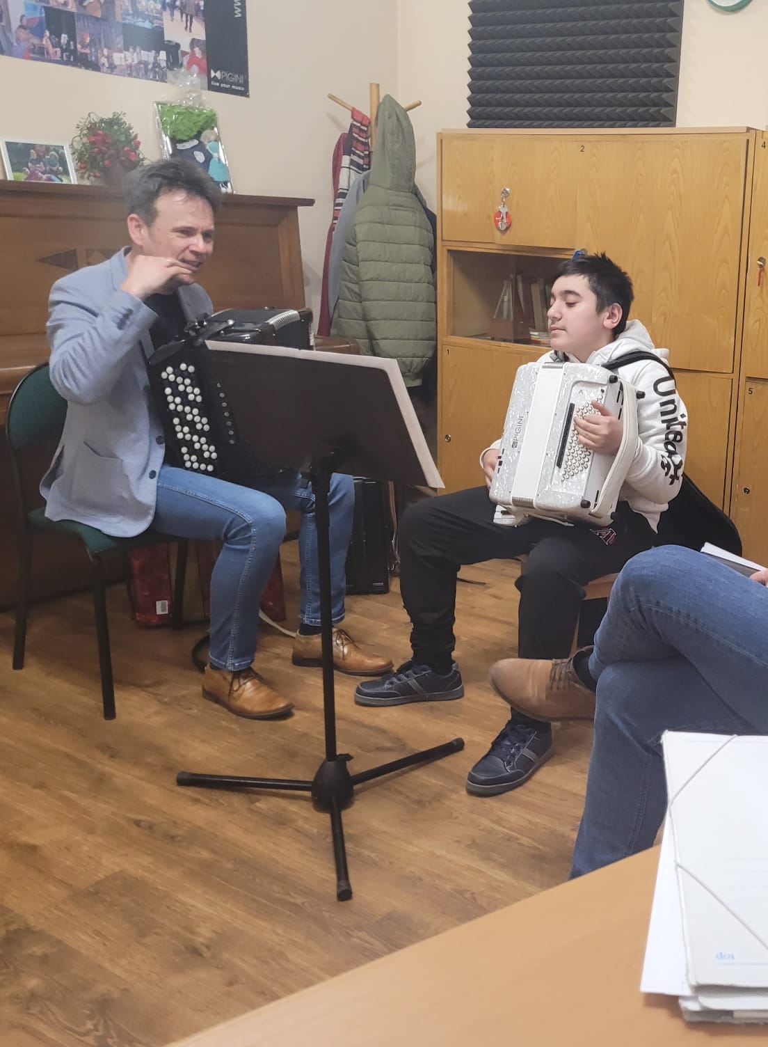 Brali w niej udział uczniowie klasy akordeonu, którzy pracowali pod okiem p. Chołołowicza nad bieżącym repertuarem. Zajęcia były bardzo inspirujące, prowadzący świetnie odwoływał się do wyobraźni uczniów podczas pracy nad interpretacja utworów, dawał wiele merytorycznych rad i przede wszystkim stwarzał bardzo przyjacielską i życzliwą atmosferę.