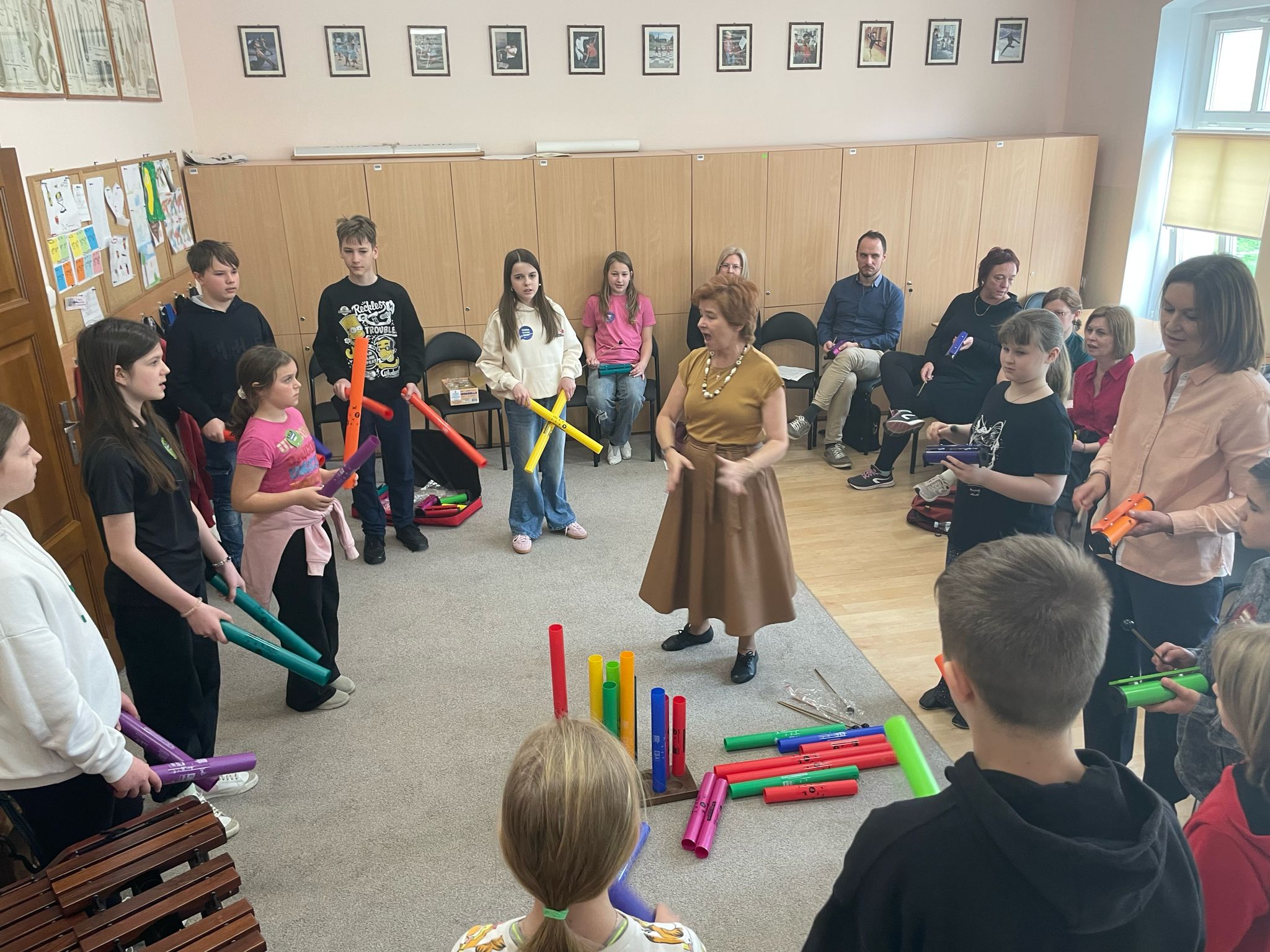 Jest ona współautorką podręczników do kształcenia słuchu z rytmiką. W ramach warsztatów obejrzeliśmy lekcję pokazową z udziałem naszych uczniów a także poznaliśmy wiele kreatywnych rozwiązań do wykorzystania na zajęciach zarówno w klasach młodszych jak i starszych kształcenia muzycznego pierwszego stopnia.