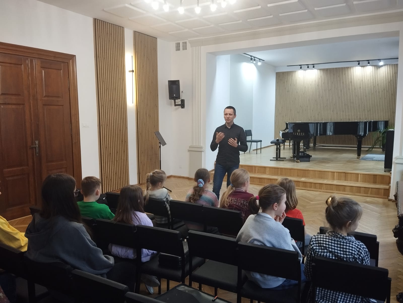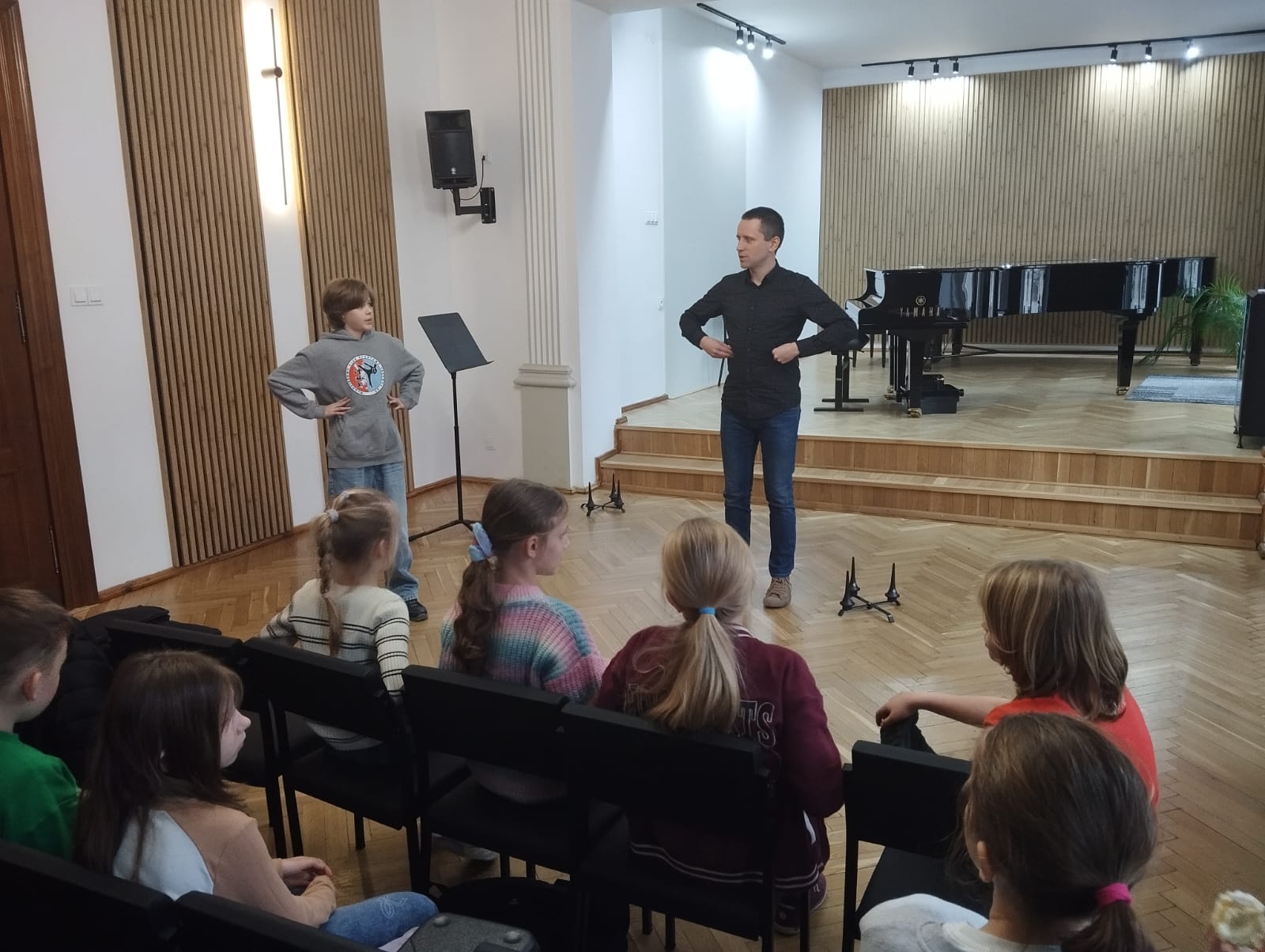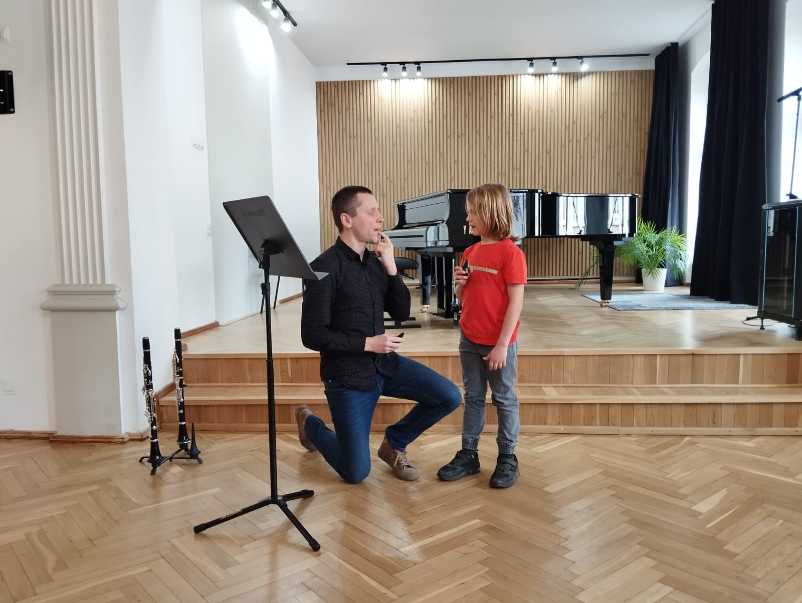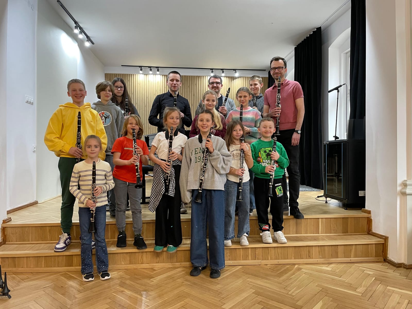 Uczniowie z klasy klarnetu p. Przemysława Polaka mieli okazję pracować nad bieżącym materiałem, otrzymując wiele cennych wskazówek. Warto dodać, że podczas warsztatów gościliśmy również uczniów klasy klarnetu p. Mateusza Maszyńskiego z Państwowej Szkoły Muzycznej I stopnia im. J. Szajny-Lewandowskiej w Oławie. Dzięki współpracy dwóch klas klarnetu uczniowie wzajemnie się integrowali, wspólnie muzykując.