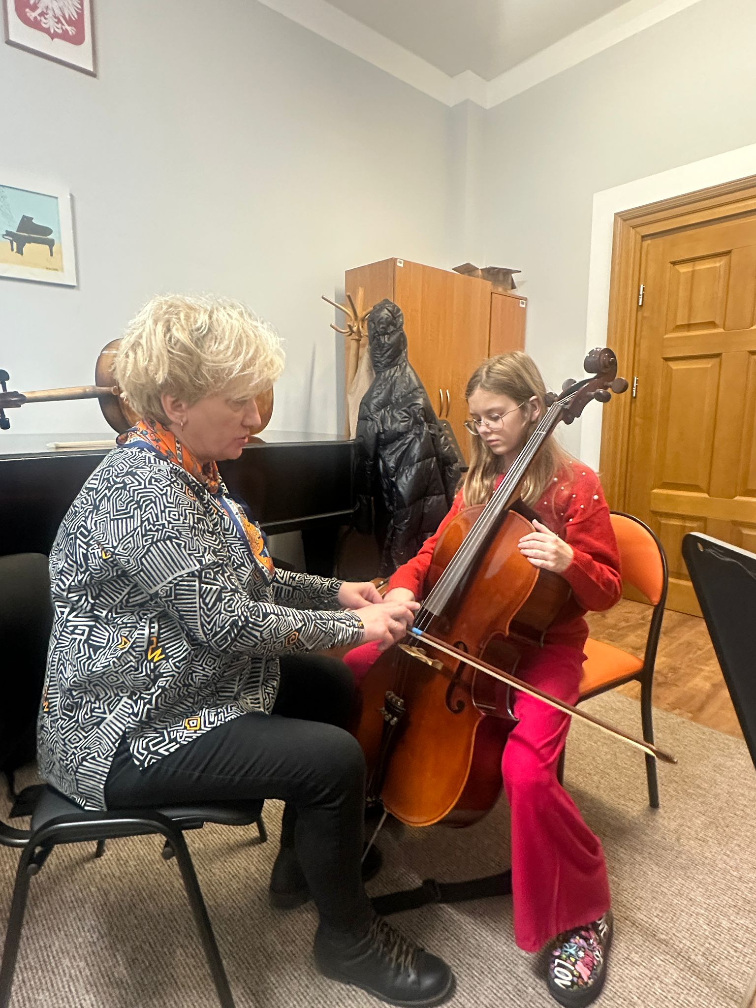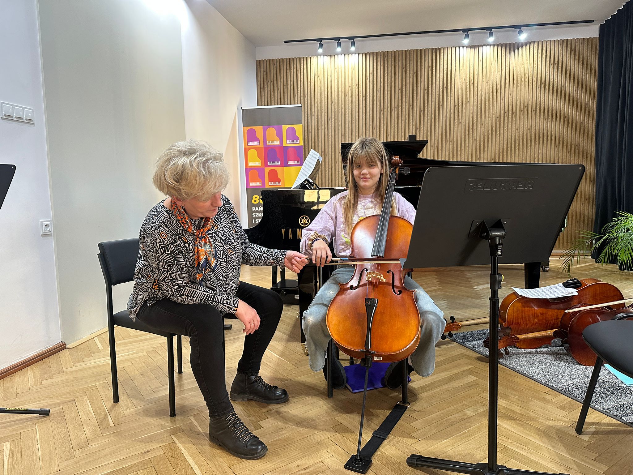 19.11.25 r. odbyły się Warsztaty Wiolonczelowe w klasie wiolonczeli pani Patrycji Machały, które przeprowadziła pani prof. Urszula Marciniec-Mazur.