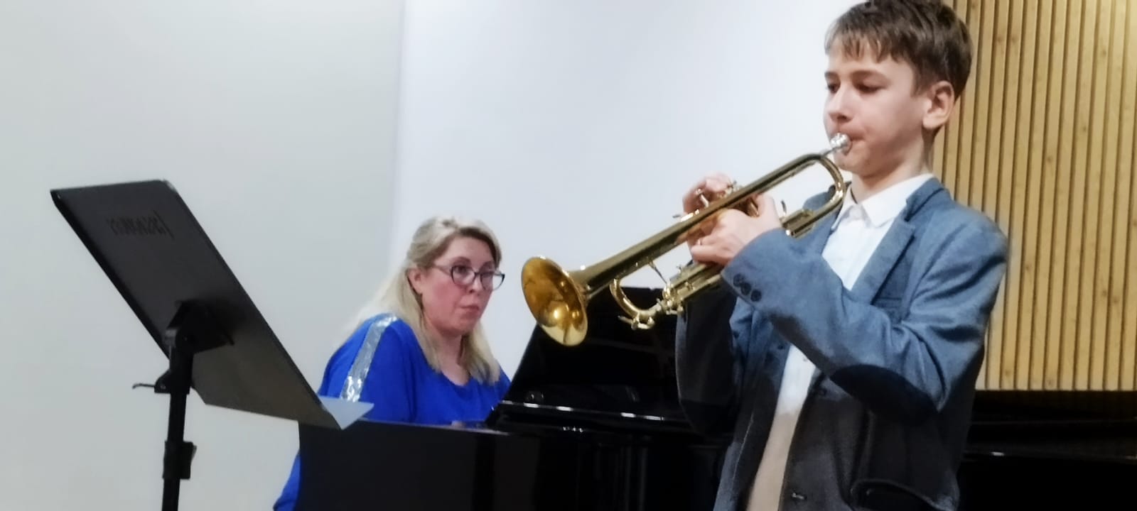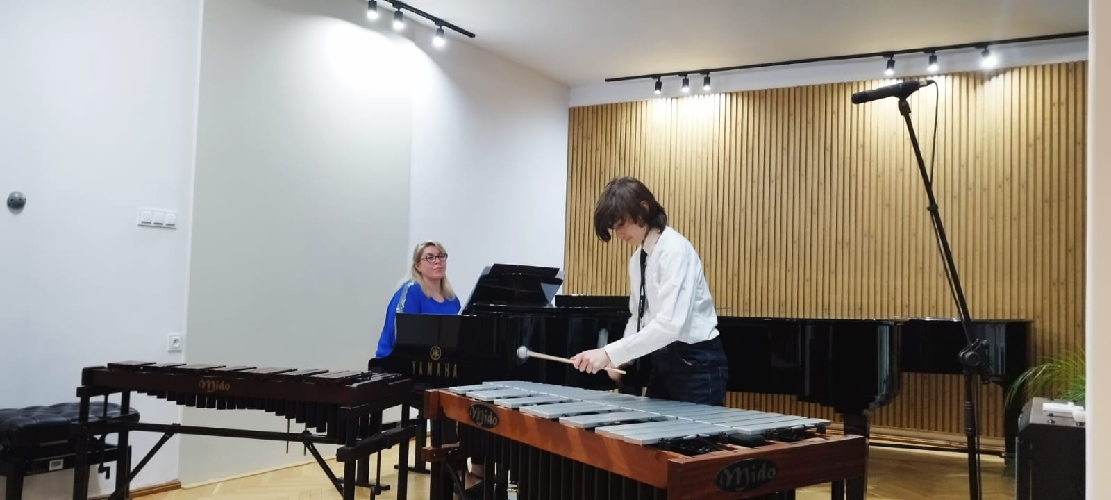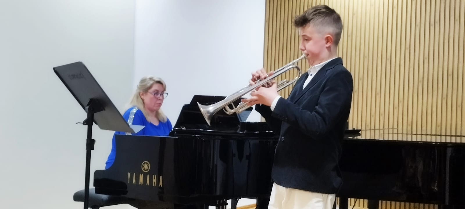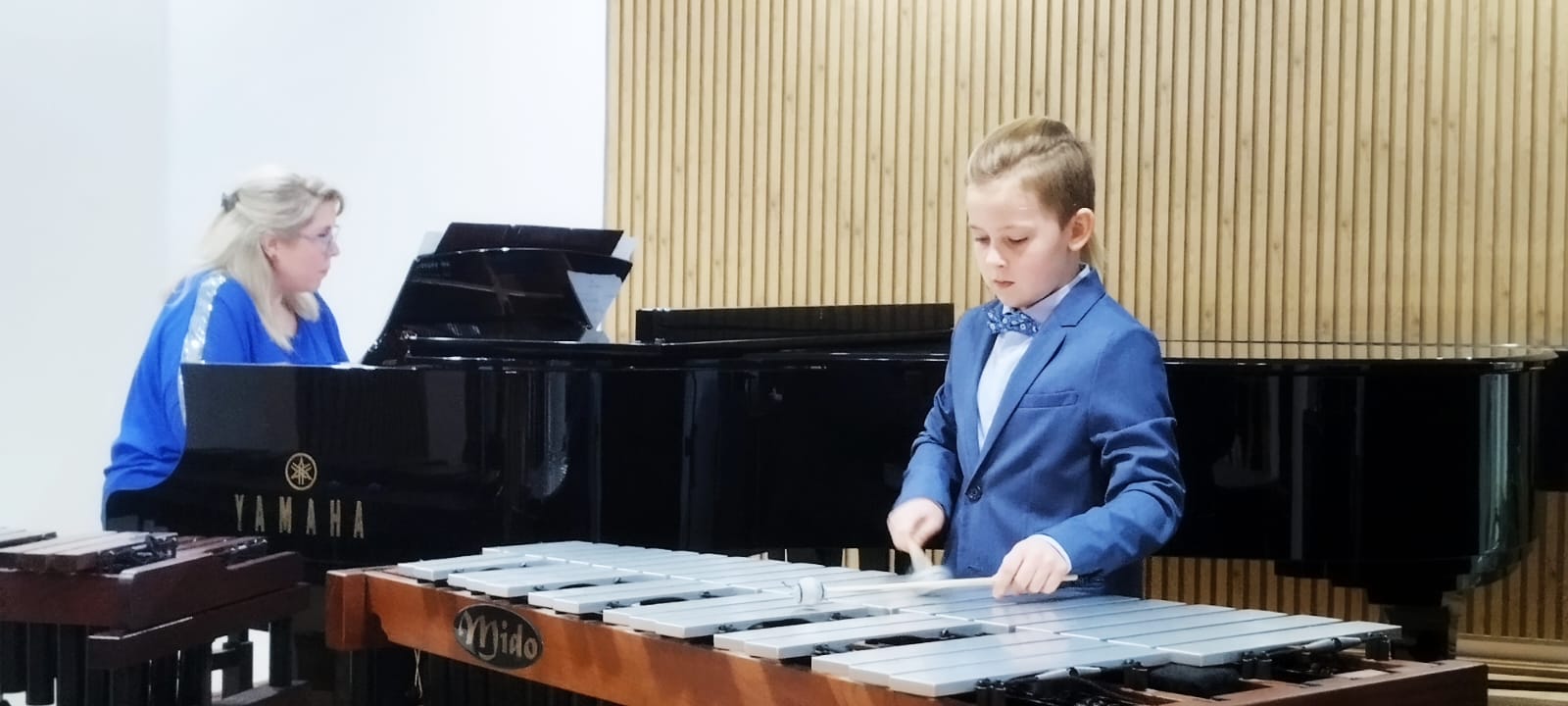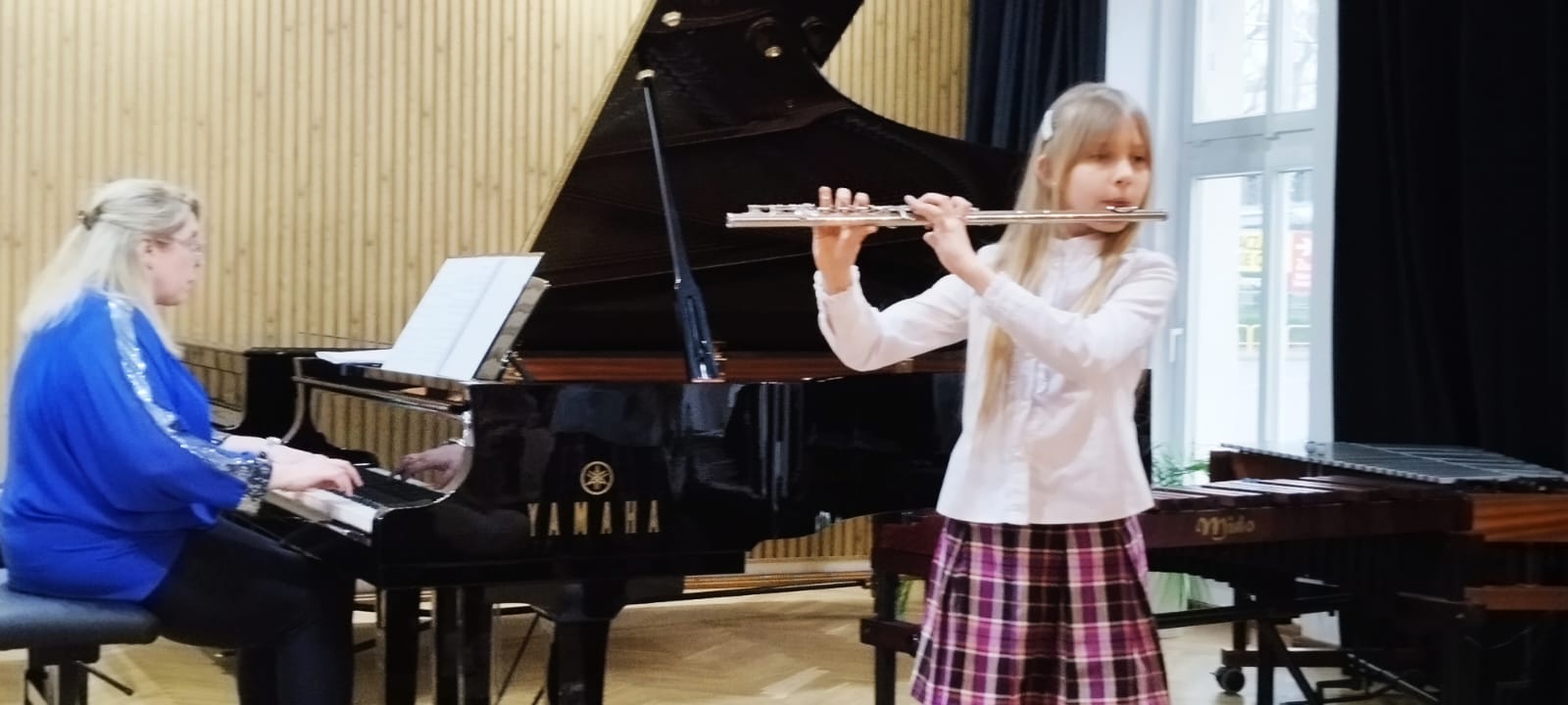 Młodzi wykonawcy spisali się na medal, a odzwierciedleniem tego były gromkie brawa licznie zgromadzonej publiczności. Wszystkim młodym muzykom gratulujemy i już czekamy na majowy koncert, gdzie będą mogli zaprezentować kolejne utwory. Uczniów przygotowali: p. B. Adamska - flet, p. W. Lizurej - trąbka, p. A. Habdas - perkusja, p. I. Yakymets - fortepian. Akompaniowała p. Iryna Yakymets.