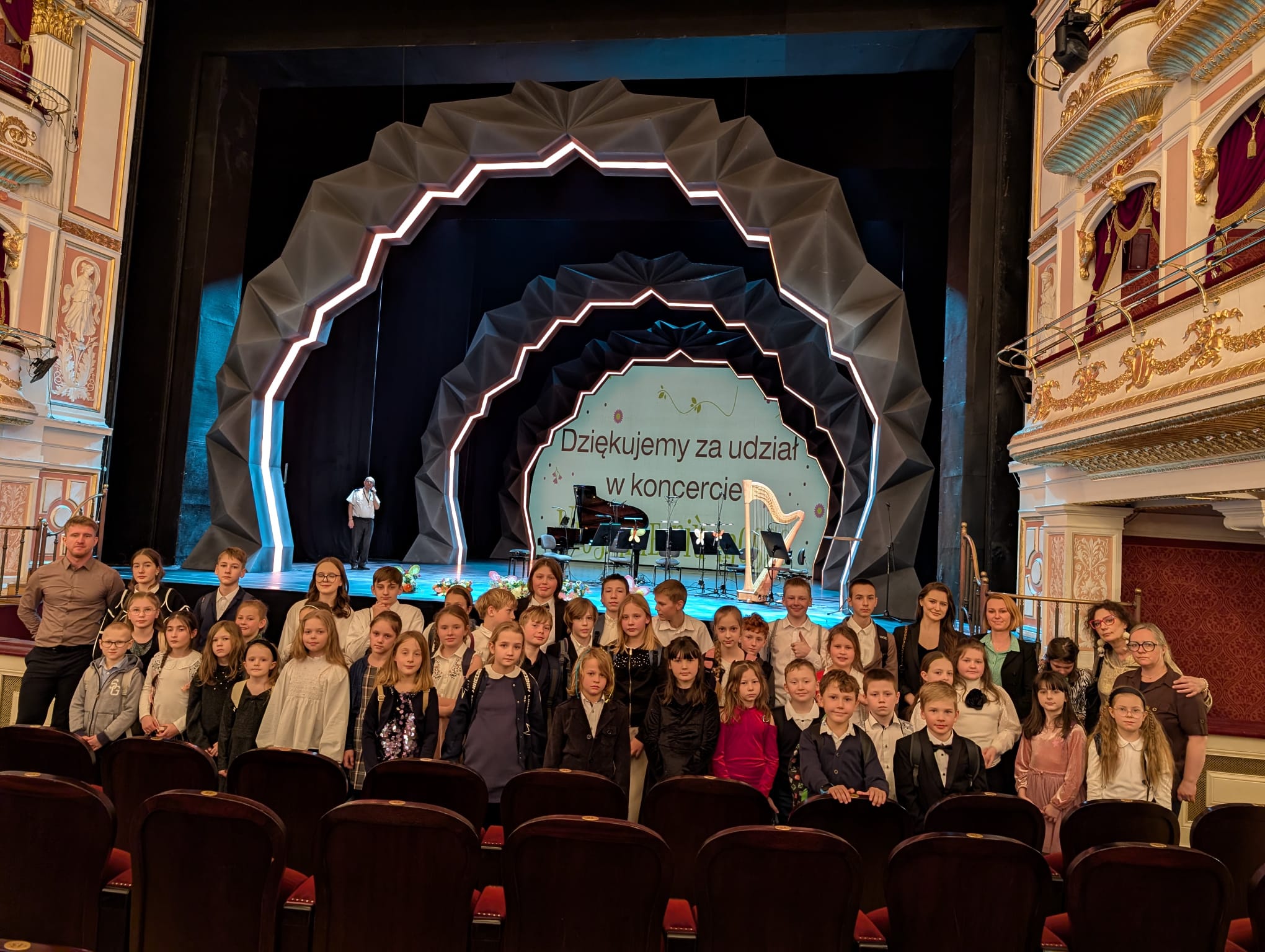 Gmach opery spowity wiosenne słońce i błękitne niebo niczym w Grecji czy Italii. Pełen dziatwy ukulturalnianej szkolnie zewsząd. W tym dzieci nasze kłodzkie. Z całej operowej sali 2 rzędy JEDYNYCH umiejących słuchać koncertu. Obserwując całokształt wydarzenia stwierdzam iż 15 minut nawet koncentracji nie było na sali a koncert piękny wiosenny z harfą, chórem dziecięcym, solistami, co chwilkę zmiana sytuacji, stroje, jednym słowem działo się - nie nuda. Jedzenie w trakcie , picie z butelek, rozmowy półgłosem brak reakcji opiekunów wokoło. Zatem - mamy naprawdę dobre efekty wychowywania naszej dziatwy muzycznej. A w grupie naszej i 6 latki i 12 latki. Umieją słuchać muzyki naprawdę. Bo tu nie chodzi mi o stopień grzeczności ( bo rozrabiające asy i w naszej szkole są - i dobrze ) tylko o uważnośc wrażliwość, zainteresowanie, umiejętność koncentracji. I taka piękna historia na koniec. Ustawiamy się do zdjęcia po koncercie w tej pięknej scenerii złota, purpury i balkonów gdy jedna z dziewczynek zaczyna rozpaczliwie szlochac. Szybki mój desant, tryb ratownik się włącza i pytam: Coś cie boli ? Zgubiłaś coś? Ktoś Ci zrobił przykrość? Kręci głową że nie i nie przestaje płakać. Biorę ją na bok przytulam i słyszę szept " Proszę Pani ja nie płaczę z jakiegoś powodu - tylko - tutaj jest tak PIĘKNIE!!!" Łzy mi w oczach stanęły. Kurtyna. Notowała - Kasia Mąka.