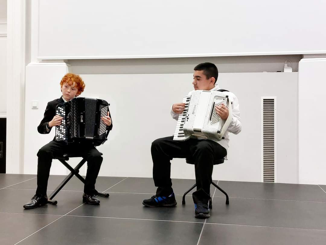 Wydarzenie to zostało uświetnione przez akordeonistów z klasy akordeonu Tomasza Brusińskiego: Wiktora Styrkacza i Gabrysia Charęze, którzy zaprezentowali się grając solo oraz w duecie. Gratulujemy naszym akordeonistom bardzo dobrego występu!