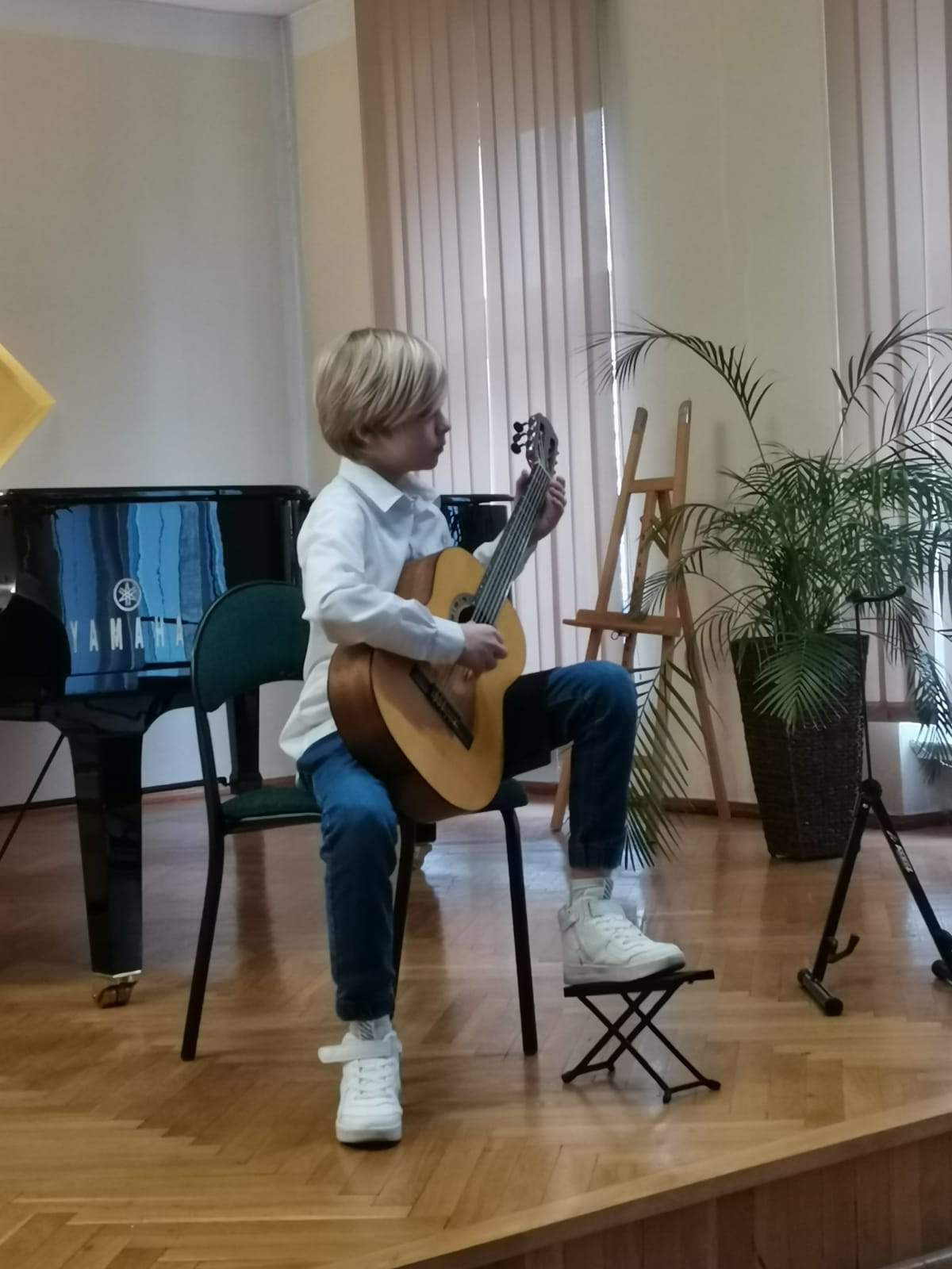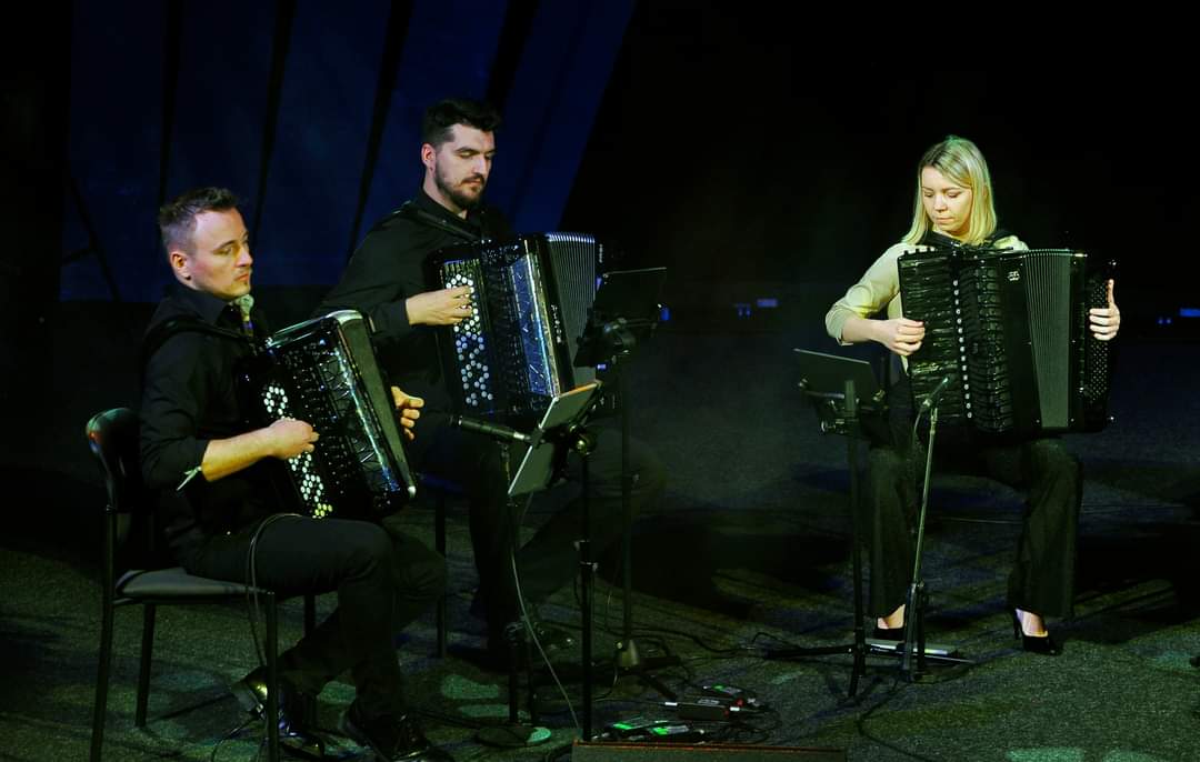 Tradycyjnie na początku koncertu prezentowani byli młodzi akordeoniści z naszej szkoły. Tym razem wystąpił kwintet w składzie Gabryś Charęza, Tymoteusz Machoś, Alan Janowski, Tomasz Brzezicki i Wikotor Styrkacz. Uczniowie Ci w poprzednim tygodniu wzięli udział w IX Akordeonowym Turnieju Hrabstwa Kłodzkiego i czwórka z nich została laureatami.