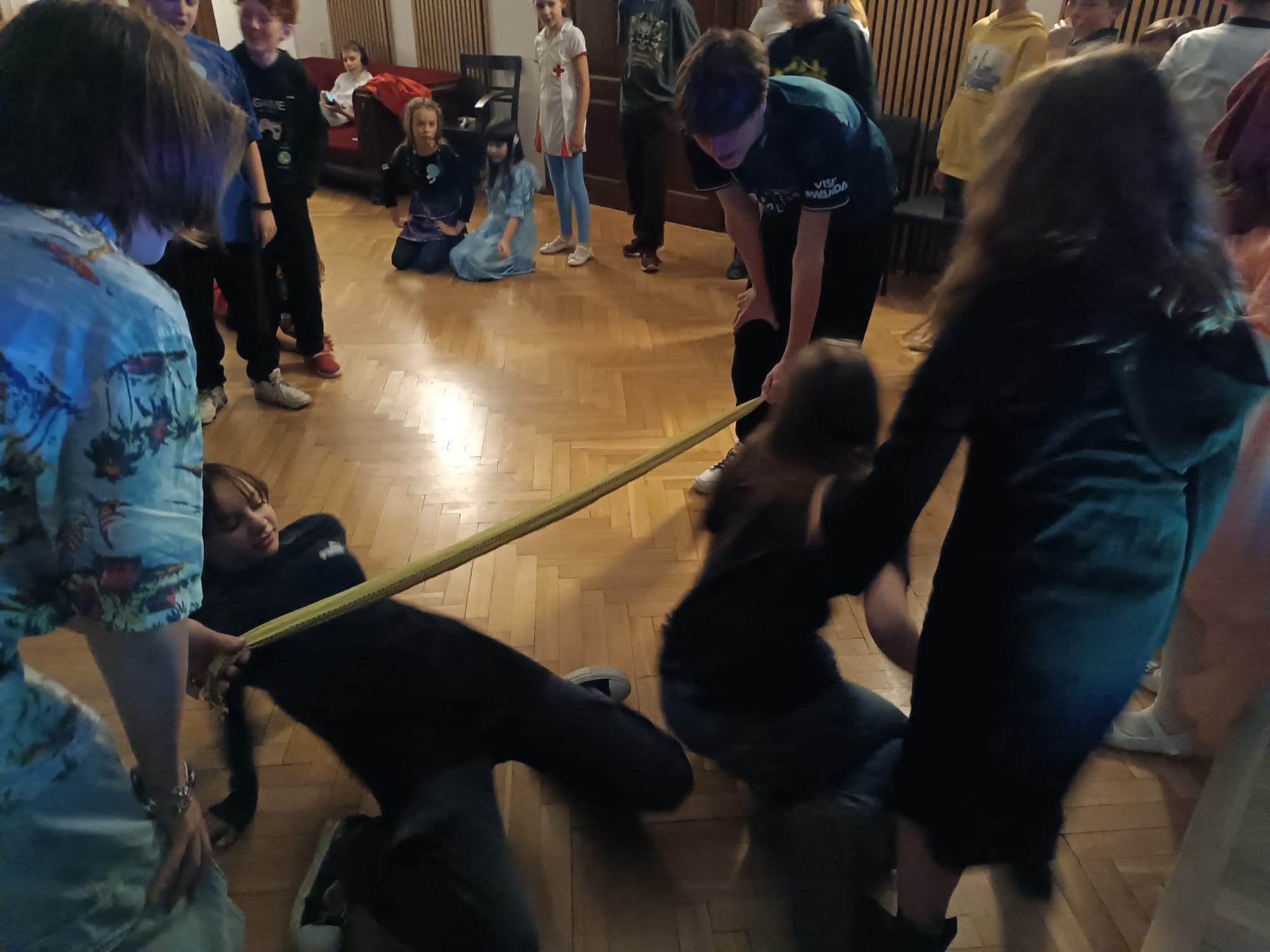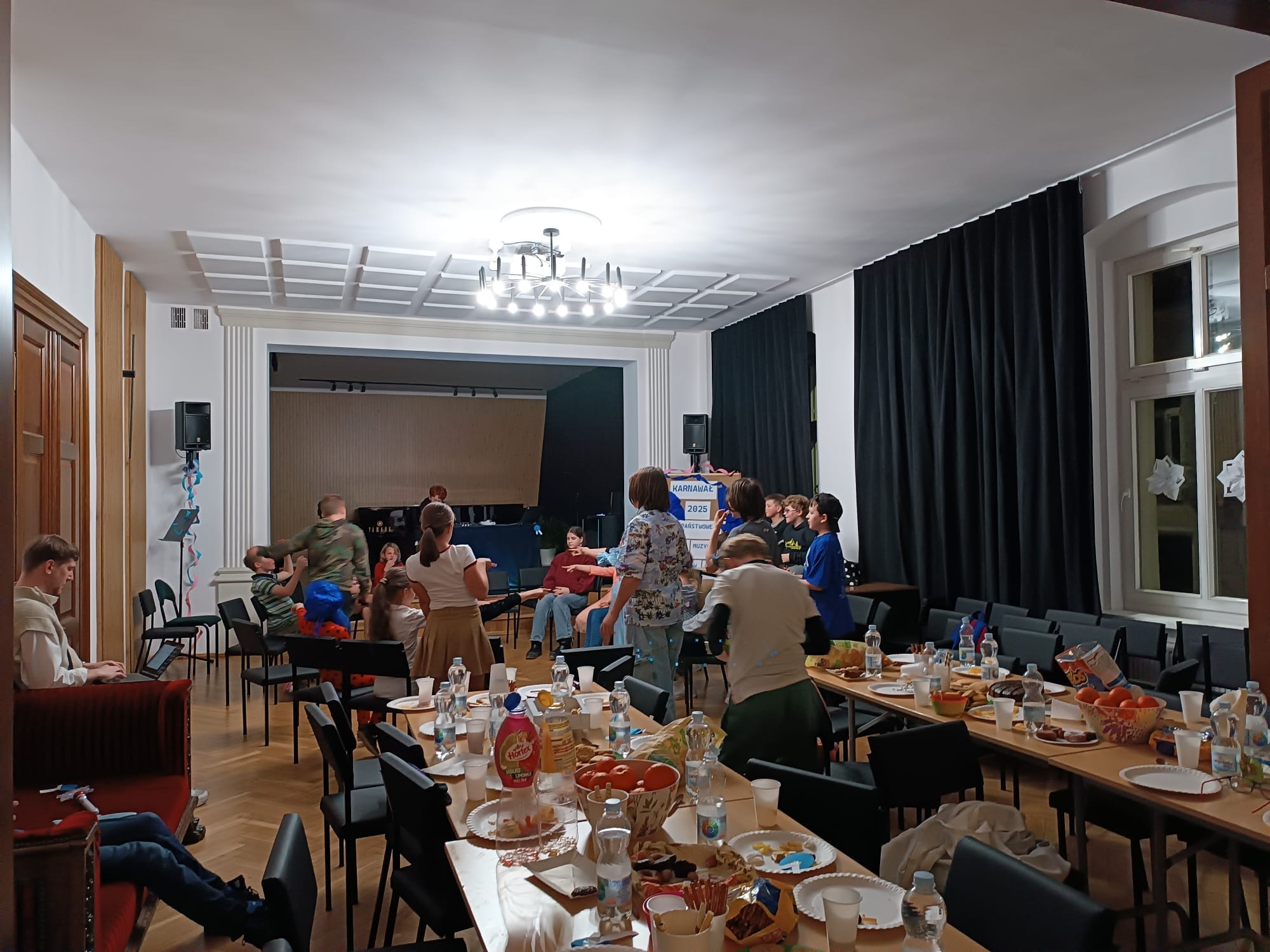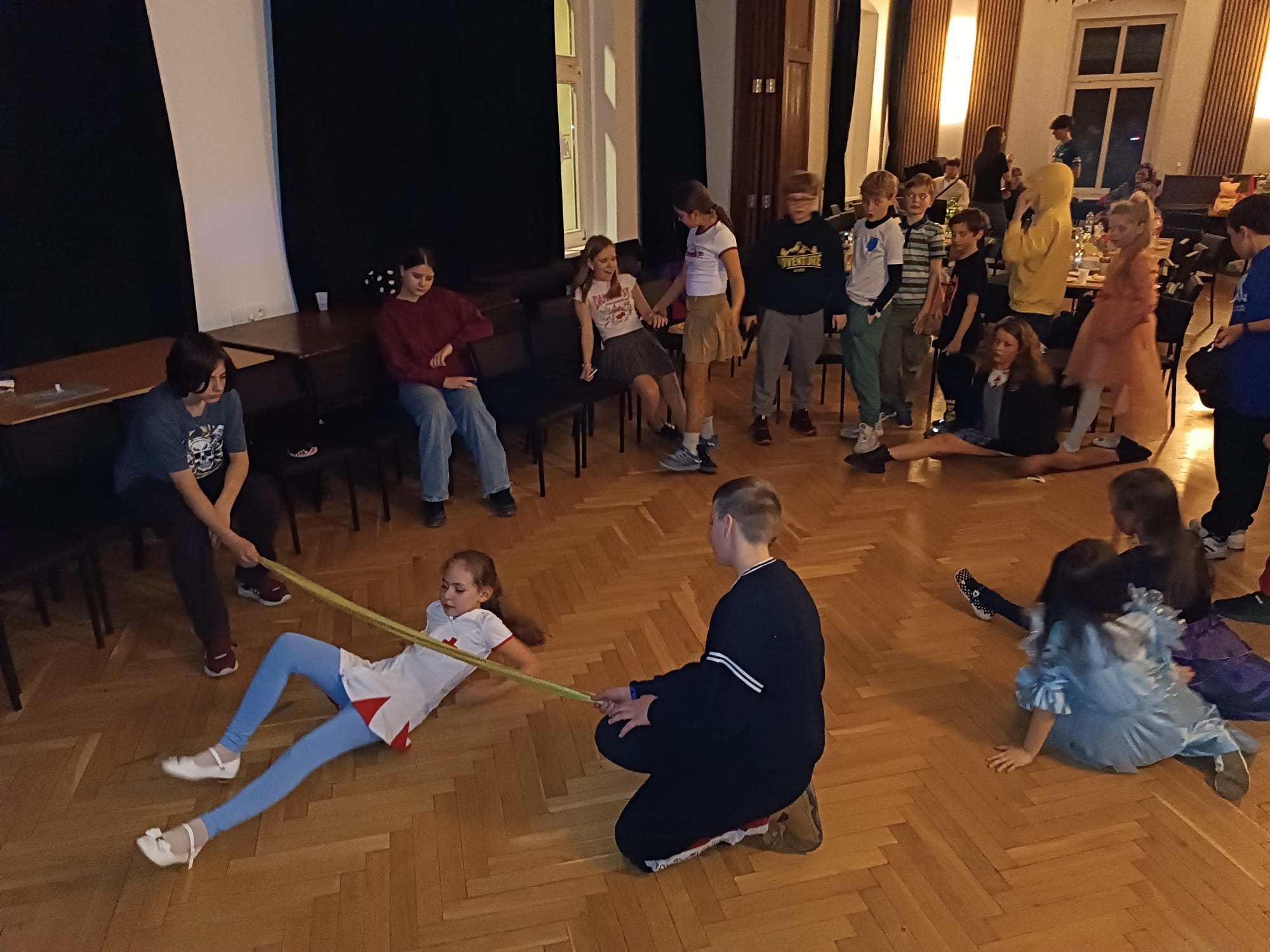 Mimo różnicy wieku między uczniami, wszyscy oni chętnie brali udział w zabawach takich jak: gorące krzesło, przechodzenie pod liną, "mafia", które zostały przygotowane przez Radę Uczniowską w składzie: Jan Jasiński - Przewodniczący Samorządu oraz jego Zastępców: Weronikę Osicką i Gabriela Charęzę. Natomiast do tańca porywała wszystkich muzyka, którą zapewnił niezwykle utalentowany DJ - Mikołaj Szewców, ubiegłoroczny absolwent naszej szkoły. Nie zabrakło również smakołyków na specjalnie przygotowanych stołach, za co dziękujemy serdecznie Rodzicom!
