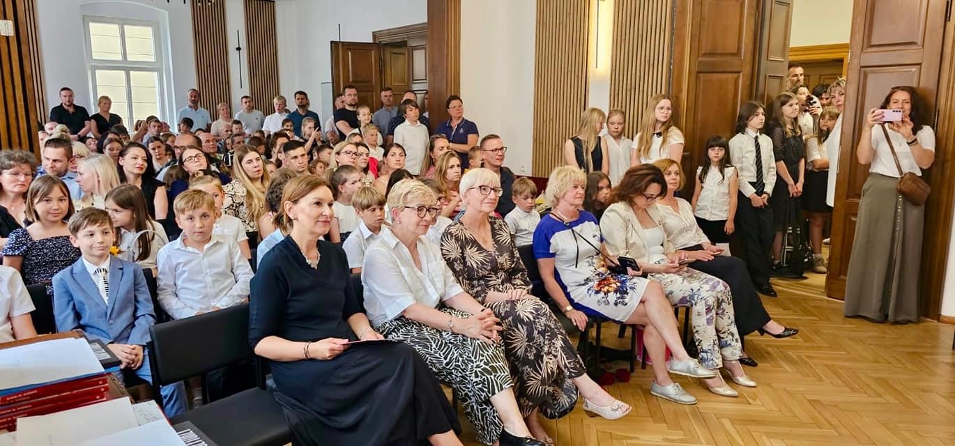 W piątek 27 czerwca 2025 r. pożegnaliśmy wspólnie rok szkolny 2024/2025. Na uroczystym zakończeniu mieliśmy okazję nagrodzić uczniów za ich sukcesy w konkursach ogólnopolskich i międzynarodowych, ale również poznaliśmy laureatów i wyróżnionych uczniów w konkursach szkolnych tj. Konkurs Młodego Melomana, Konkurs Młodego Artysty, Konkurs Muzyczny Influencer oraz Szkolny Konkurs Solfeżowy.
