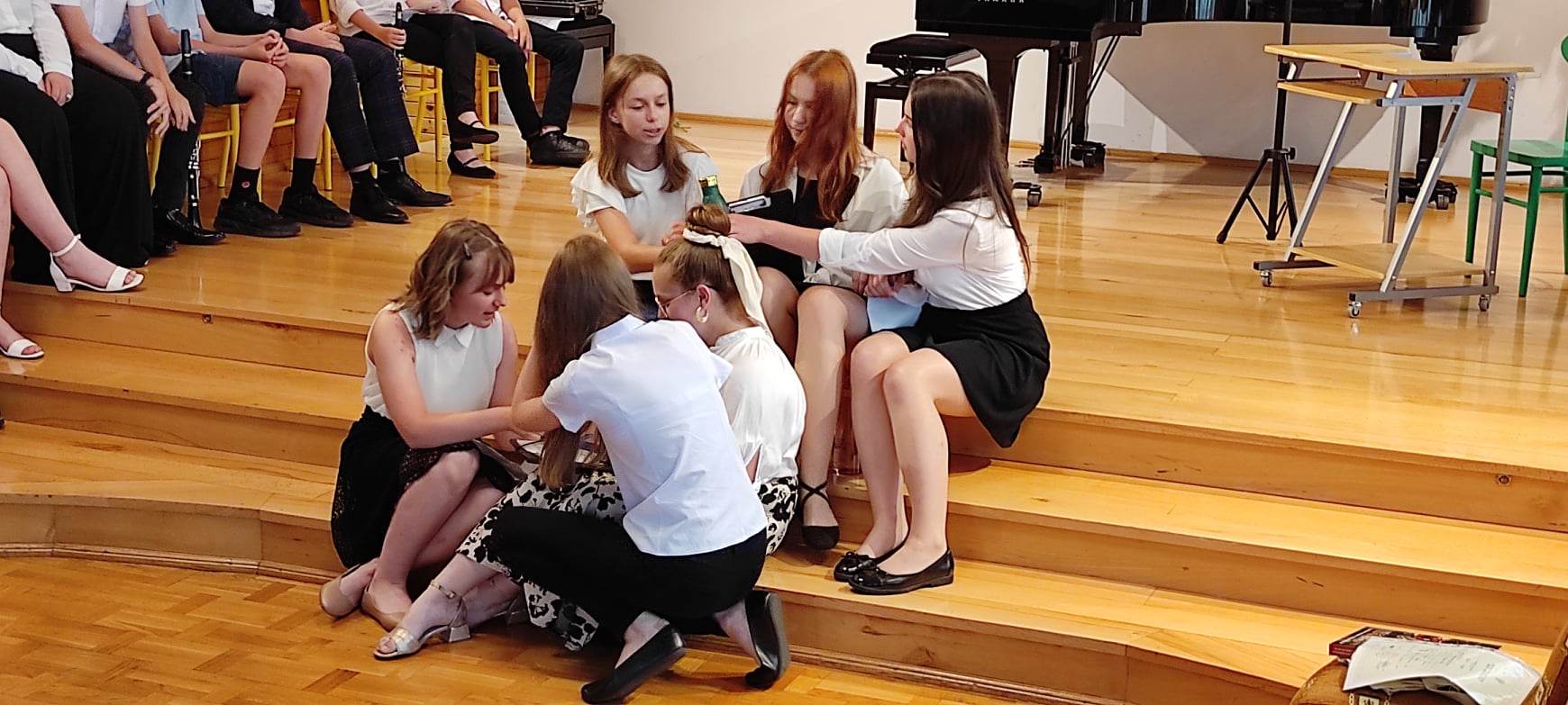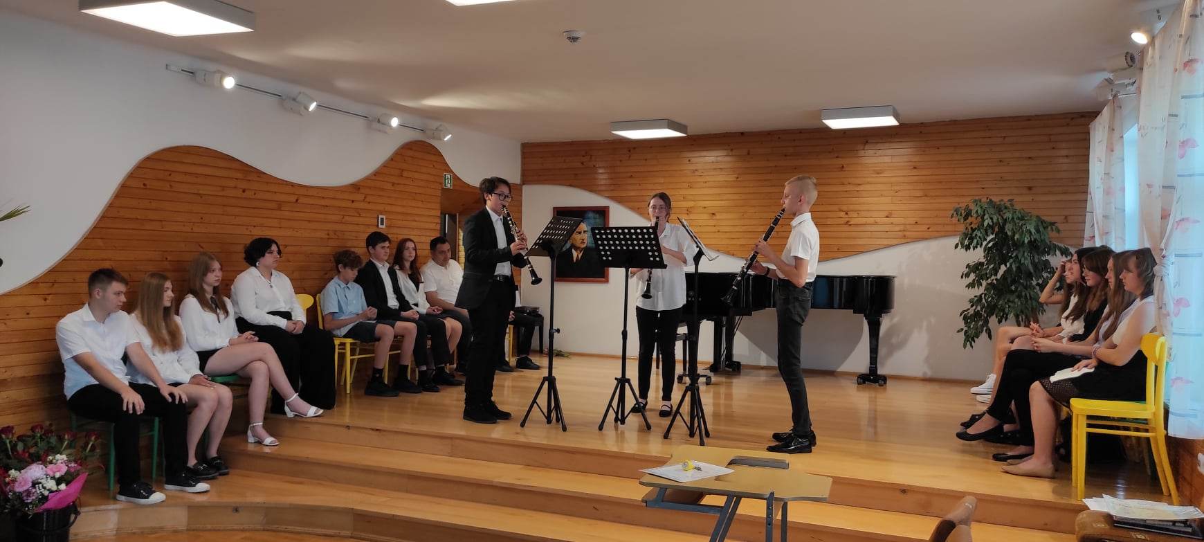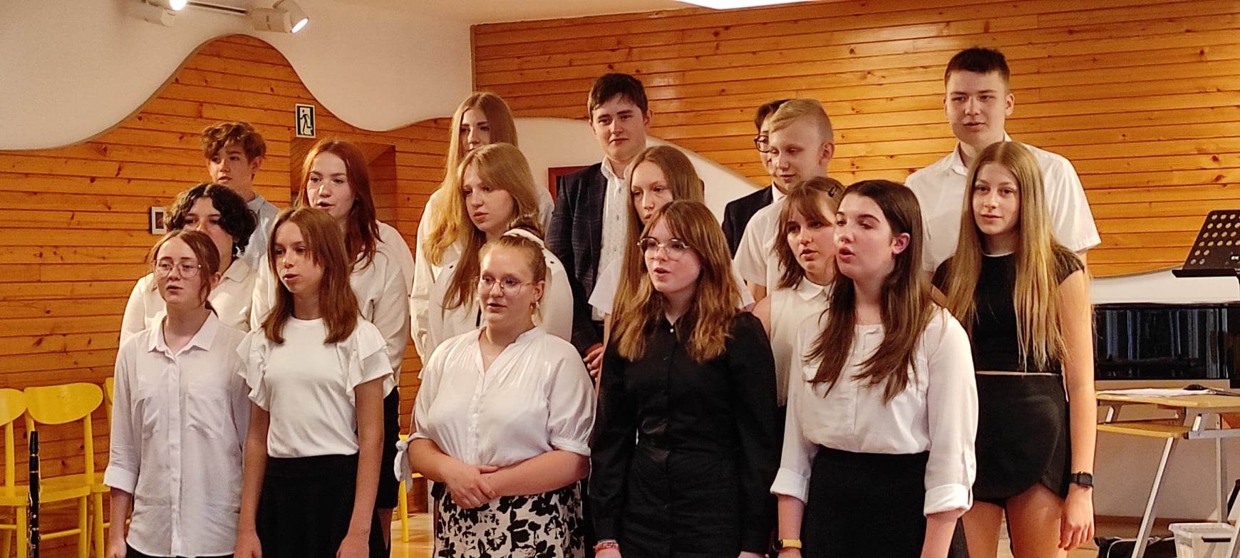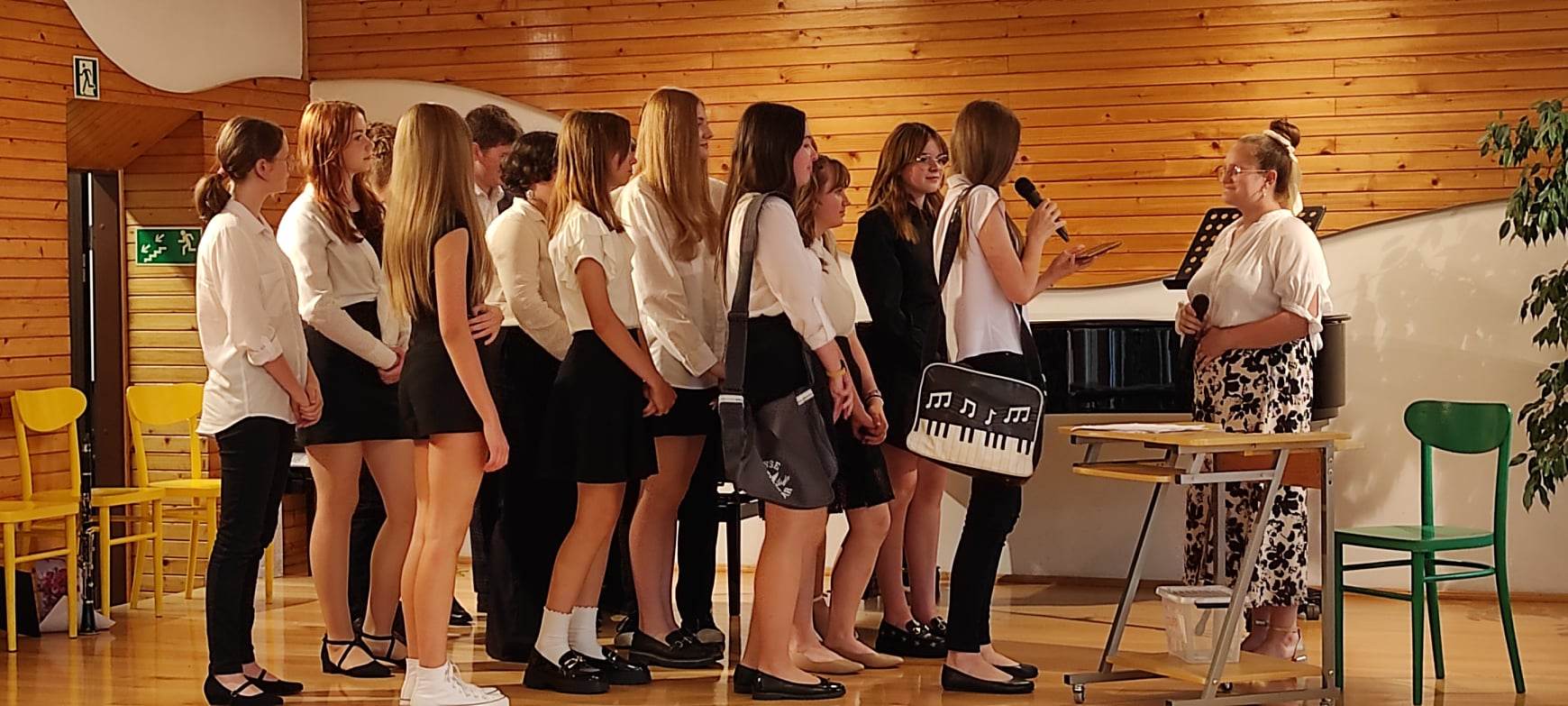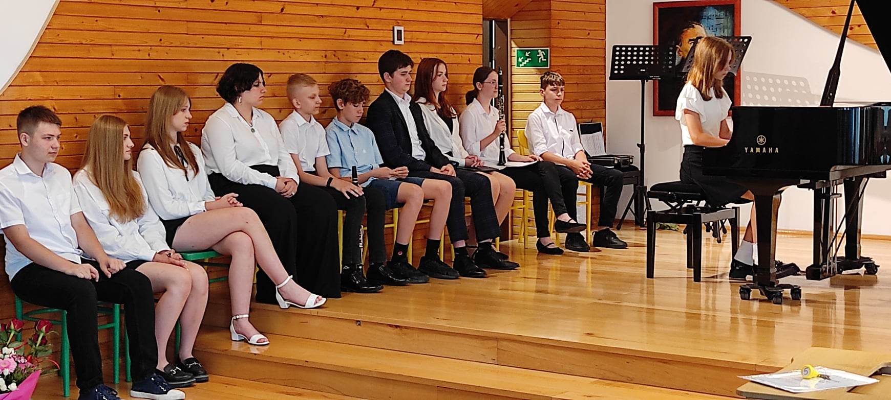 W następnej części odbył się krótki koncert i część artystyczna przygotowana przez dyplomantów pod kierunkiem p. Lidii Ryś, podziękowania uczniów i rodziców oraz wspólne zdjęcie.