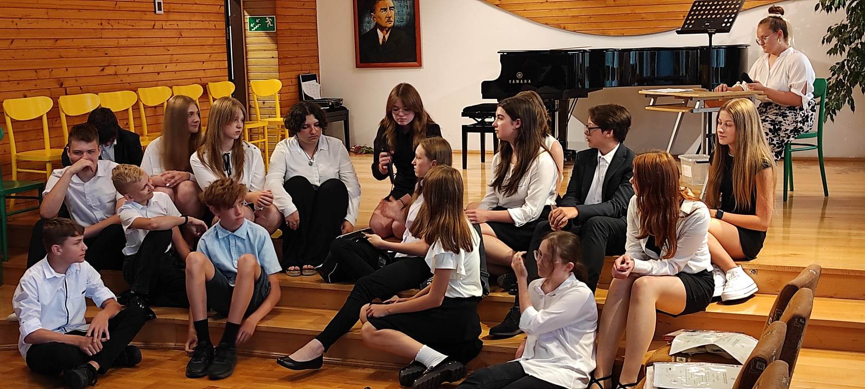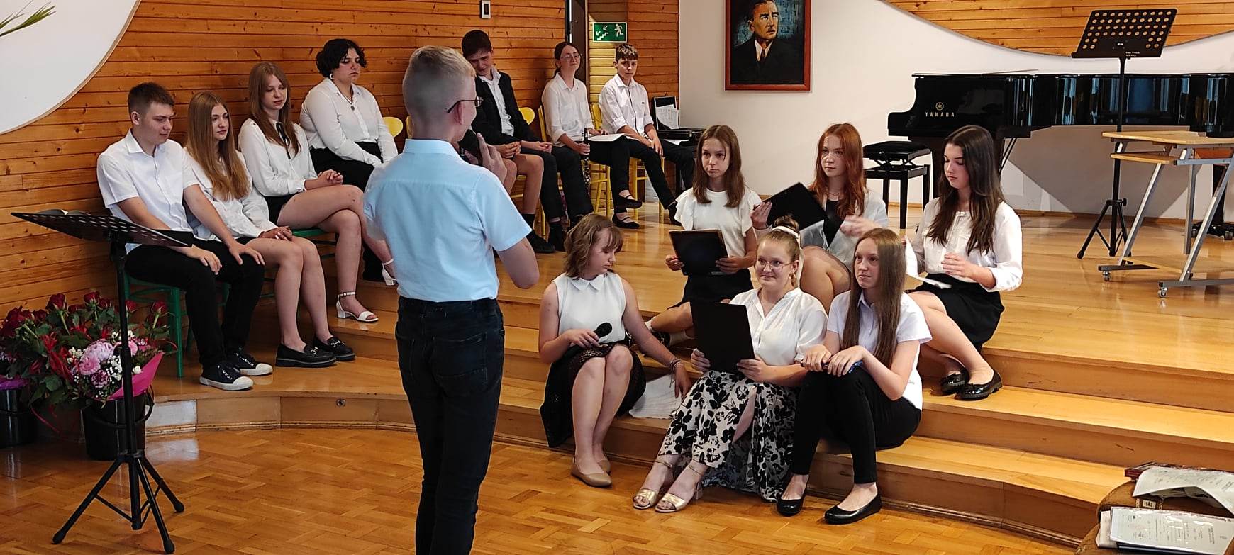 poniżej znajduje się galeria zdjęć z uroczystości przedstawiająca zebranych rodziców i nauczycieli oraz uczniów występujących na koncercie i w części artystycznej.