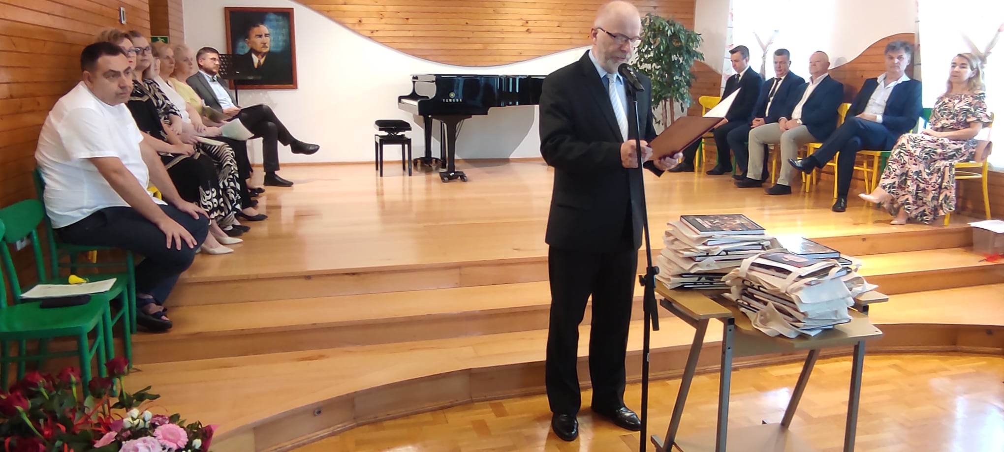 Podczas uroczystości dyrektor szkoły wręczył 20 dyplomantom nagrody ukończenia szkoły oraz nagrody za wysokie wyniki w nauce, a rodzicom listy gratulacyjne. Zwrócił się też do kończących szkołę uczniów m.in. słowami: "Mam nadzieję, że to, czego nauczyliście się tutaj, będzie owocowało w Waszym dalszym życiu. Staraliśmy się wyposażyć Was w podstawowe kompetencje muzyczne: prawidłową umiejętność gry na instrumencie, podstawową wiedzę o muzyce, kompetencje słuchowe, umiejętność pracy w zespole instrumentalnym lub wokalnym (...), kształtowaliśmy u Was wrażliwość muzyczną, estetyczną, systematyczność i odpowiedzialność za podejmowane działania."