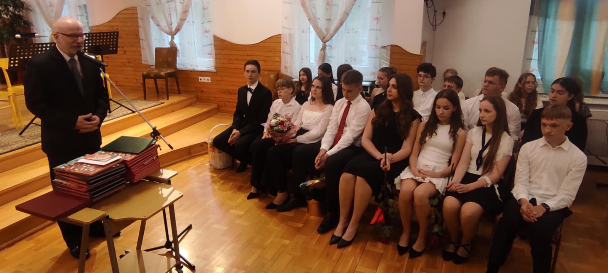 25 czerwca 2025 r. odbyła się akademia z okazji ukończenia szkoły. Uczniowie otrzymali nagrody ukończenia szkoły, nagrody za wysokie wyniki w nauce oraz dyplomy za działalność artystyczną. Rodzice otrzymali listy gratulacyjne. Następnie wysłuchaliśmy krótkiego koncertu oraz obejrzeliśmy część artystyczną przygotowaną przez dyplomantów pod kierunkiem p. Mai Gralińskij i p. Lidii Ryś. Uroczystość zakończono wspólnym świętowaniem.
