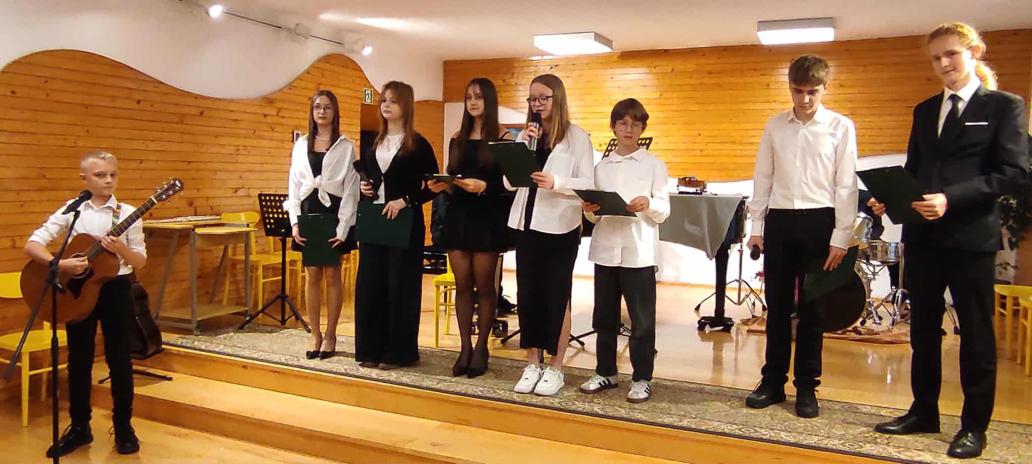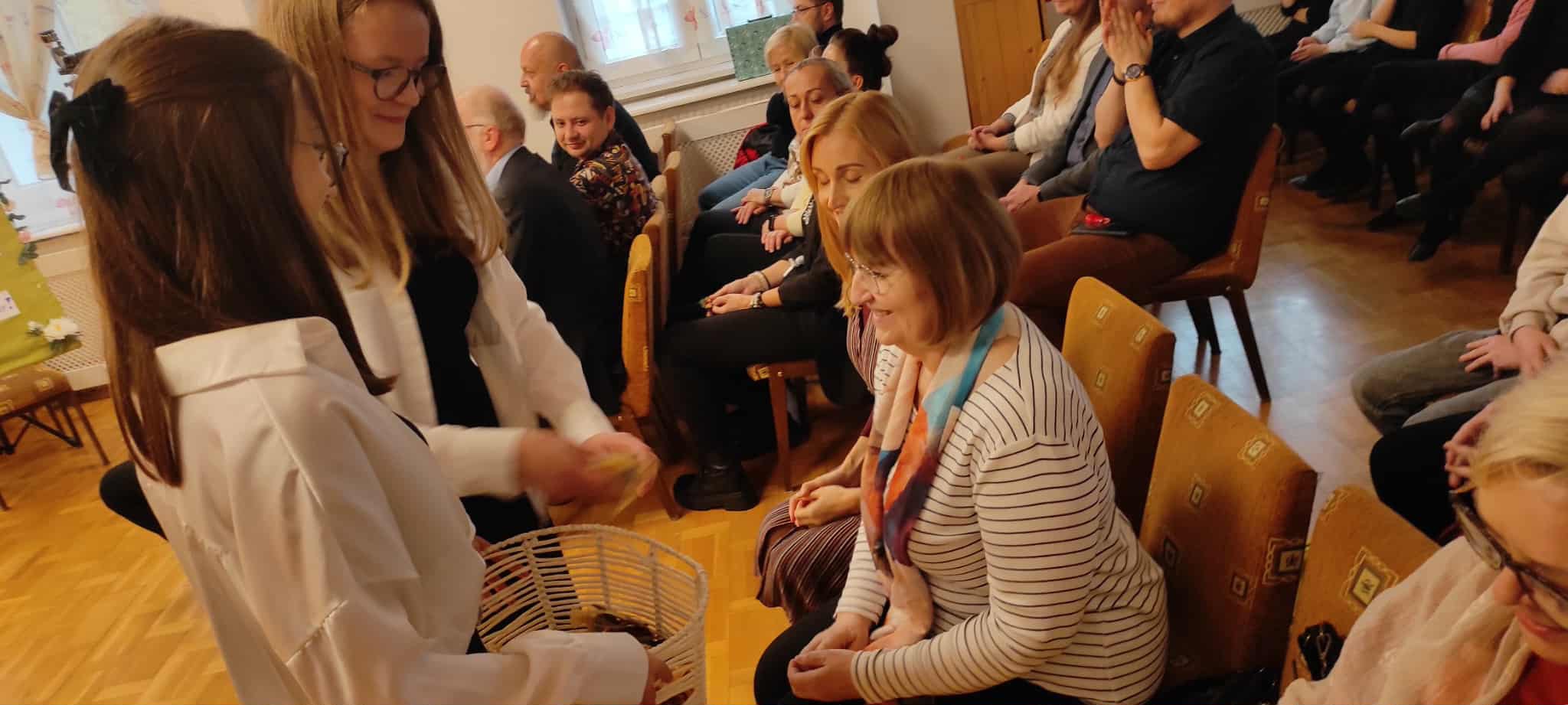 W dniu 16.10.2025 odbyła się w auli szkoły uroczysta akademia z okazji Dnia Edukacji Narodowej. Widownię wypełniła liczna publiczność, uczniowie, rodzice i przede wszystkim nauczyciele i pracownicy szkoły - bohaterowie tego dnia. W podziękowaniu za ich serce, naukę, opiekę i trud Samorząd Uczniowski przygotował krótką część artystyczną. Swoją wdzięczność uczniowie wyrazili poprzez piosenki i teksty literackie, poważnie i z nutką humoru. W drugiej części spotkania głos zabrał dyrektor p. Marek Kłaniecki. Podziękował nauczycielom i wszystkim pracownikom szkoły za ich pracę i zaangażowanie wręczając nagrody i dyplomy uznania. Odczytał również list od Ministry Kultury i Dziedzictwa Narodowego skierowany właśnie na tę okazję.