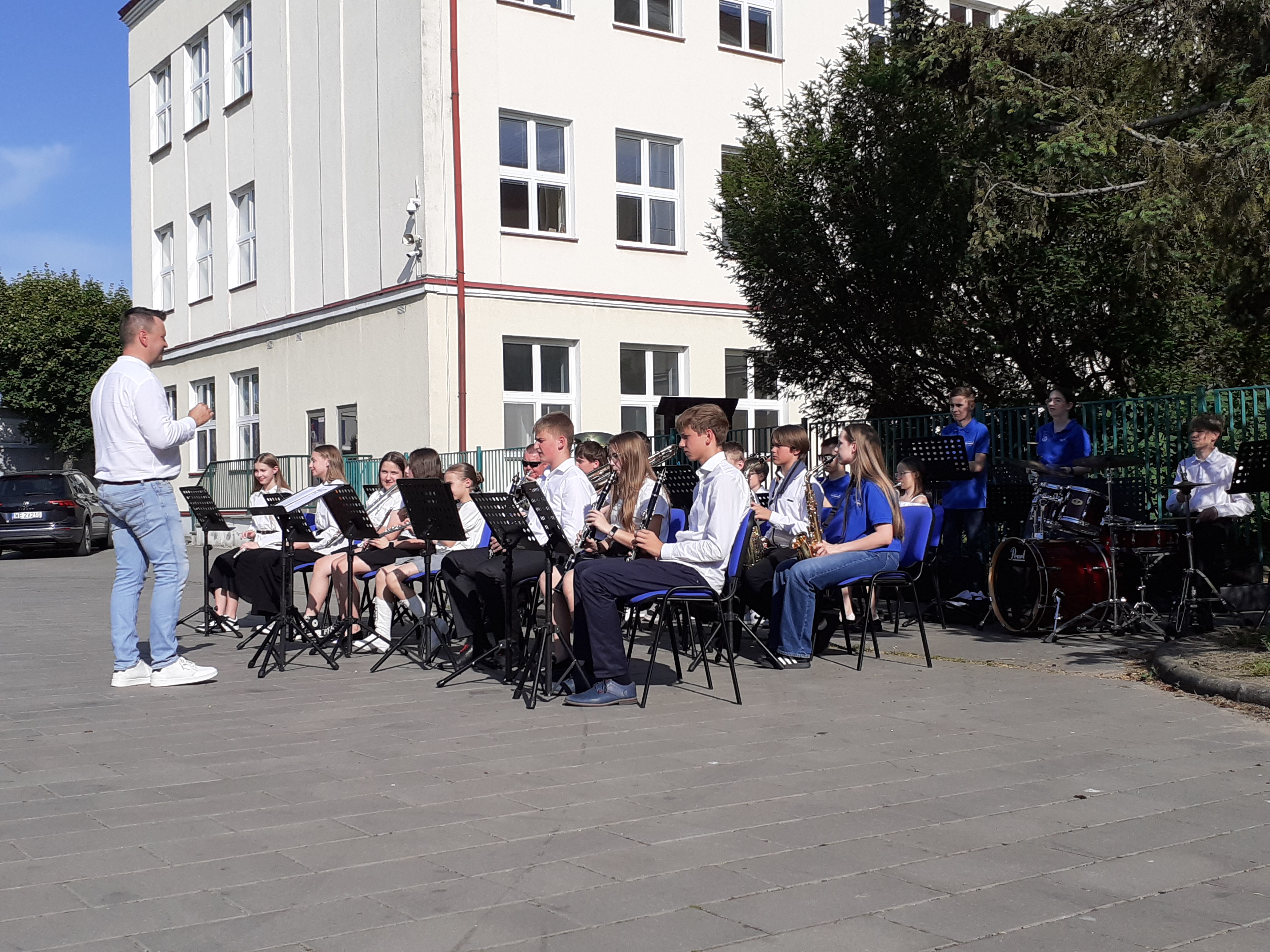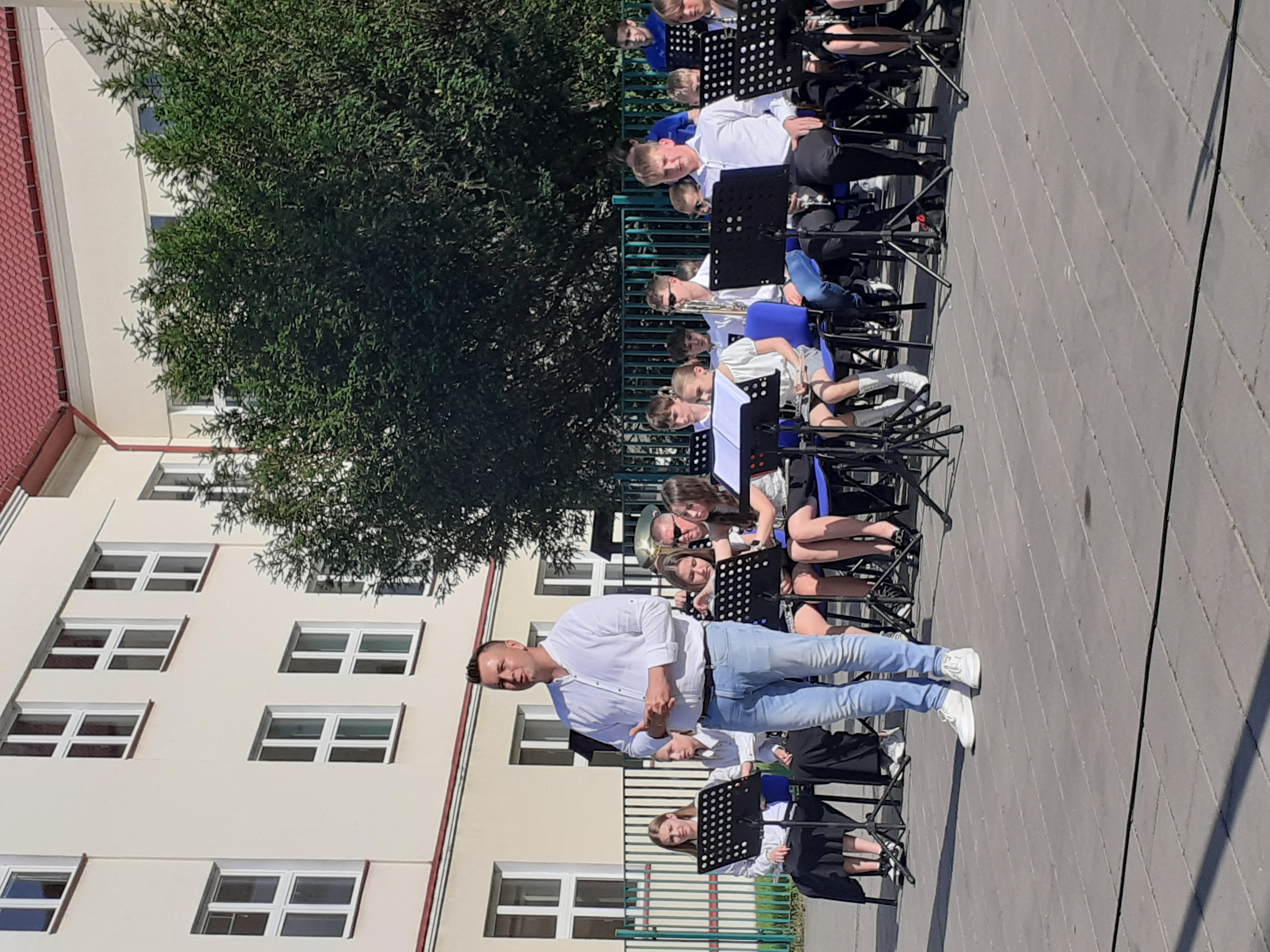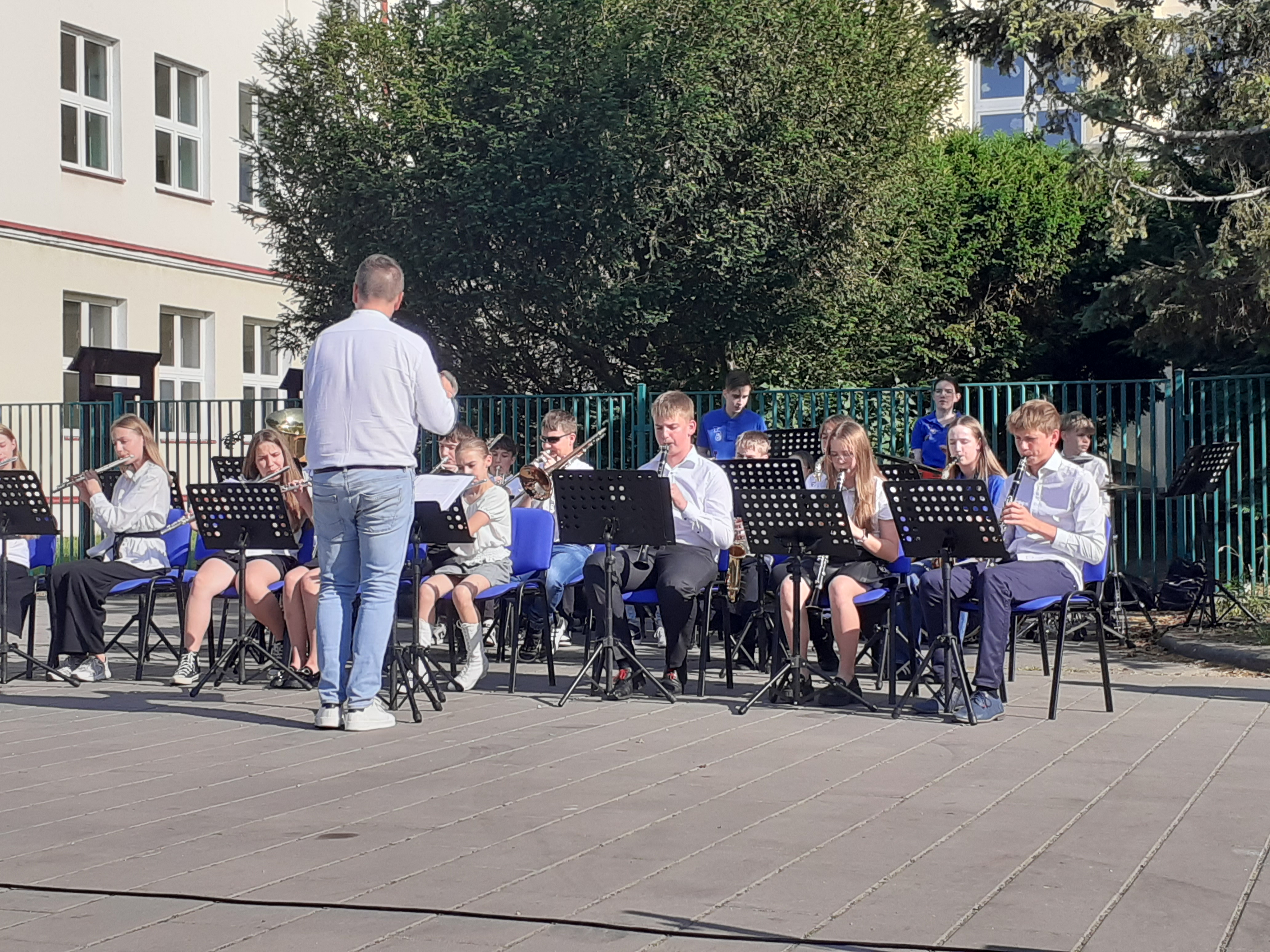 W sobotę 21.06.br. nasza szkolna orkiestra dęta po raz pierwszy wystąpiła na II Festiwalu Orkiestr Dętych "Kryształowe Koło". To dwudniowe wydarzenie miało miejsce w naszym mieście w miniony weekend i było muzycznym spotkaniem siedmiu orkiestr, które przybyły z różnych regionów Polski. Nasi uczniowie mieli okazję posłuchać innych zespołów skupiających młodzież w podobnym wieku, ale także tych "starszych stażem" orkiestr z wieloletnią tradycją. Dla młodzieży festiwal był z pewnością nowym, cennym doświadczeniem muzycznym, ale także podsumowaniem całorocznej pracy..Orkiestrą dyrygował pan Krzysztof Lityński, który na co dzień pracuje z zespołem podczas szkolnych zajęć.
