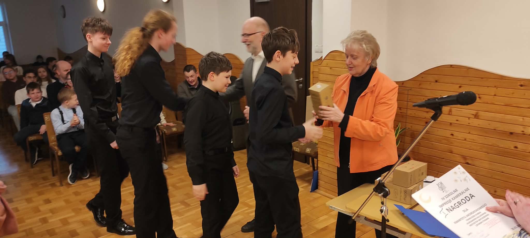 25 marca 2026 odbyły się "IV Szkolne Impresje Kameralne". Komisja konkursowa w składzie: p. Marek Kłaniecki, p. Alinka Królik, p. Natalia Ciesielska wysłuchała 14 zespołów kameralnych i przyznała następujące nagrody i wyróżnienia: