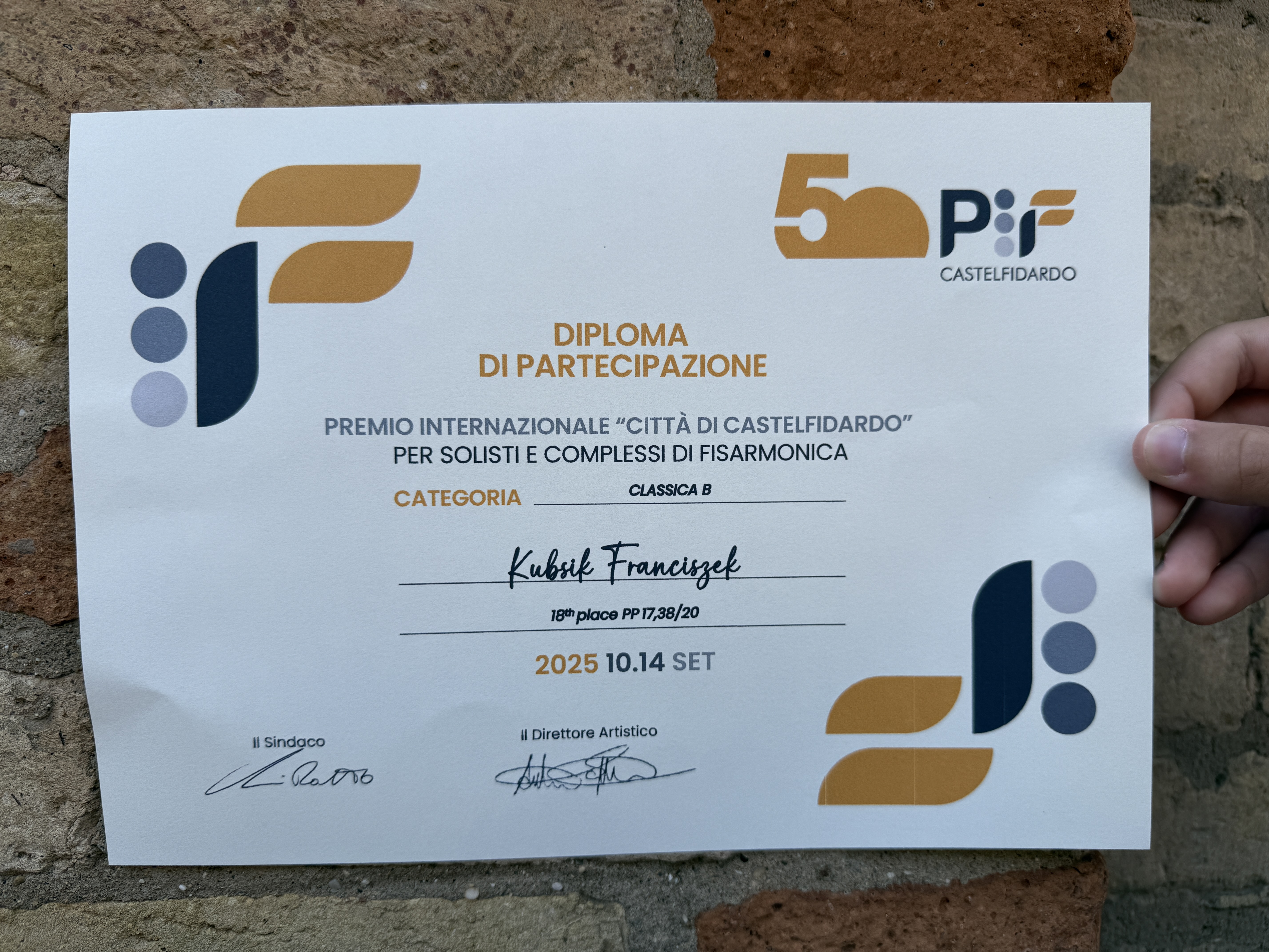 Włoskie Castelfidardo, światowa stolica akordeonu, gościło 50. edycję prestiżowego PIF Castelfidardo 2025 - Międzynarodowego Konkursu Akordeonowego. Wśród najlepszych młodych talentów z całego świata stanął Franciszek Kubsik, uczeń naszej szkoły.