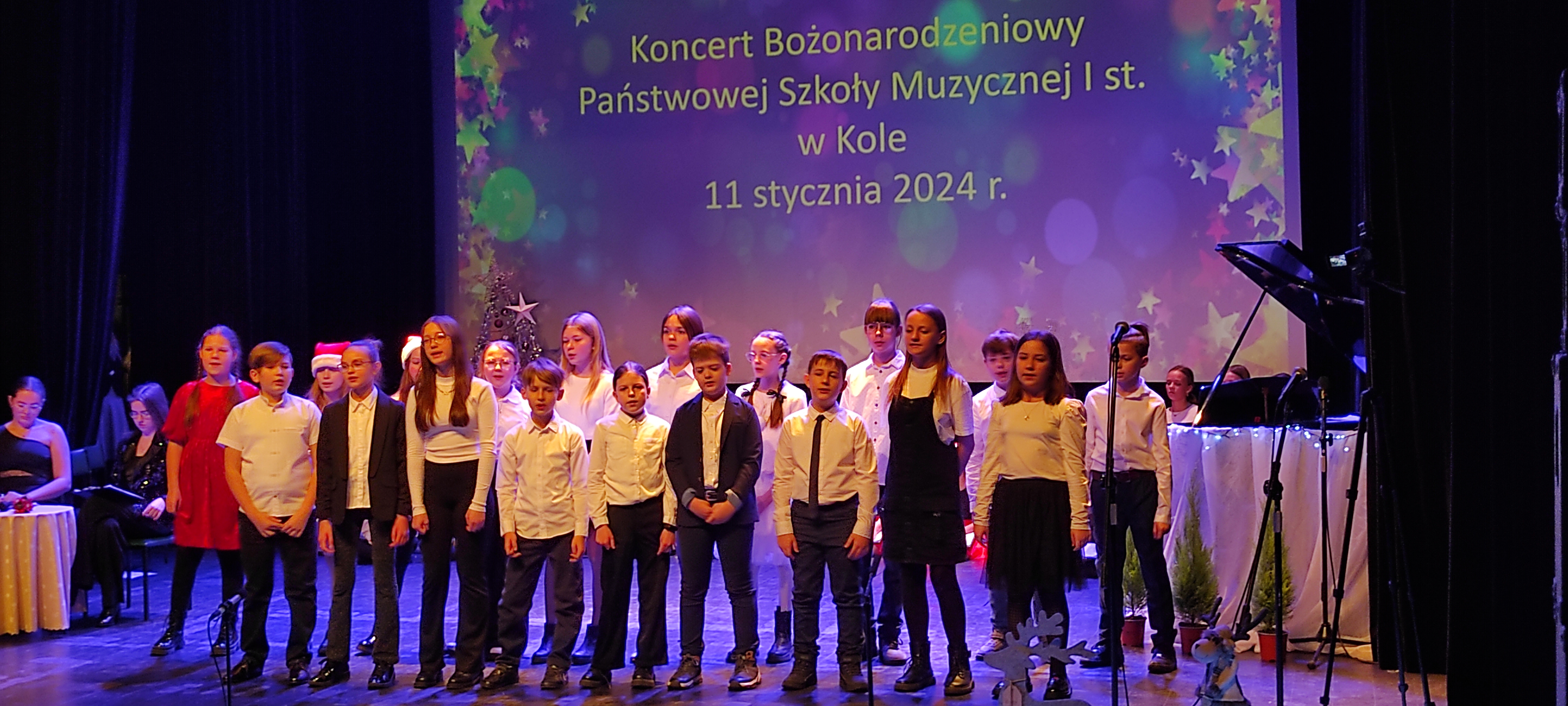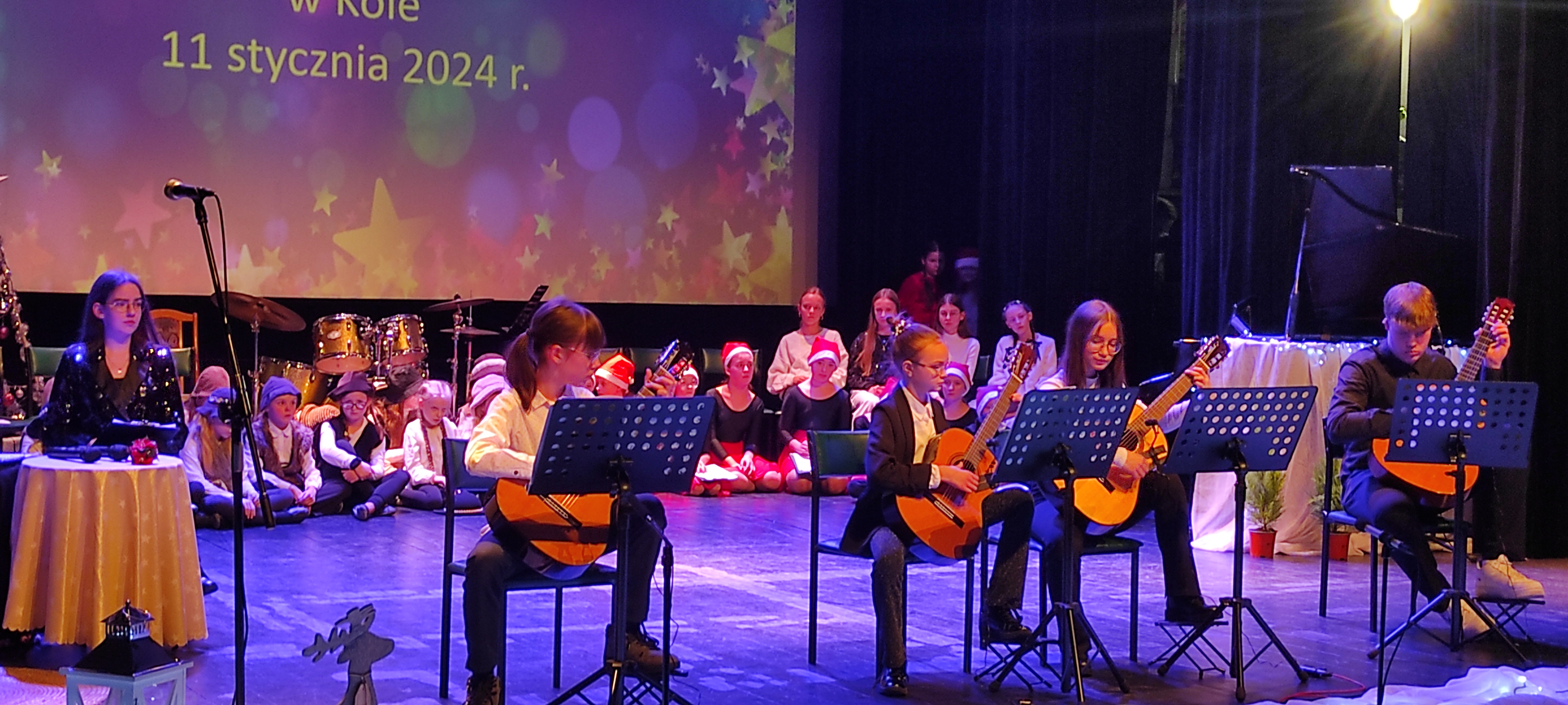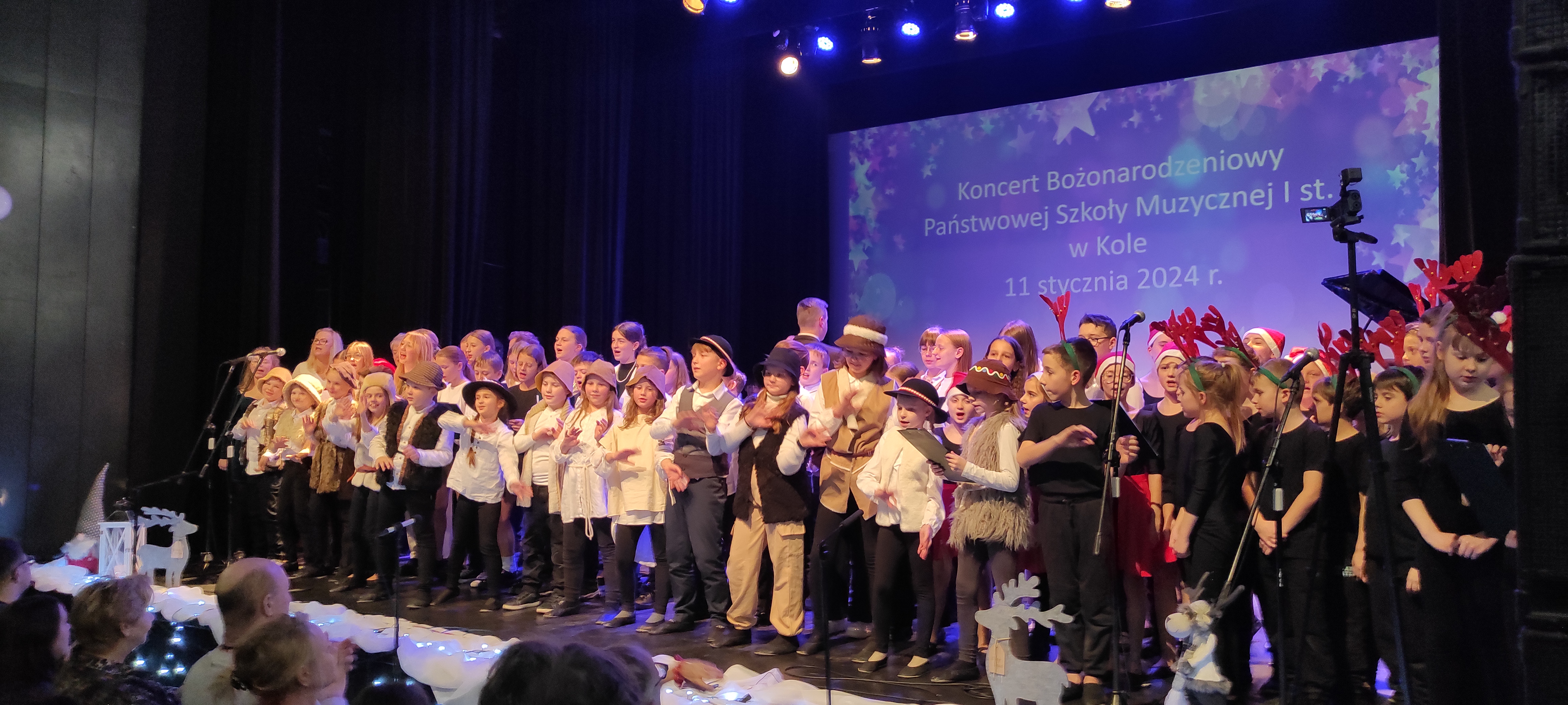 Dnia 11 stycznia 2024 r. w Miejskim Domu Kultury w Kole odbył się Koncert Bożonarodzeniowy przygotowany przez uczniów i nauczycieli PSM I stopnia w Kole. Była to okazja, aby jeszcze na chwilę zatrzymać, przedłużyć czas i szczególny nastrój wspólnego kolędowania. Wystąpili soliści, zespoły wokalne, wokalno-instrumentalne oraz instrumentalne działające w naszej szkole. Zatańczyły grupy taneczne z klasy II i III, zaśpiewała klasa IV, całość zwieńczył chór z orkiestrą. Usłyszeliśmy wiele pięknych prezentacji, które zostały bardzo ciepło przyjęte przez licznie zgromadzoną publiczność. Koncert był dużym przedsięwzięciem, wymagał zaangażowania uczniów i wszystkich nauczycieli. Całość koordynowały: p.A.Królik, p.M.Lisiowska i p.M.Jancy-Borowiak. Dziękujemy wszystkim, którzy czuwali nad sprawną organizacją koncertu i przyczynili się, abyśmy w tak licznym gronie mogli przeżyć to piękne wydarzenie.