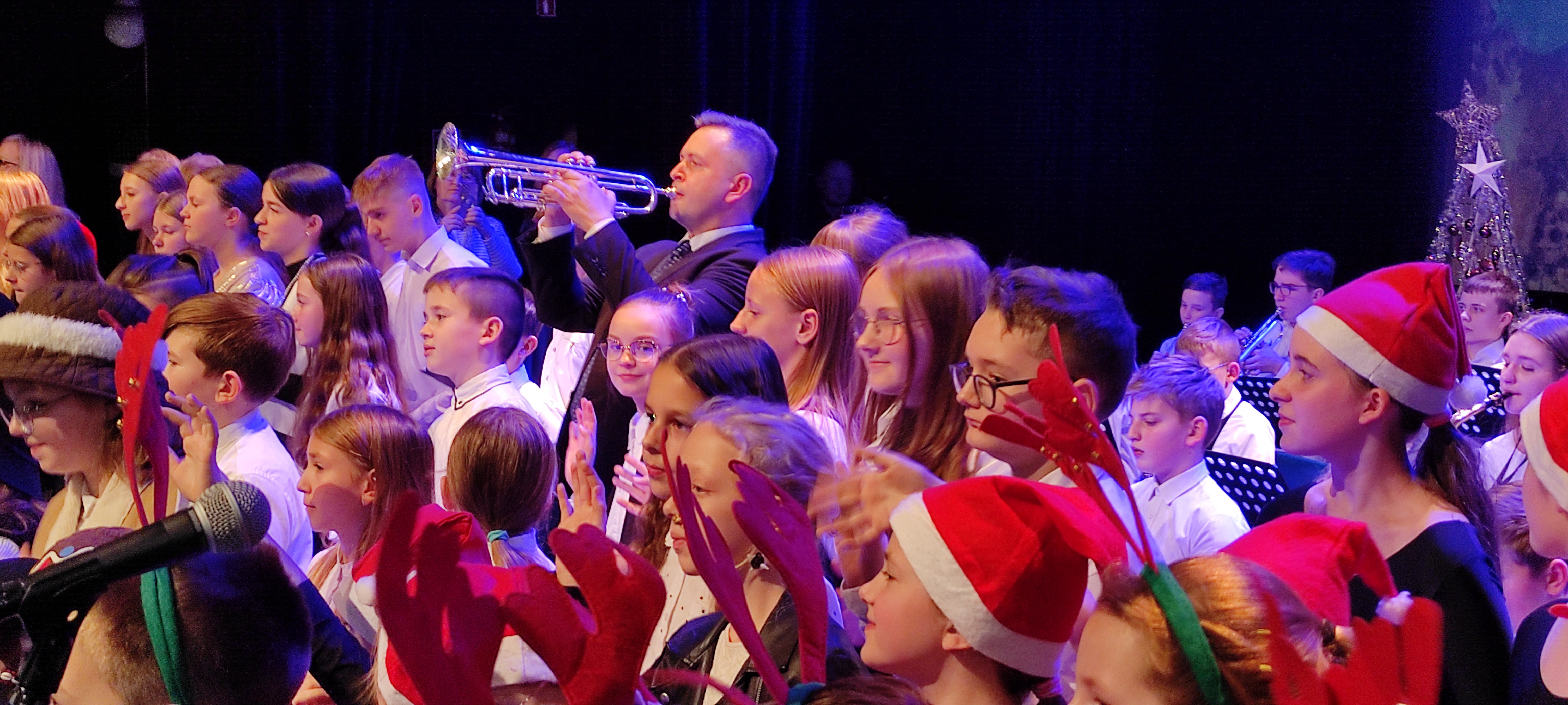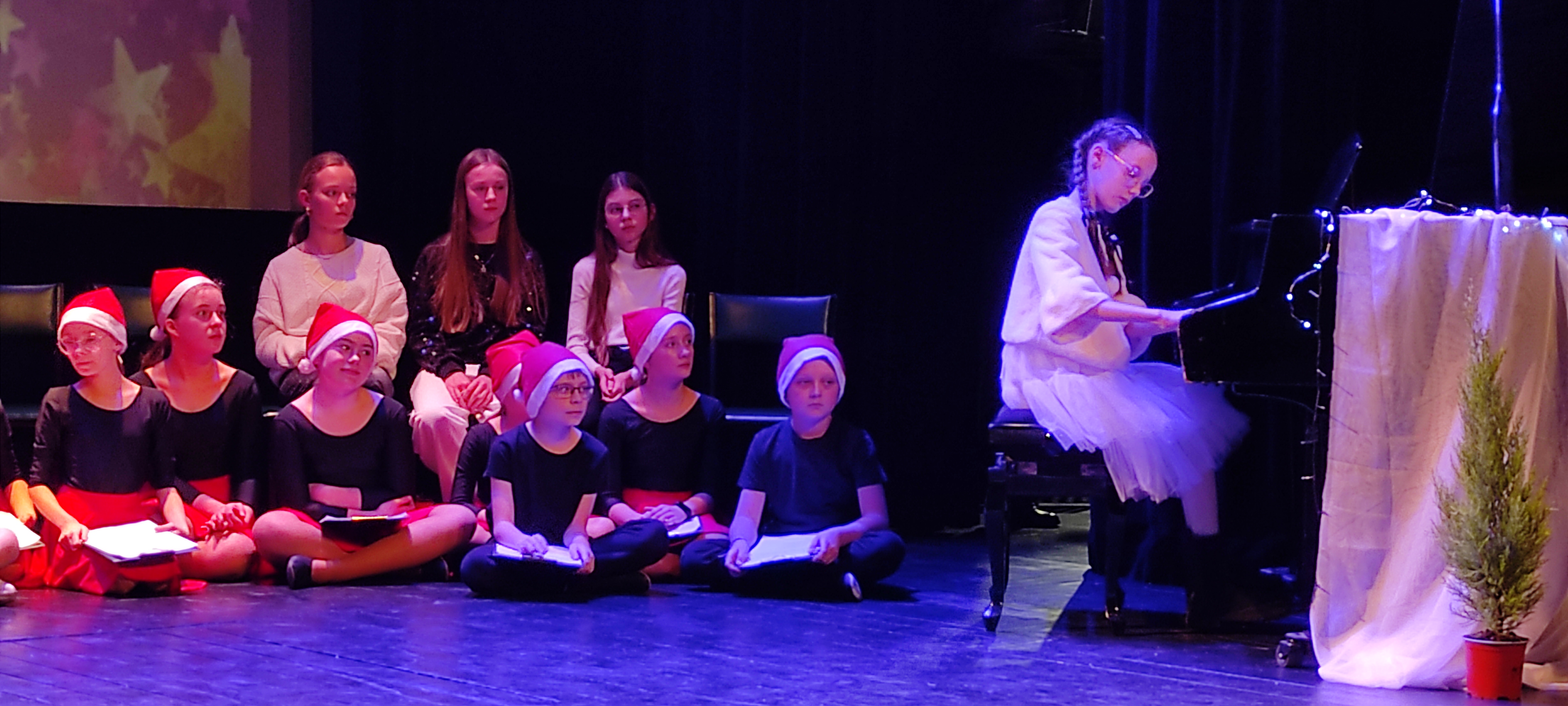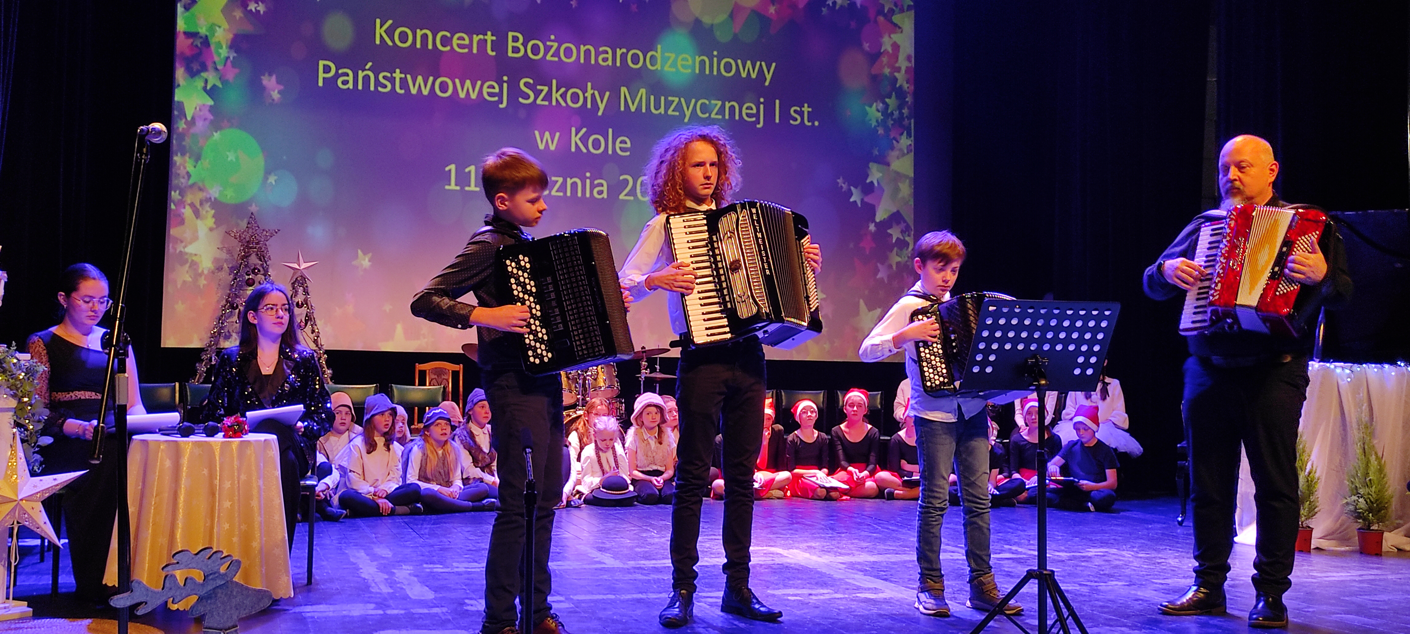 Dnia 11 stycznia 2024 r. w Miejskim Domu Kultury w Kole odbył się Koncert Bożonarodzeniowy przygotowany przez uczniów i nauczycieli PSM I stopnia w Kole. Była to okazja, aby jeszcze na chwilę zatrzymać, przedłużyć czas i szczególny nastrój wspólnego kolędowania. Wystąpili soliści, zespoły wokalne, wokalno-instrumentalne oraz instrumentalne działające w naszej szkole. Zatańczyły grupy taneczne z klasy II i III, zaśpiewała klasa IV, całość zwieńczył chór z orkiestrą. Usłyszeliśmy wiele pięknych prezentacji, które zostały bardzo ciepło przyjęte przez licznie zgromadzoną publiczność. Koncert był dużym przedsięwzięciem, wymagał zaangażowania uczniów i wszystkich nauczycieli. Całość koordynowały: p.A.Królik, p.M.Lisiowska i p.M.Jancy-Borowiak. Dziękujemy wszystkim, którzy czuwali nad sprawną organizacją koncertu i przyczynili się, abyśmy w tak licznym gronie mogli przeżyć to piękne wydarzenie.