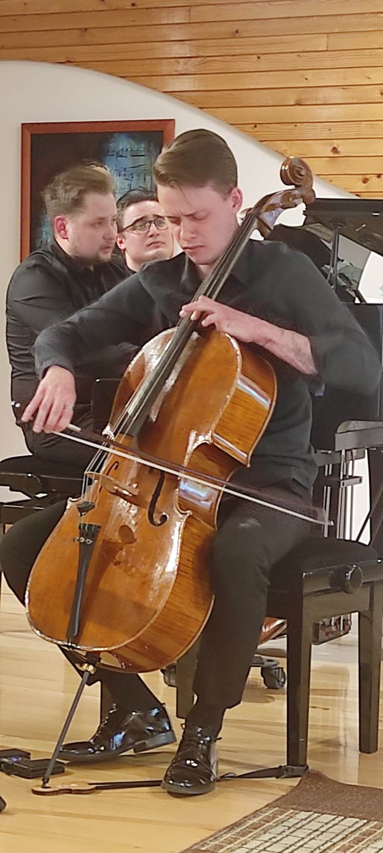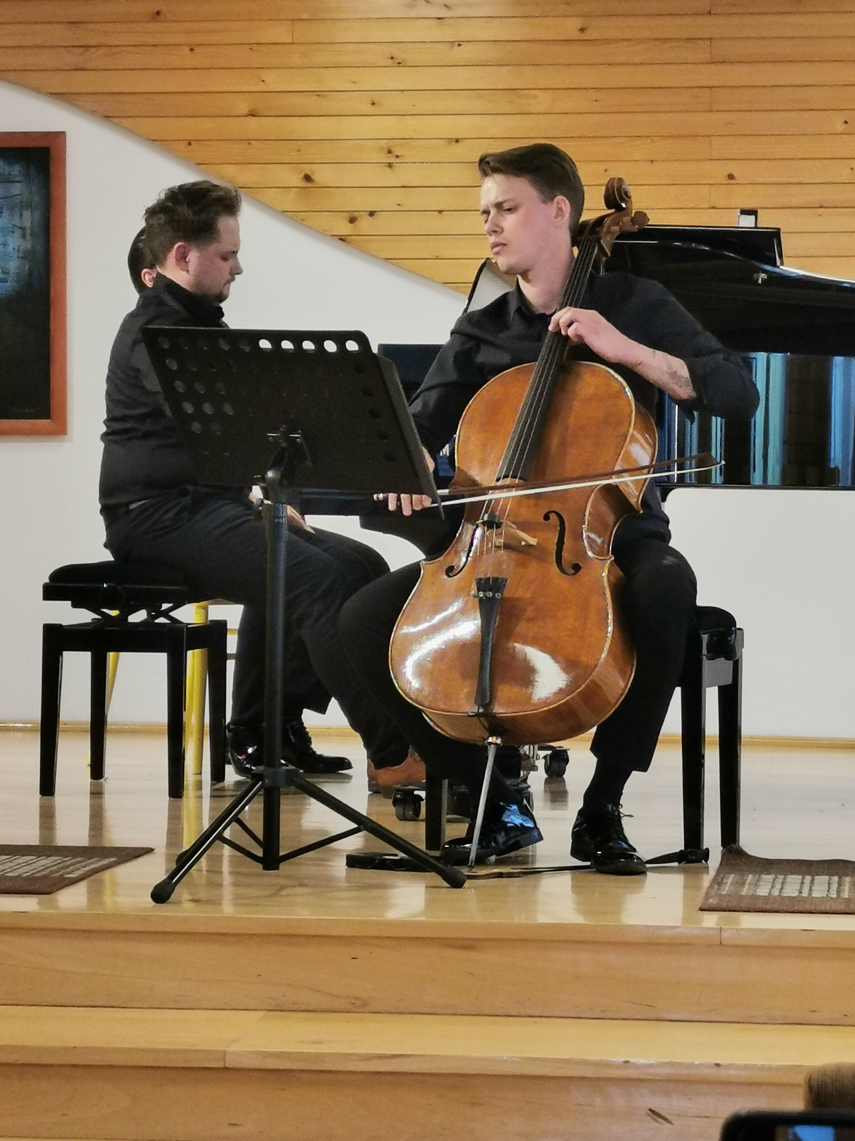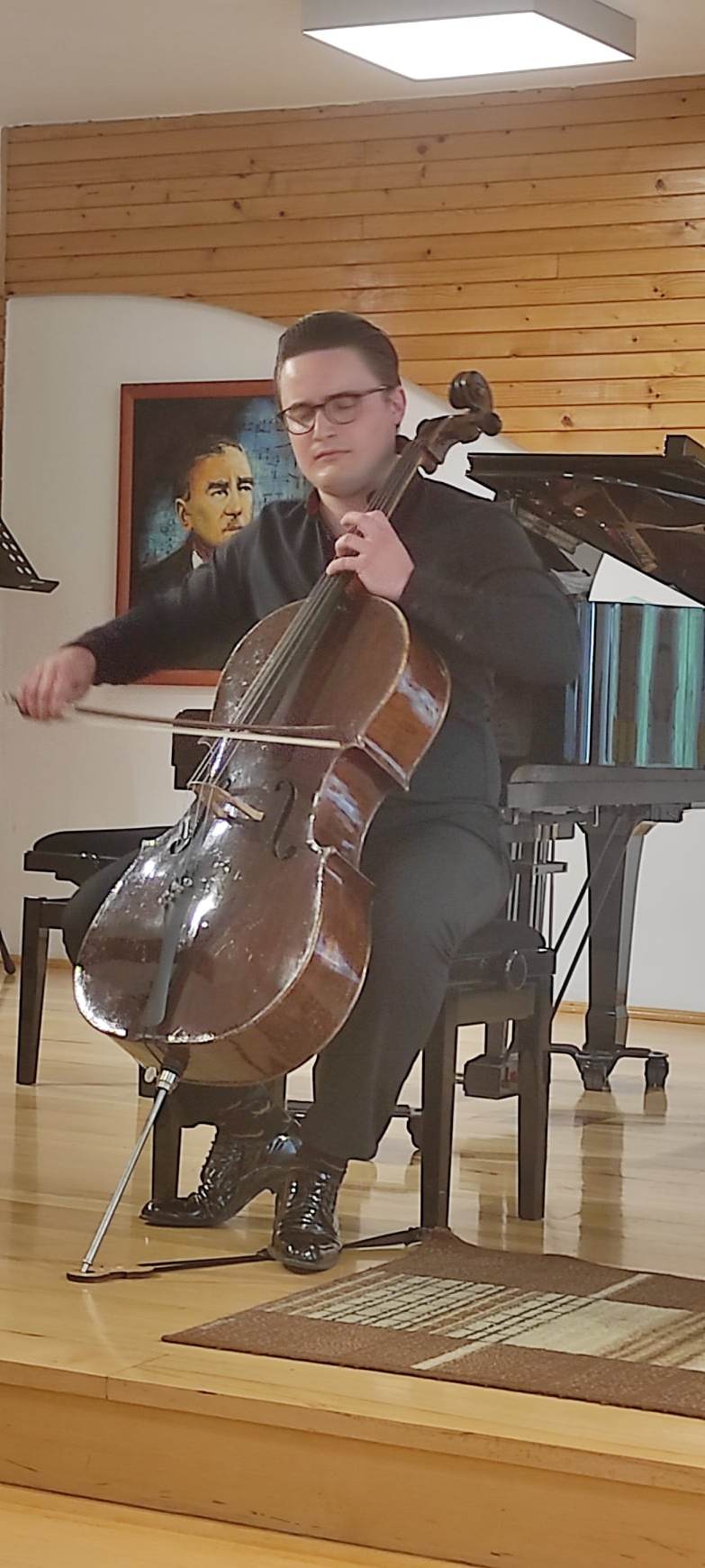 25 maja gościliśmy na naszej scenie znakomitych muzyków. Pan Miłosz Mirowski przeniósł nas do epoki baroku, poprzez swoje wysublimowane wykonanie II Suity na wiolonczelę solo Jana Sebastiana Bacha. Następnie nasz nauczyciel klasy fortepianu Pan Hubert Miarka wraz z wiolonczelistą Panem Jakubem Lemańskim zaprezentowali nam utwory muzyki polskiej. Mieliśmy wielką przyjemność usłyszeć i poczuć pełen wachlarz emocji, które Panowie przekazali poprzez swoje wirtuozowskie wykonania. Publiczność była zachwycona poziomem prezentacji muzycznych, dlatego nie obyło się bez bisów.